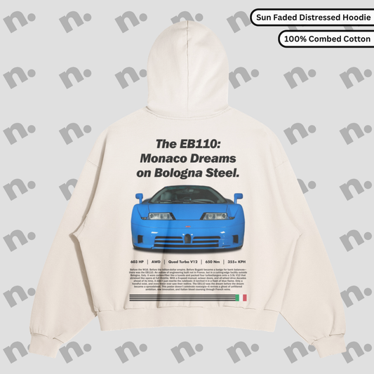 EB110 – “Monaco Dreams on Bologna Steel” Distressed Premium Hoodie