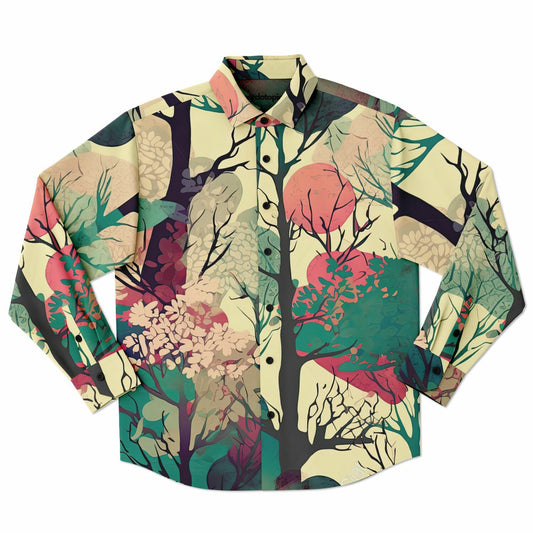 Forest Trees in Autumn Long Sleeve Button Down Shirt - AOP