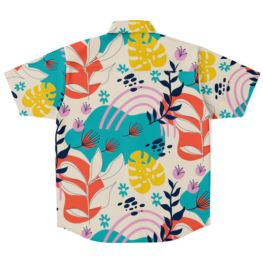 Floral Garden Hand Drawing Short Sleeve Button Down Shirt - AOP