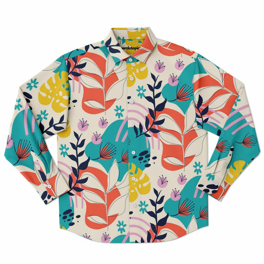Floral Garden Hand Drawing Long Sleeve Button Down Shirt - AOP