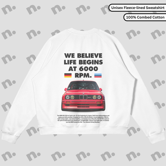E30 M3 "Life Begins at 6000 RPM" Premium Sweatshirt