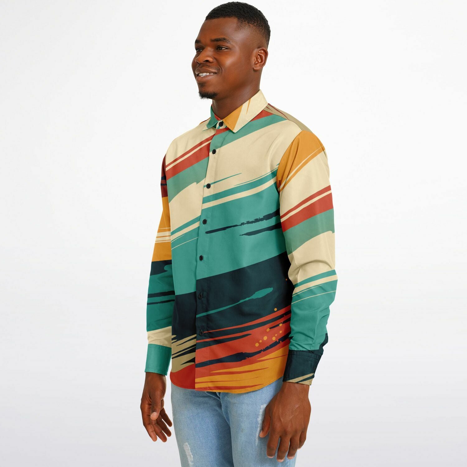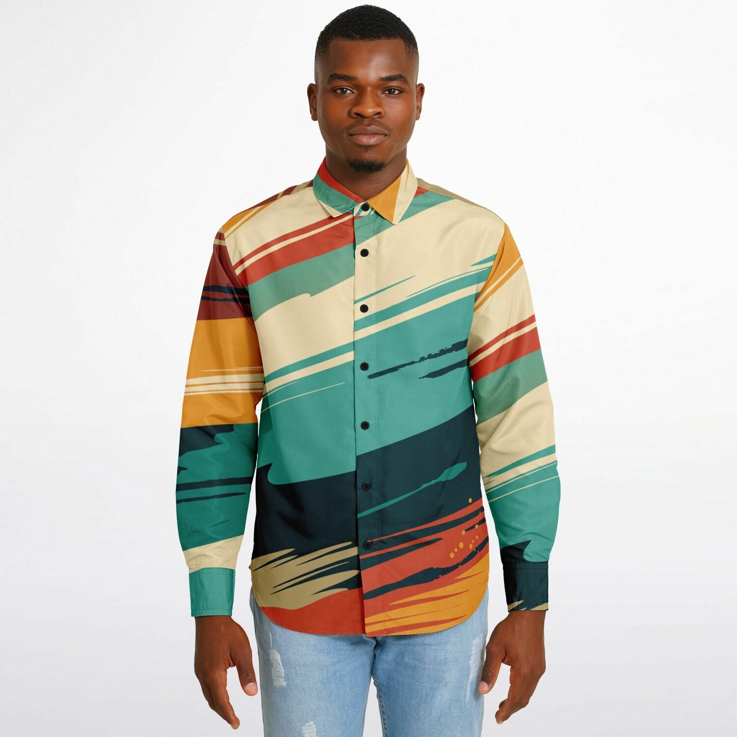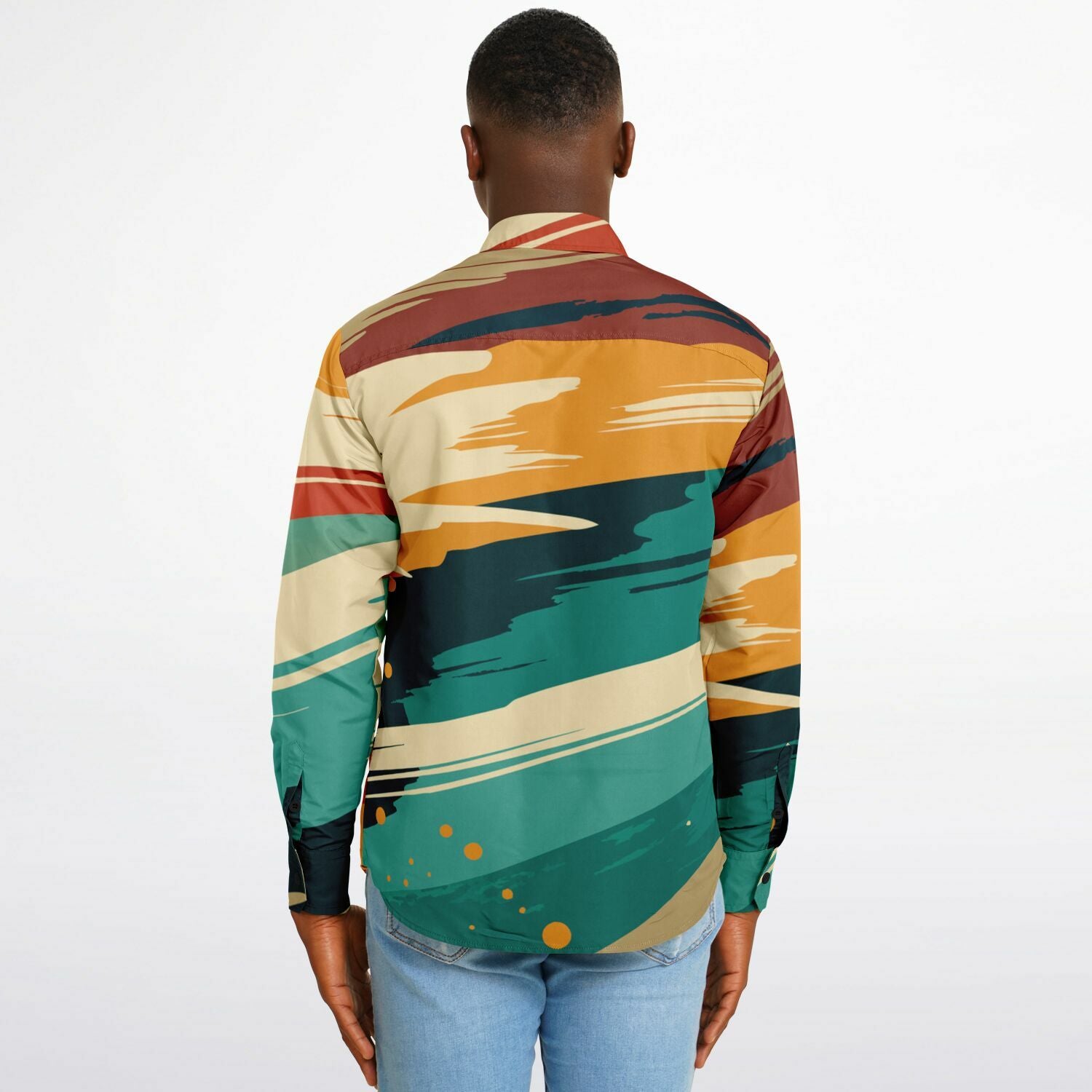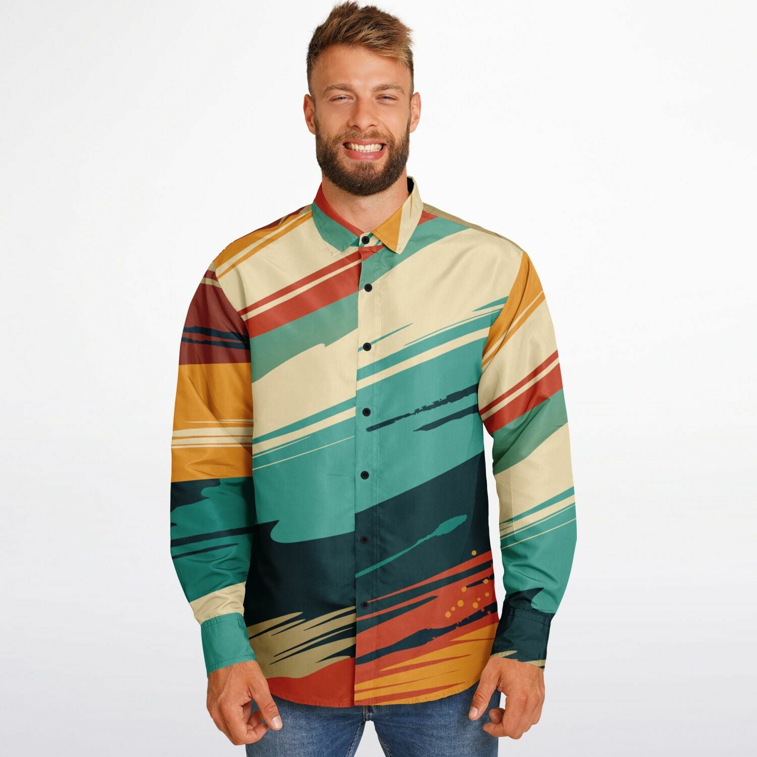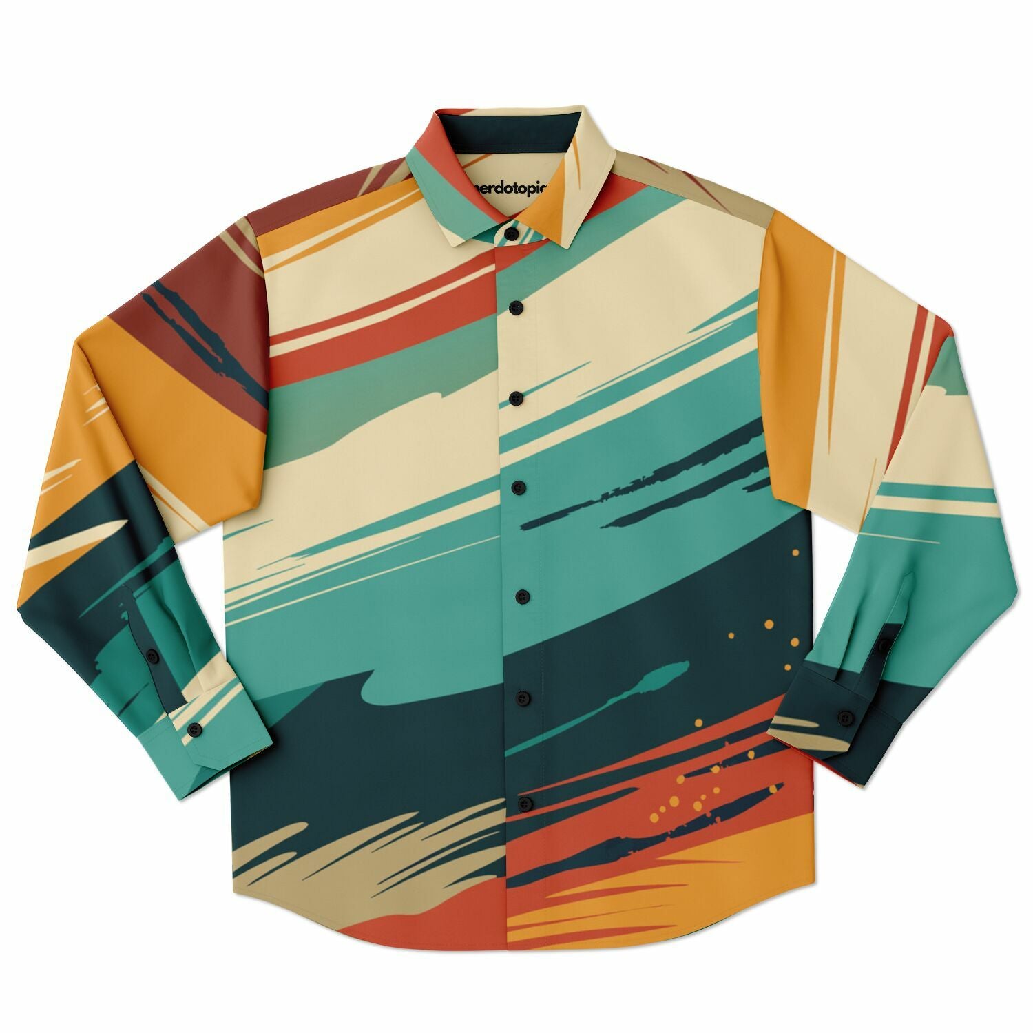 Abstract Paint stroke Long Sleeve Button Down Shirt - AOP