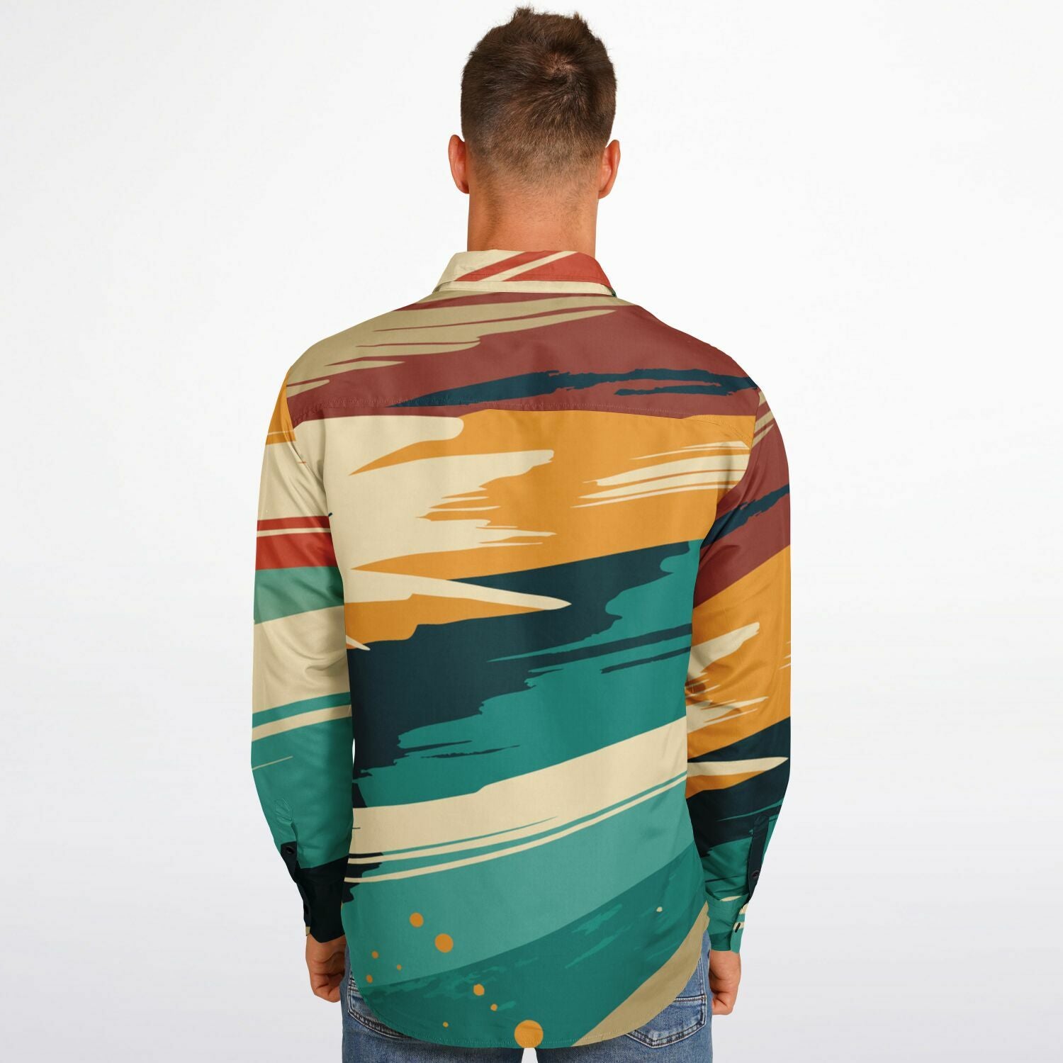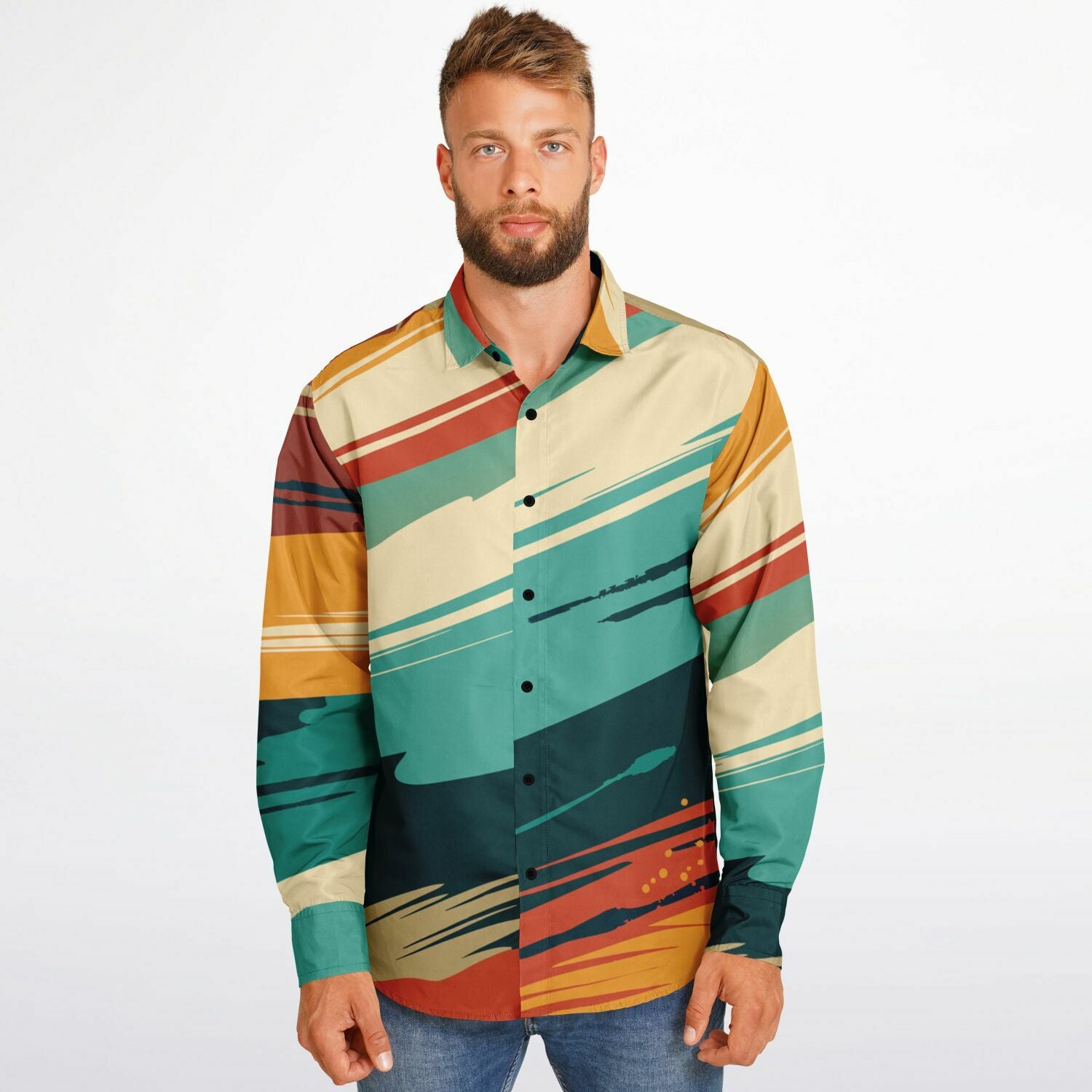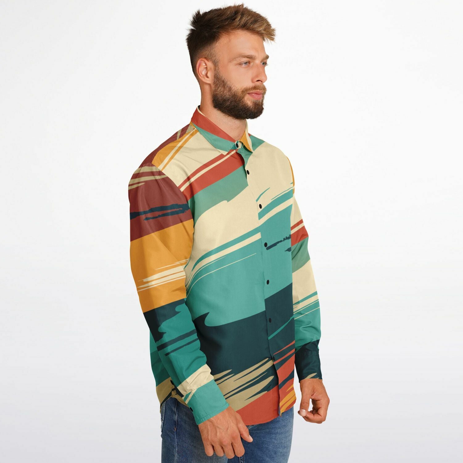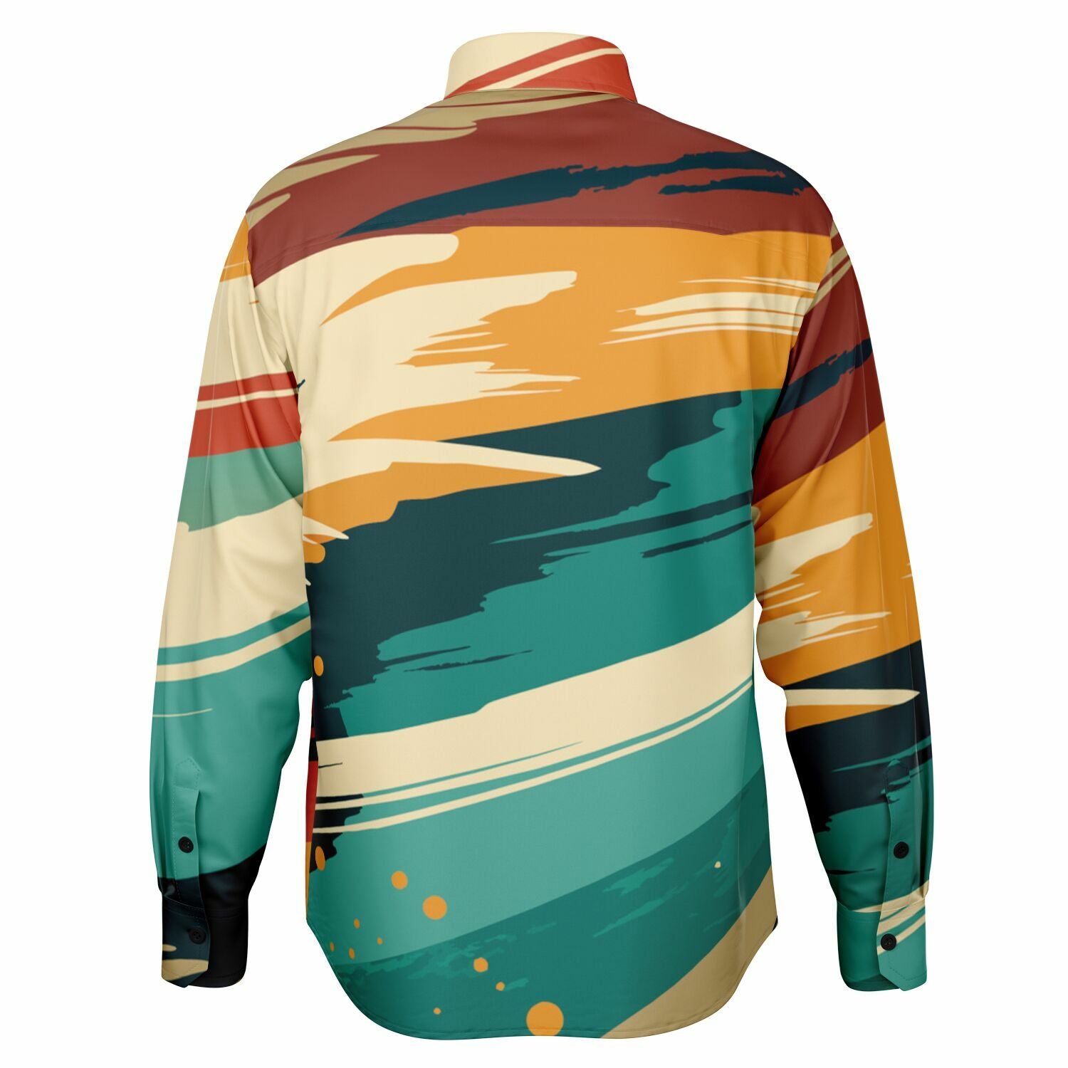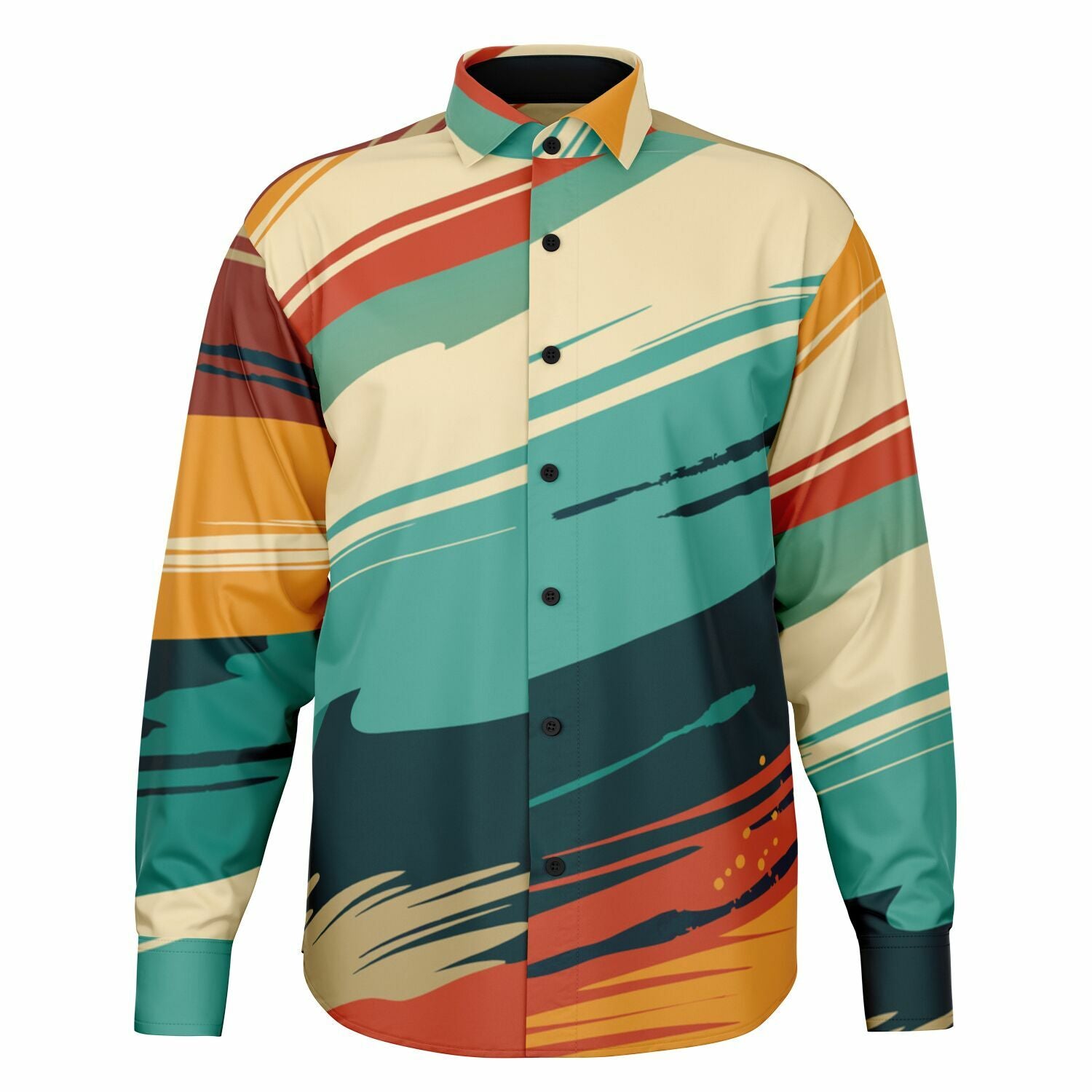 Abstract Paint stroke Long Sleeve Button Down Shirt - AOP
