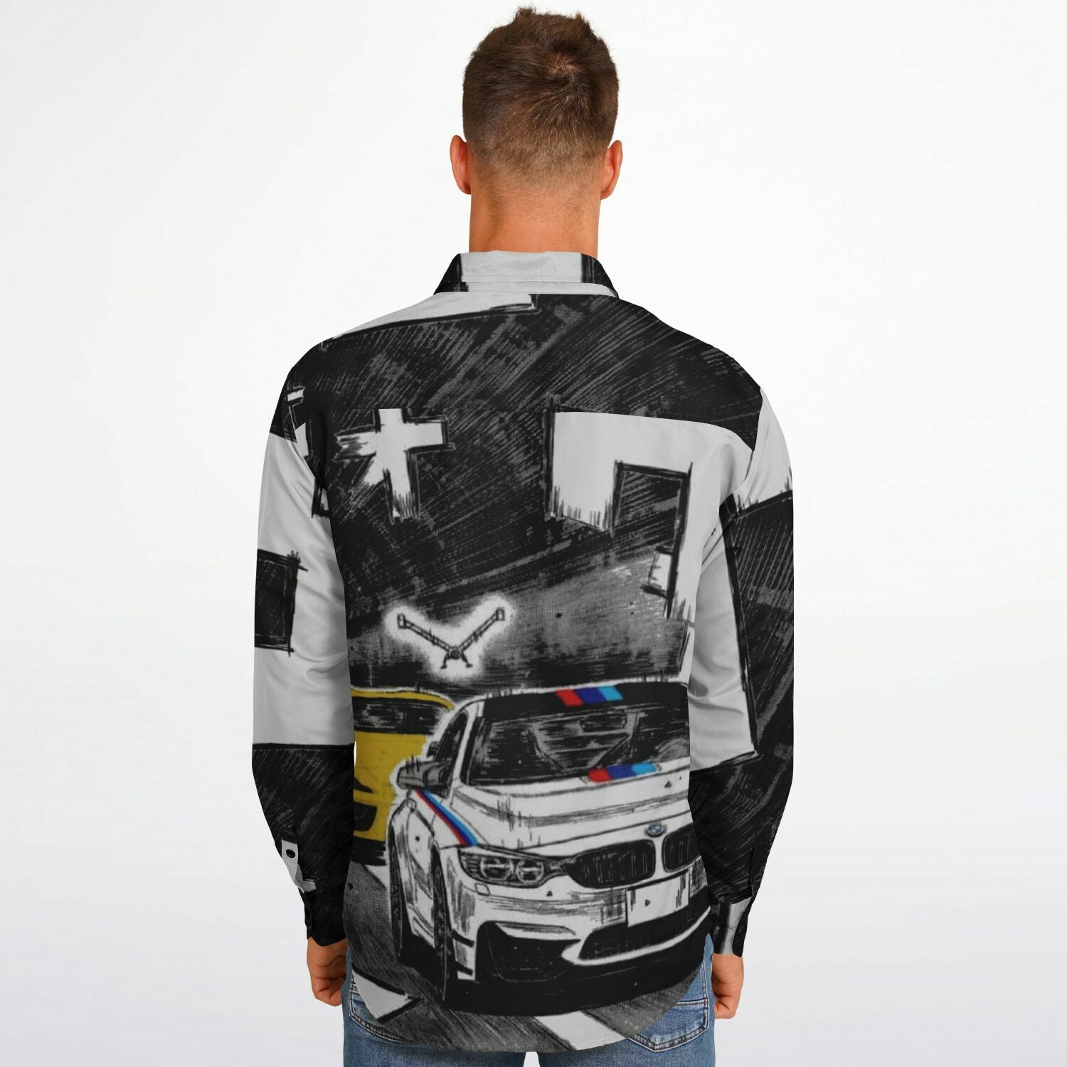 Bimmer Supra Illustration Long Sleeve Button Down Shirt - AOP