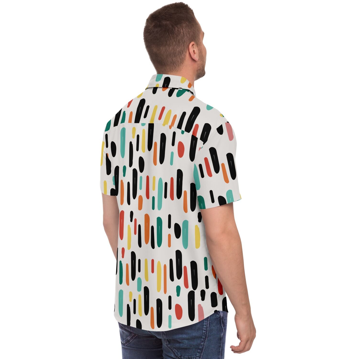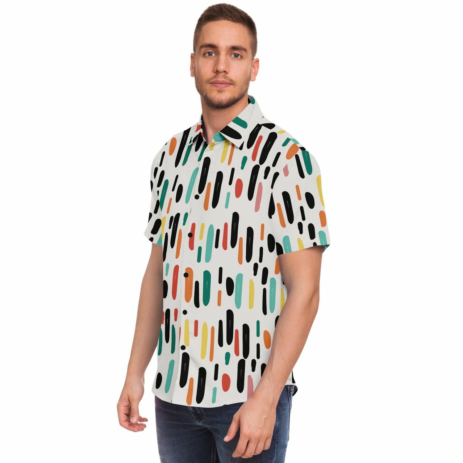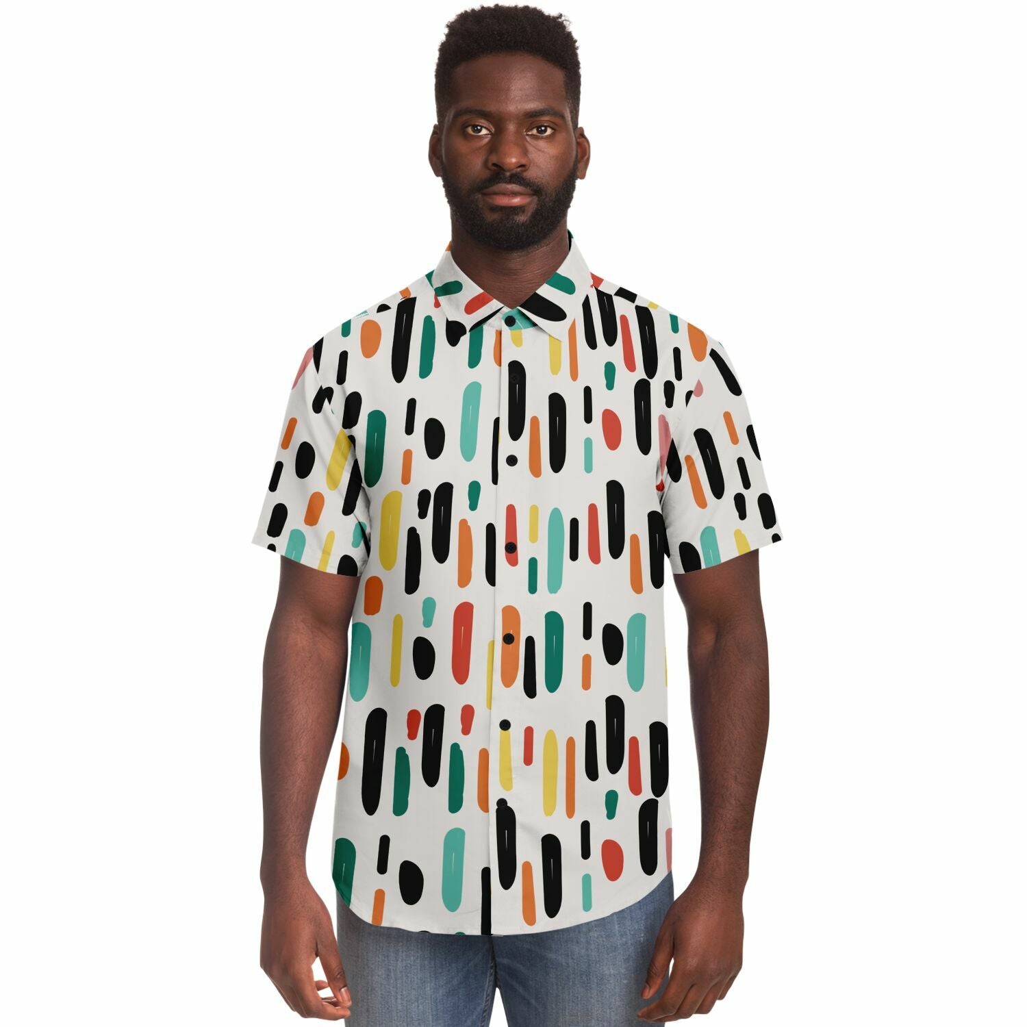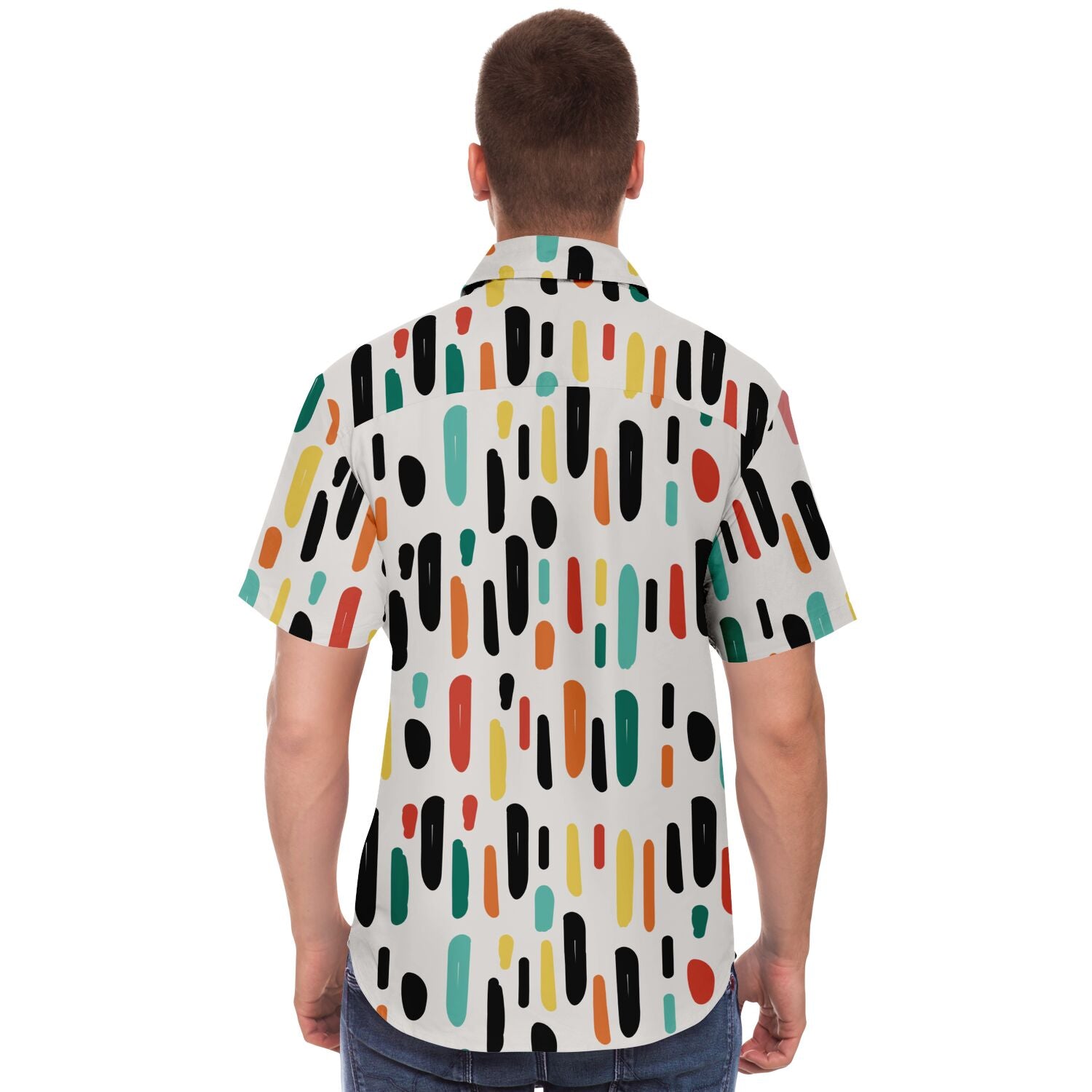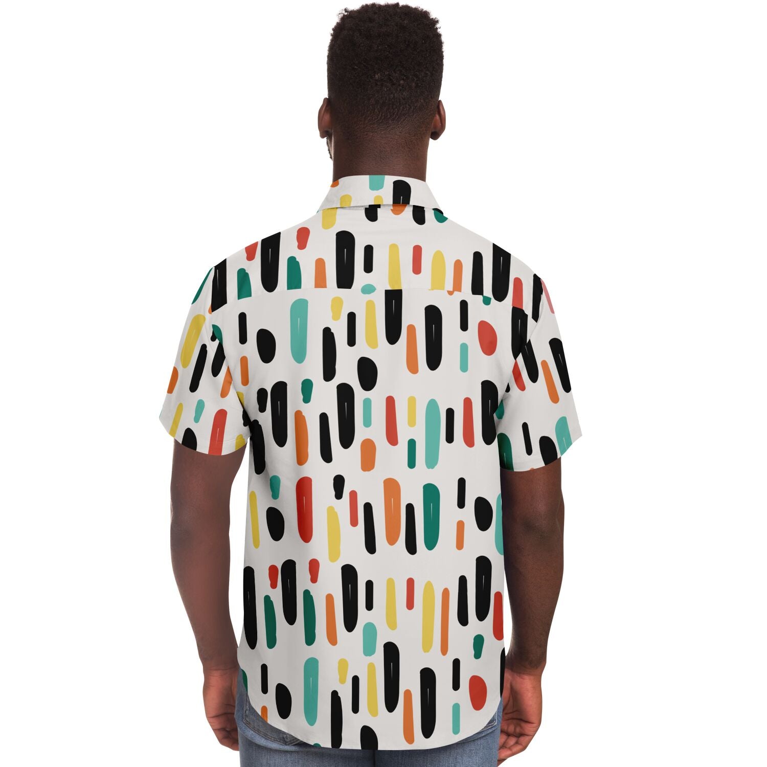 Colored Brush Strokes Abstract Short Sleeve Button Down Shirt - AOP