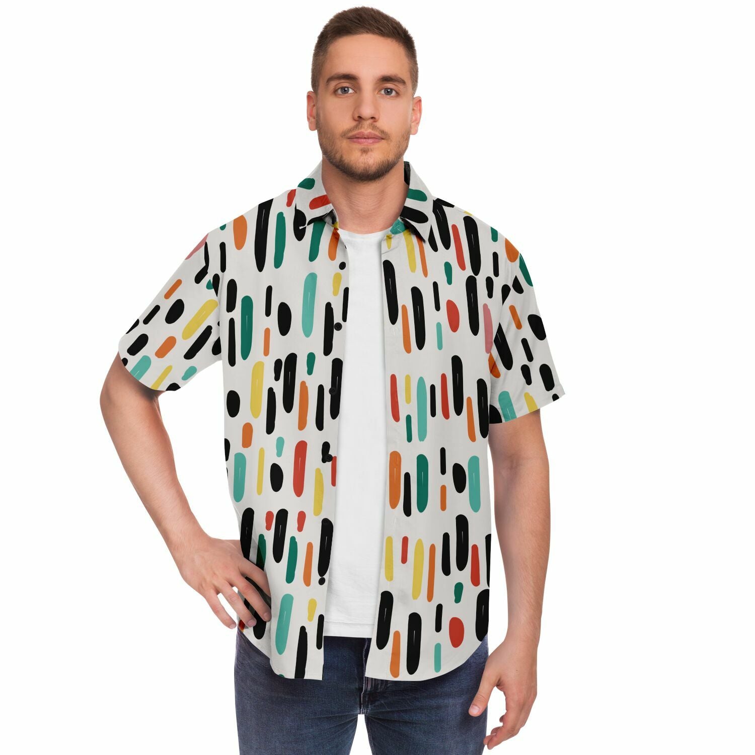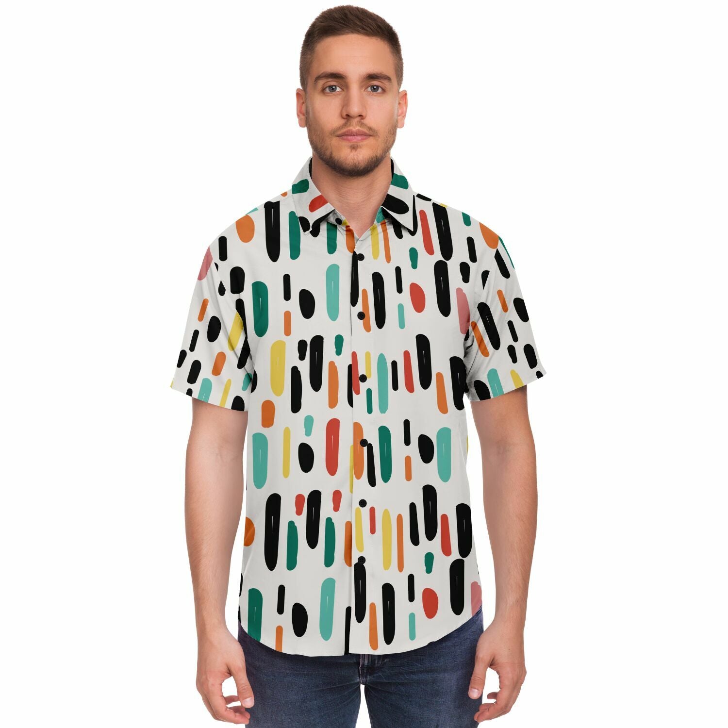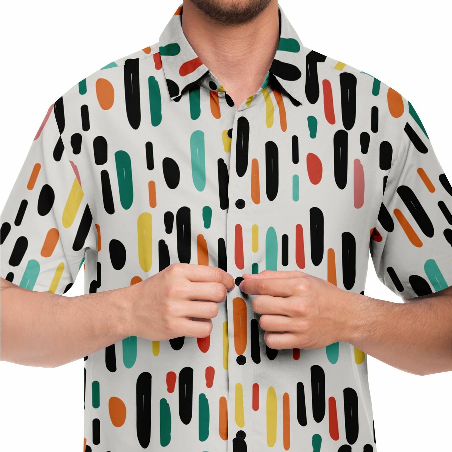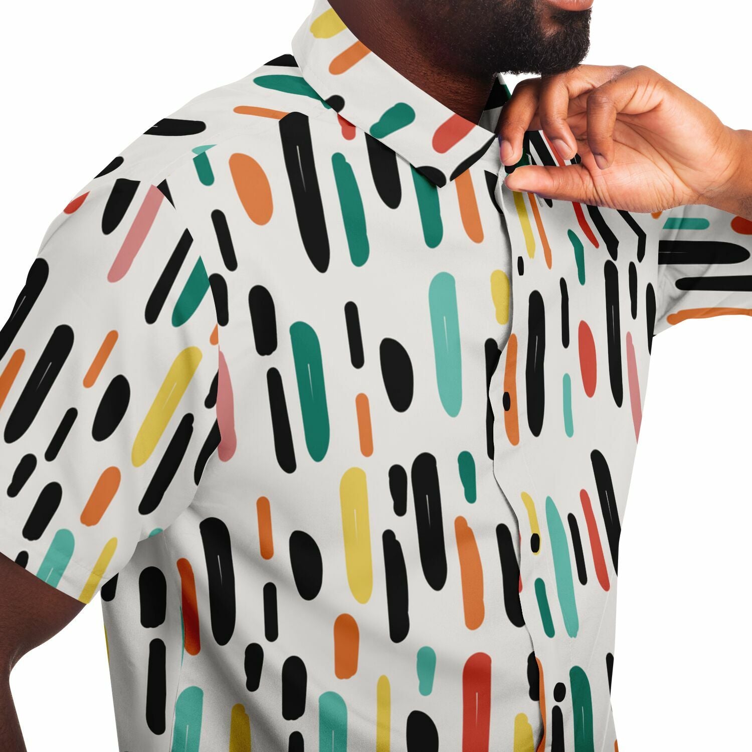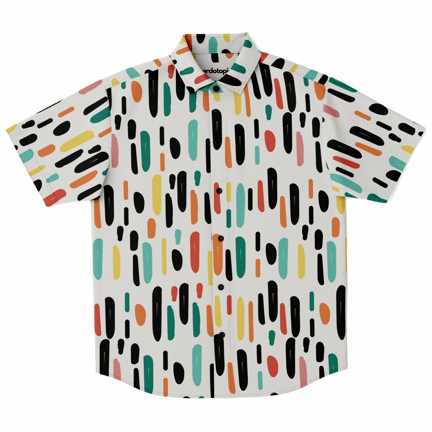 Colored Brush Strokes Abstract Short Sleeve Button Down Shirt - AOP