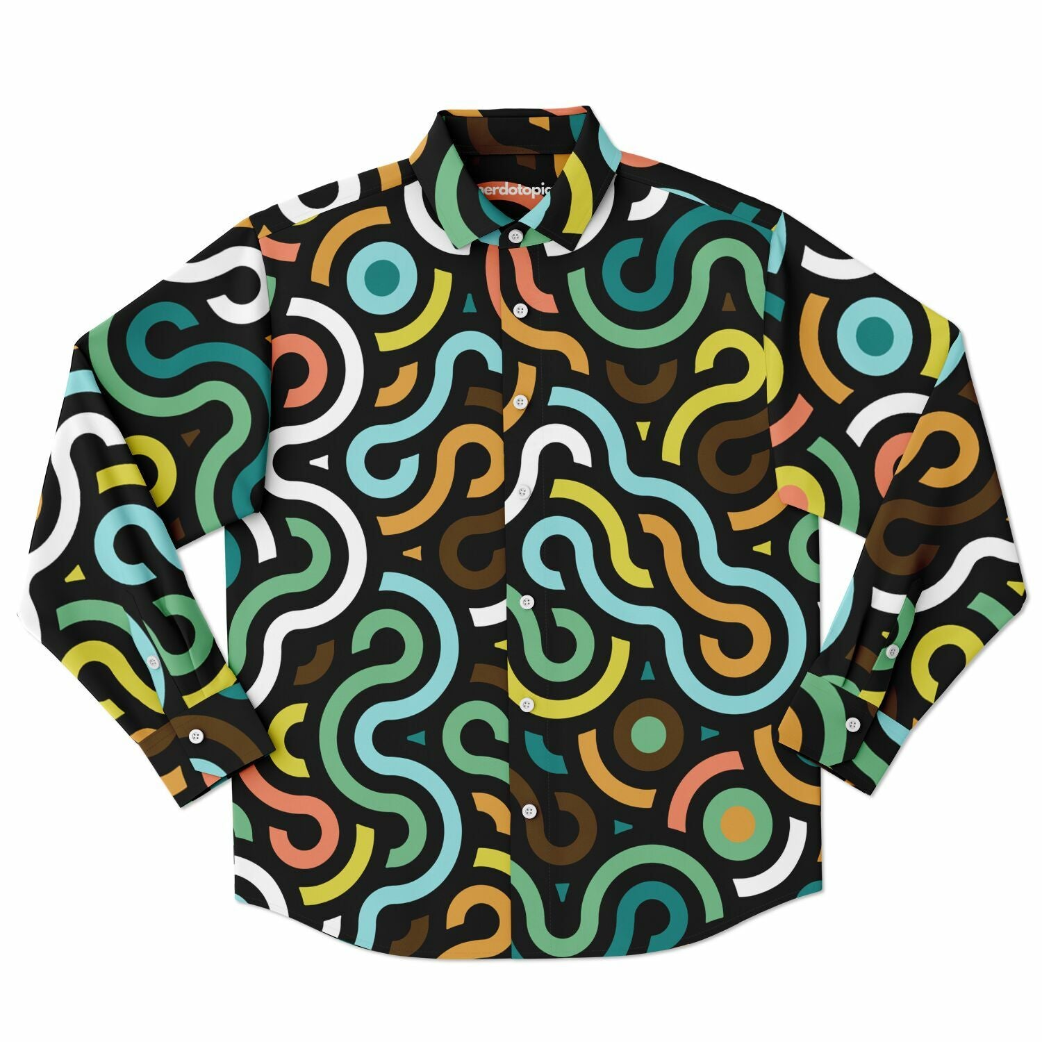 Colored Doodle Art Long Sleeve Button Down Shirt - AOP