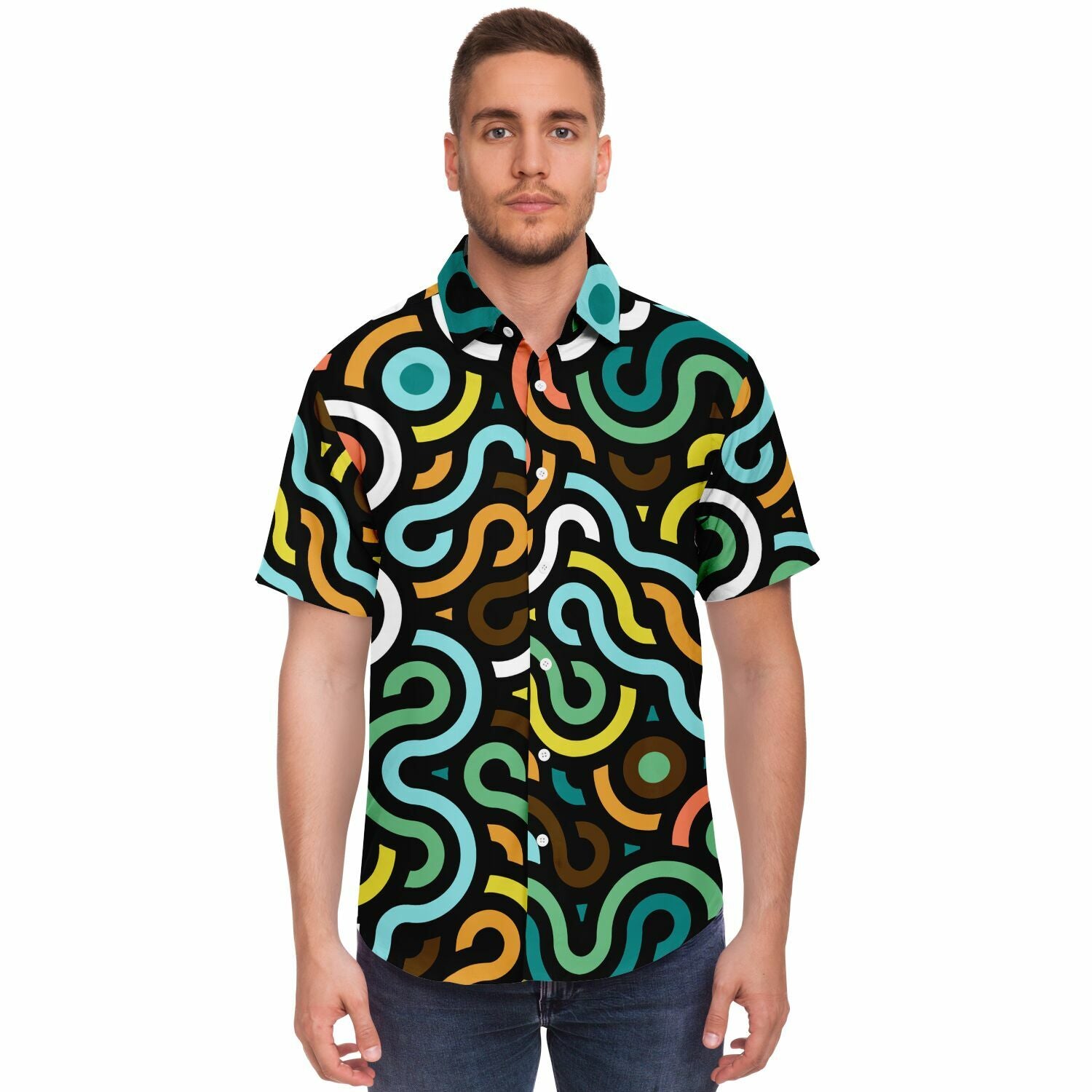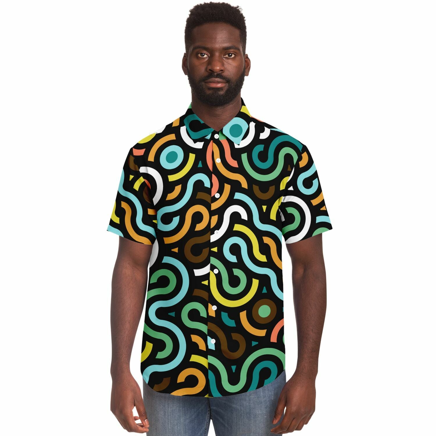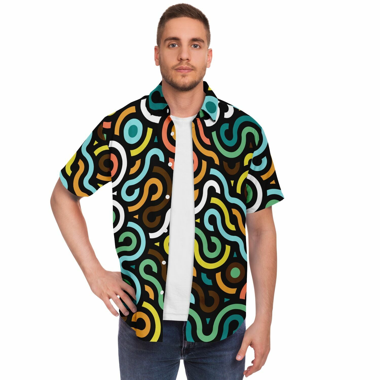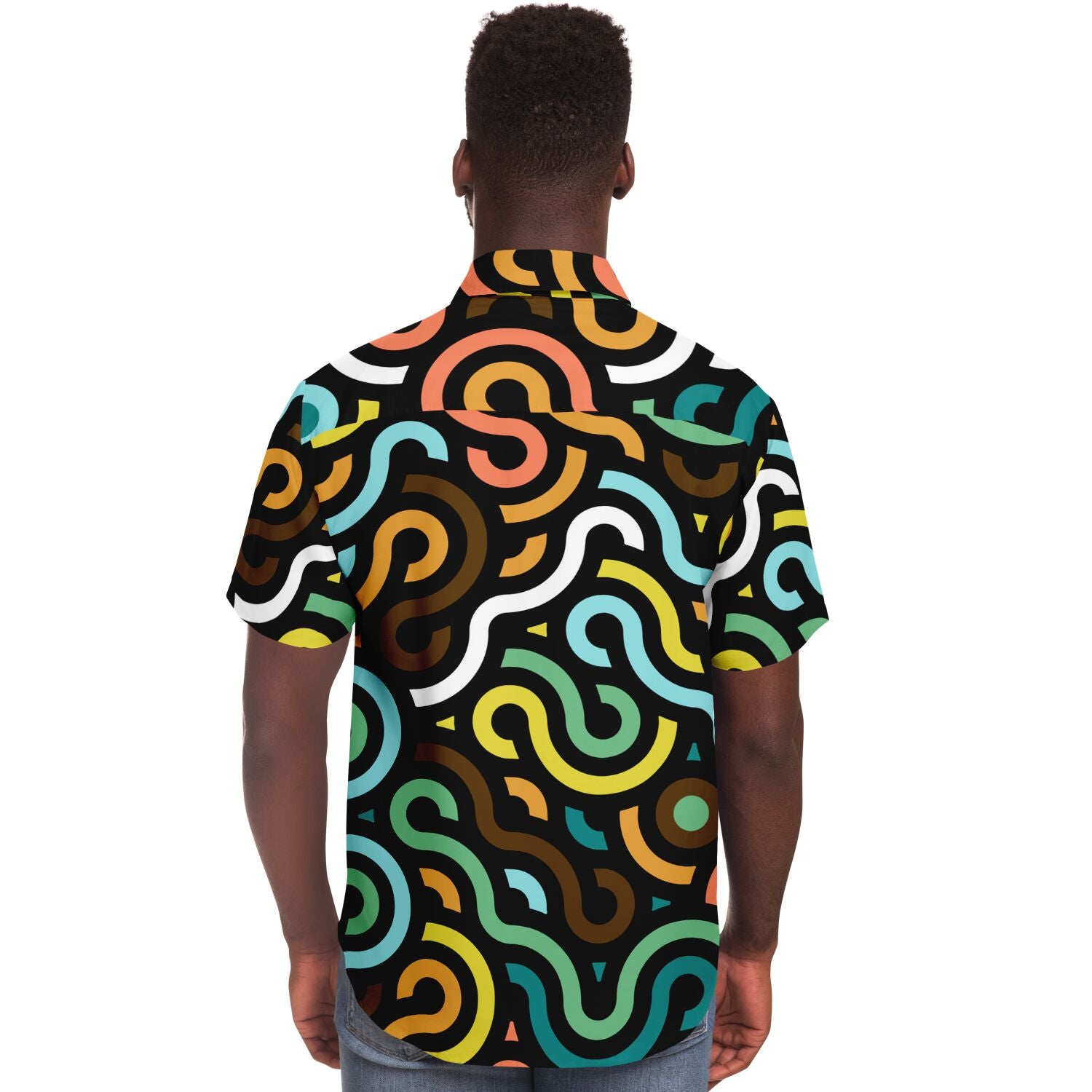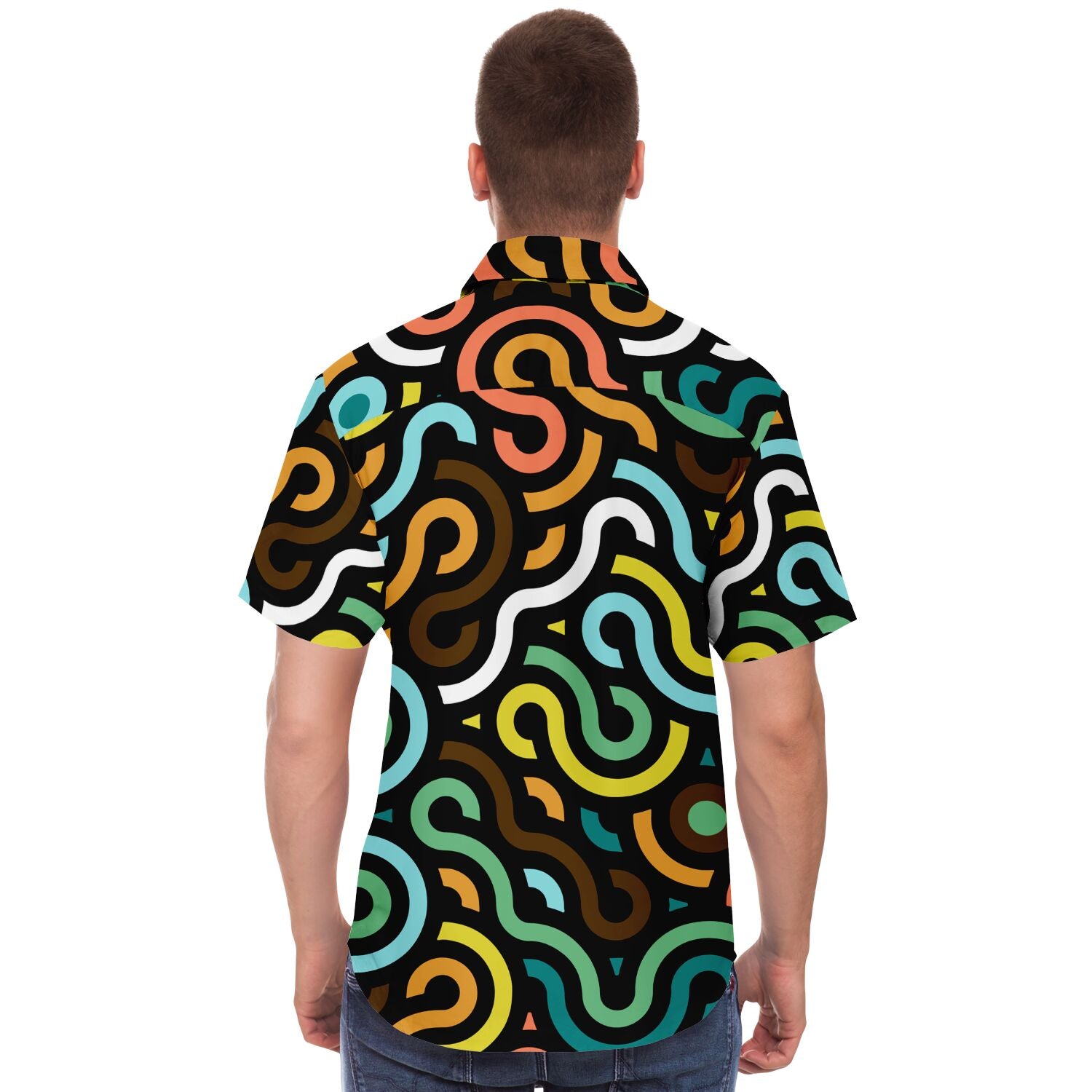 Colored Doodle Art Short Sleeve Button Down Shirt - AOP