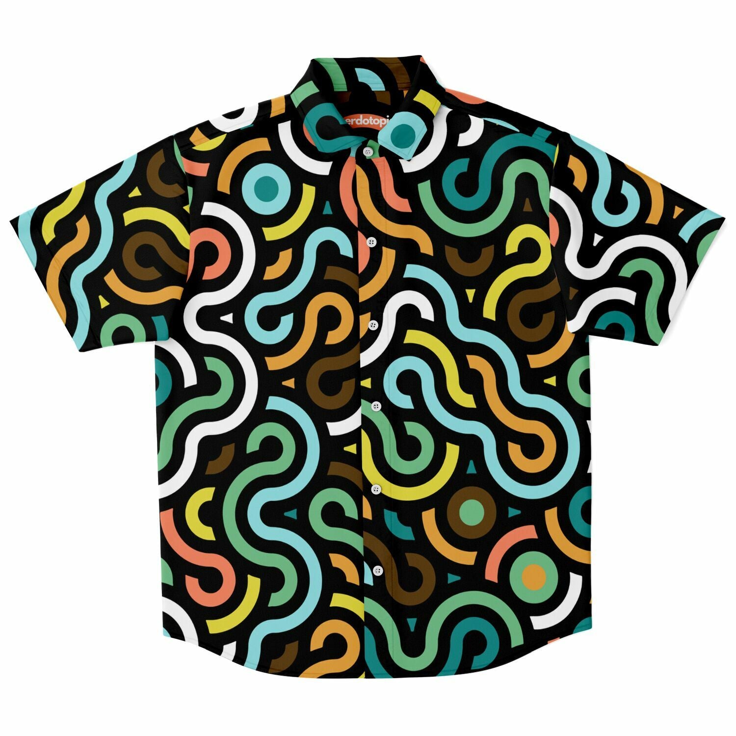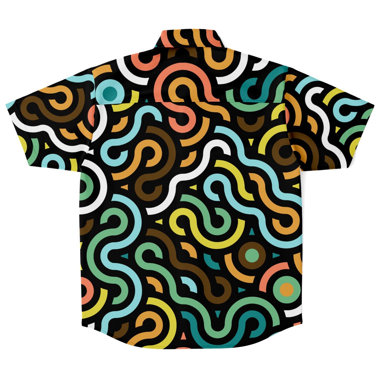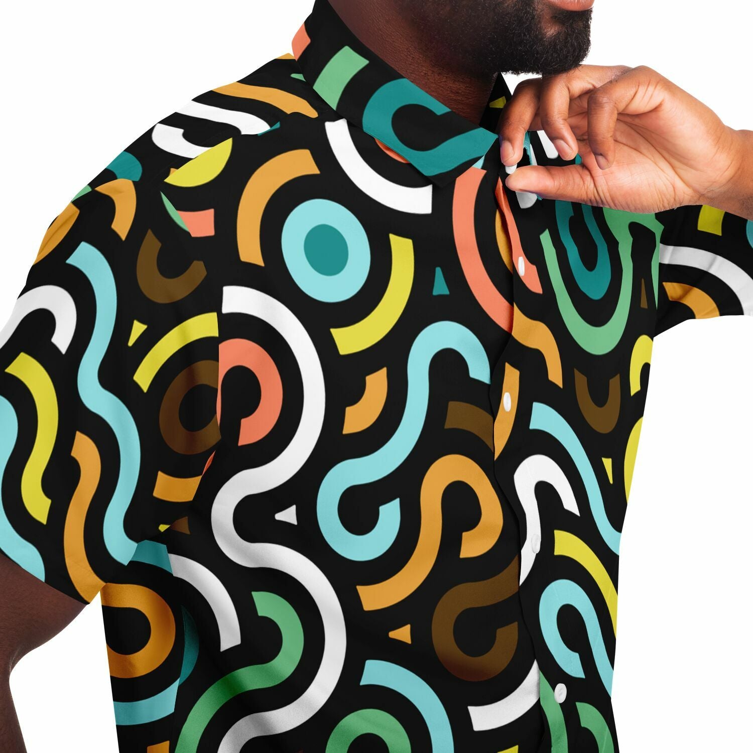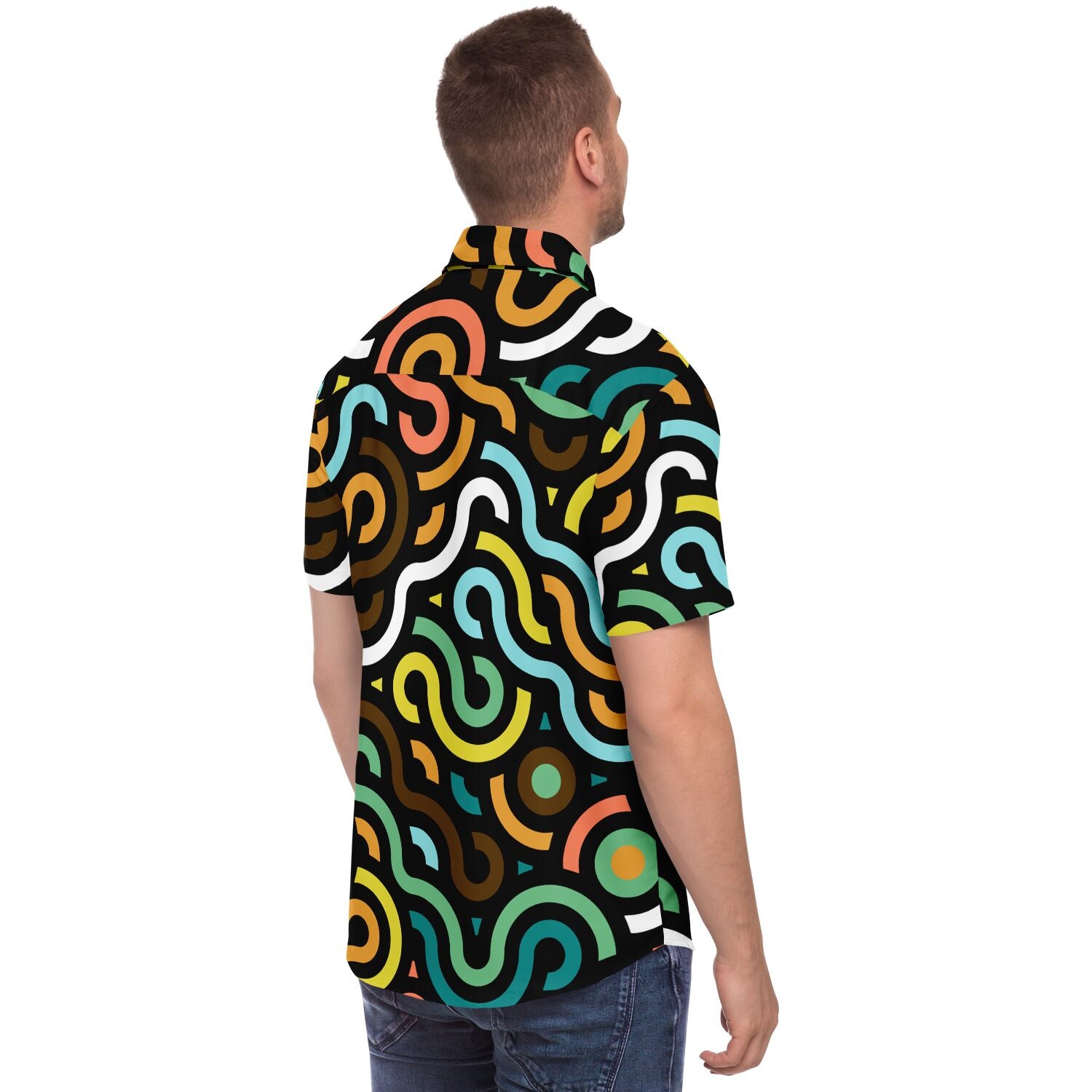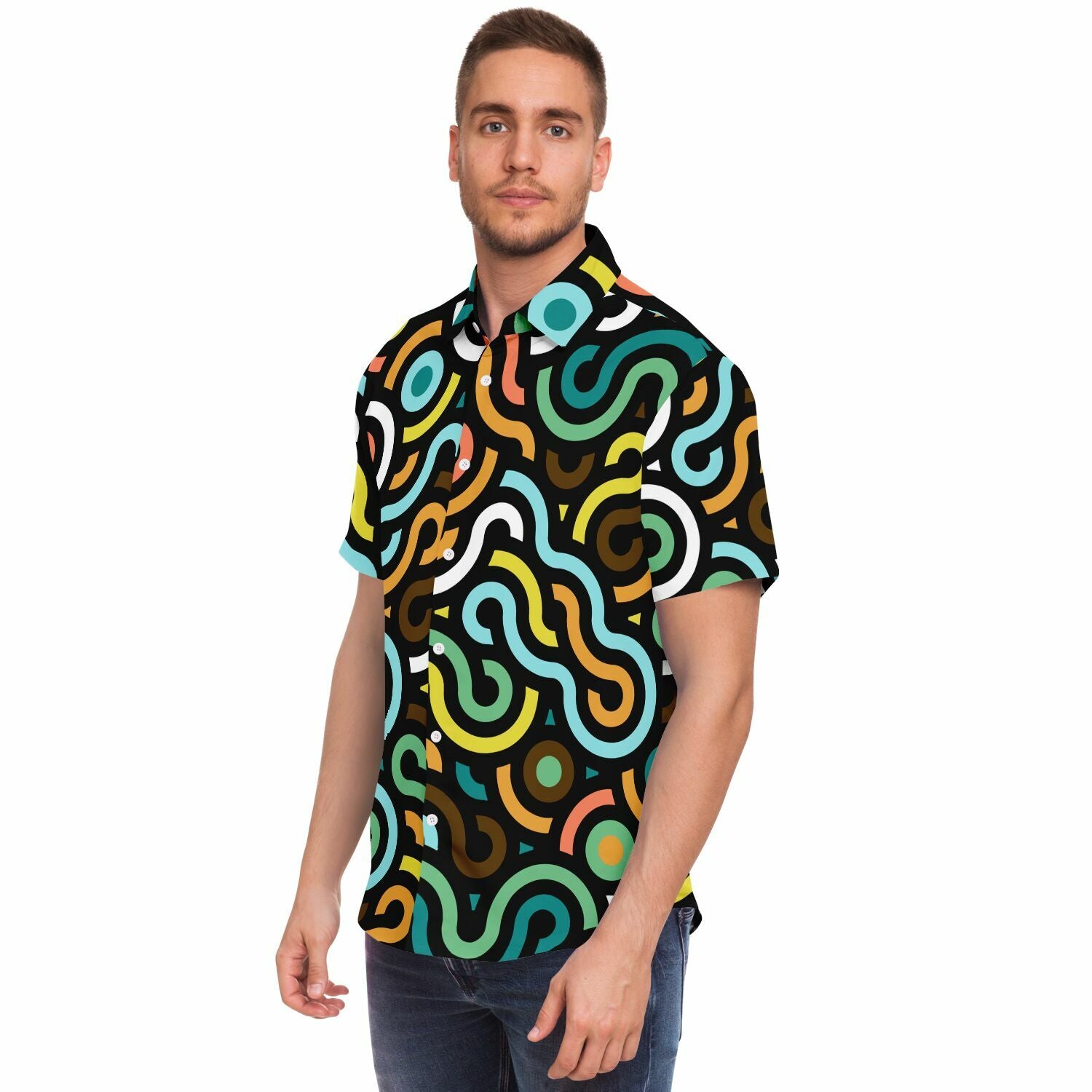 Colored Doodle Art Short Sleeve Button Down Shirt - AOP