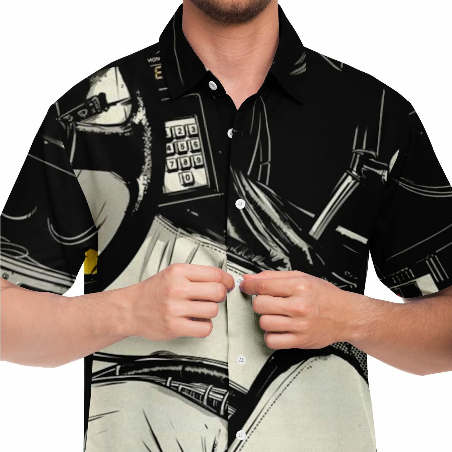 Delorean Time Machine Illustration Short Sleeve Button Down Shirt - AOP