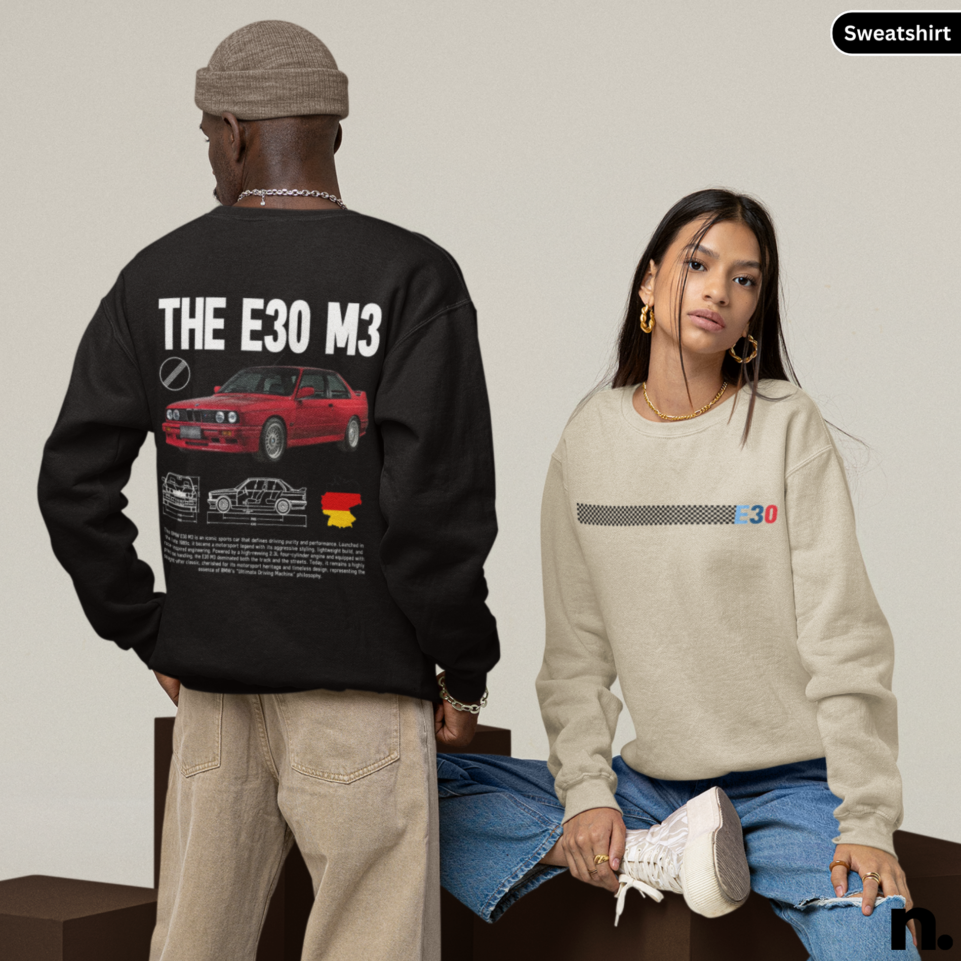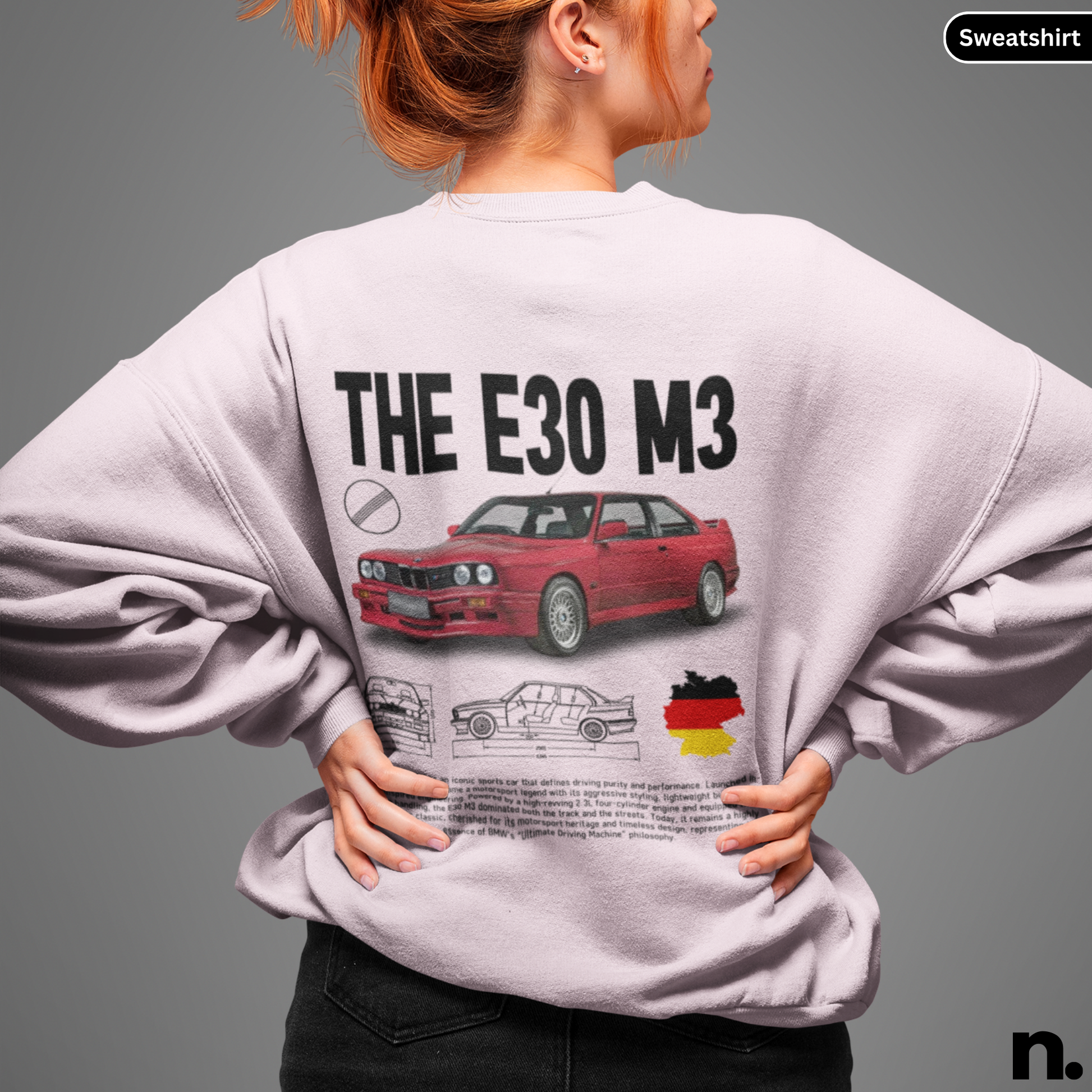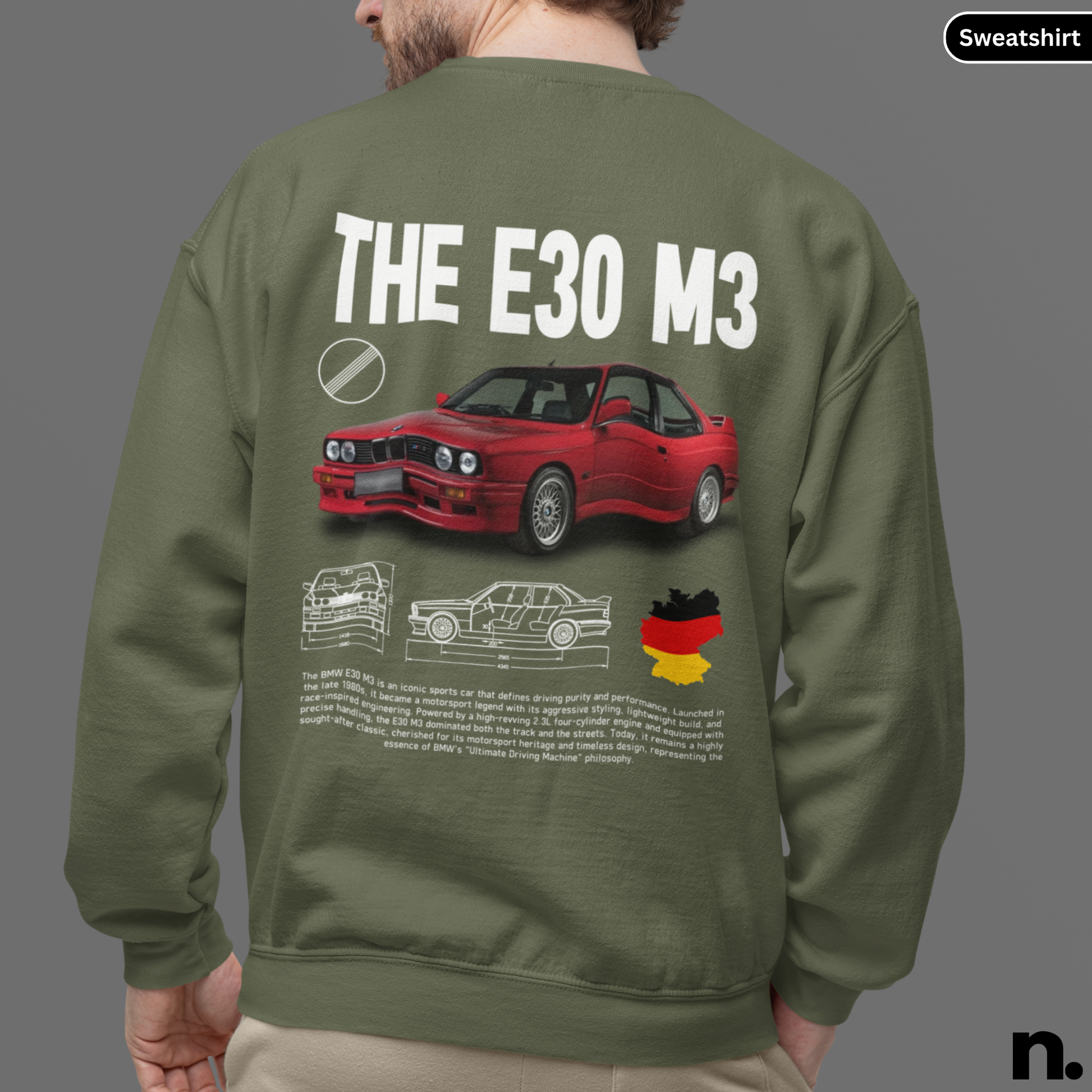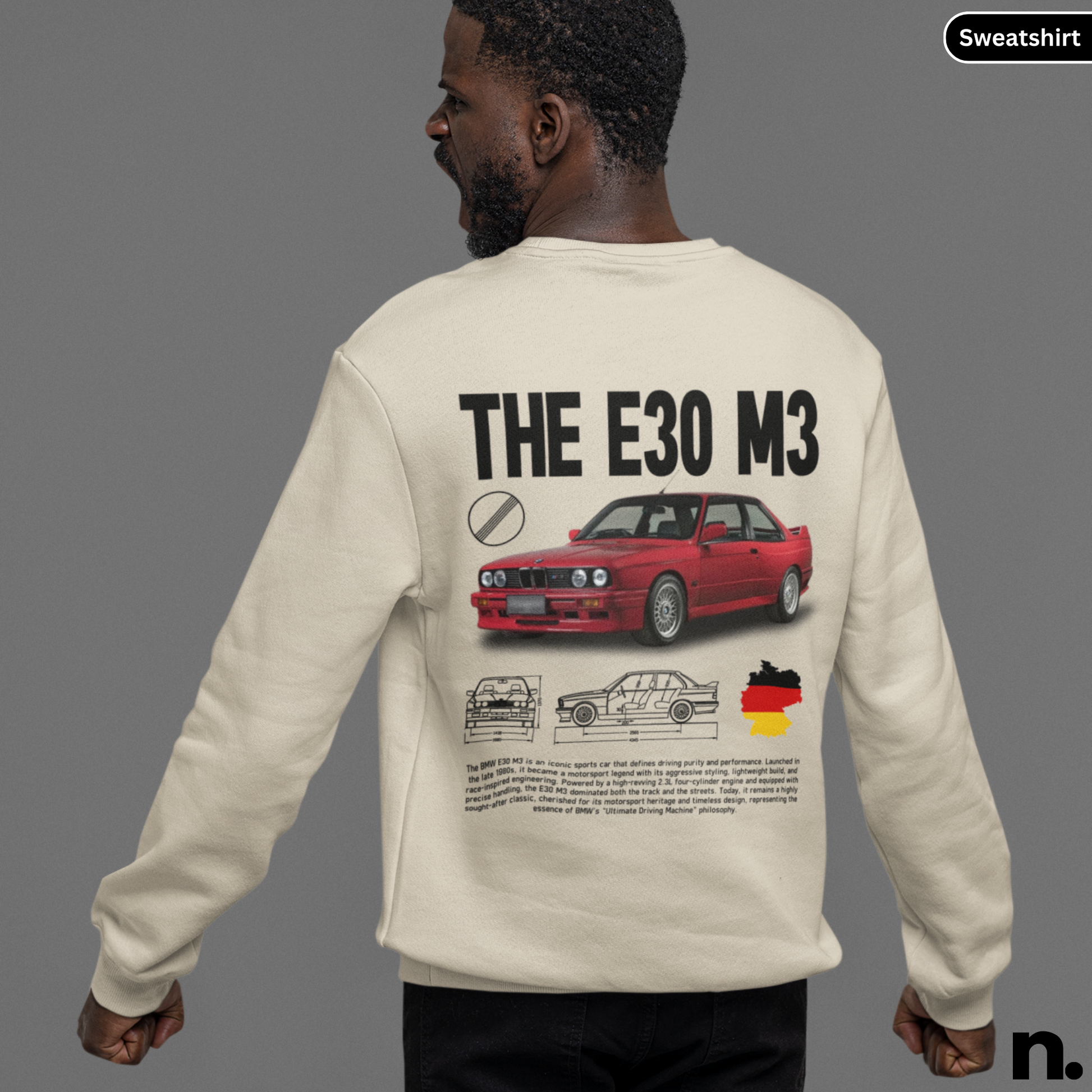 This Bimmer e30 m3 poster style sweatshirt exudes a cool and edgy vibe, perfect for car enthusiasts and fans of sleek design. Whether you're attending a car show or just hanging out with friends, this sweatshirt will add a touch of style to your outfit. Ideal for birthdays, holidays, or any casual occasion.