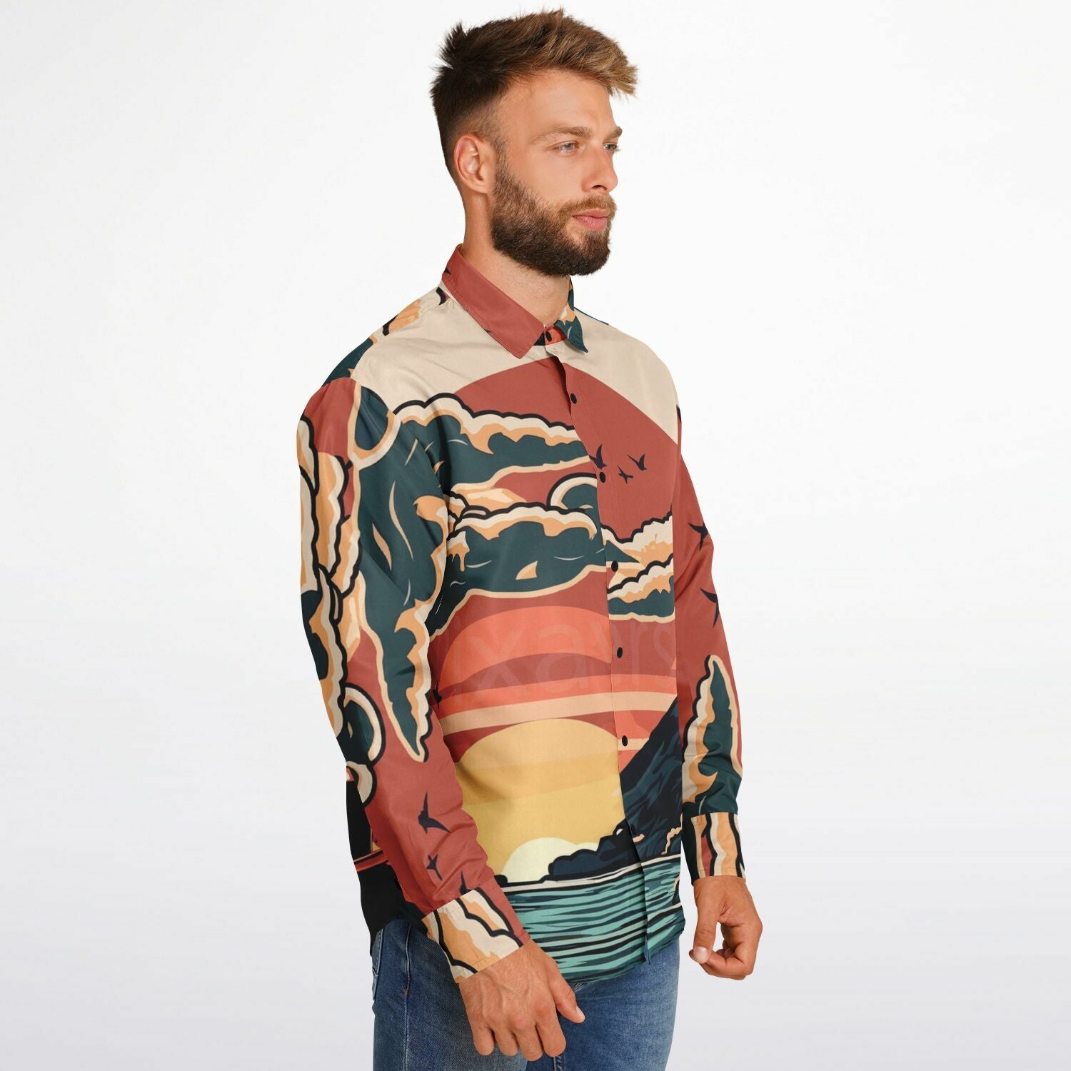 Evo X Illustration Long Sleeve Button Down Shirt - AOP