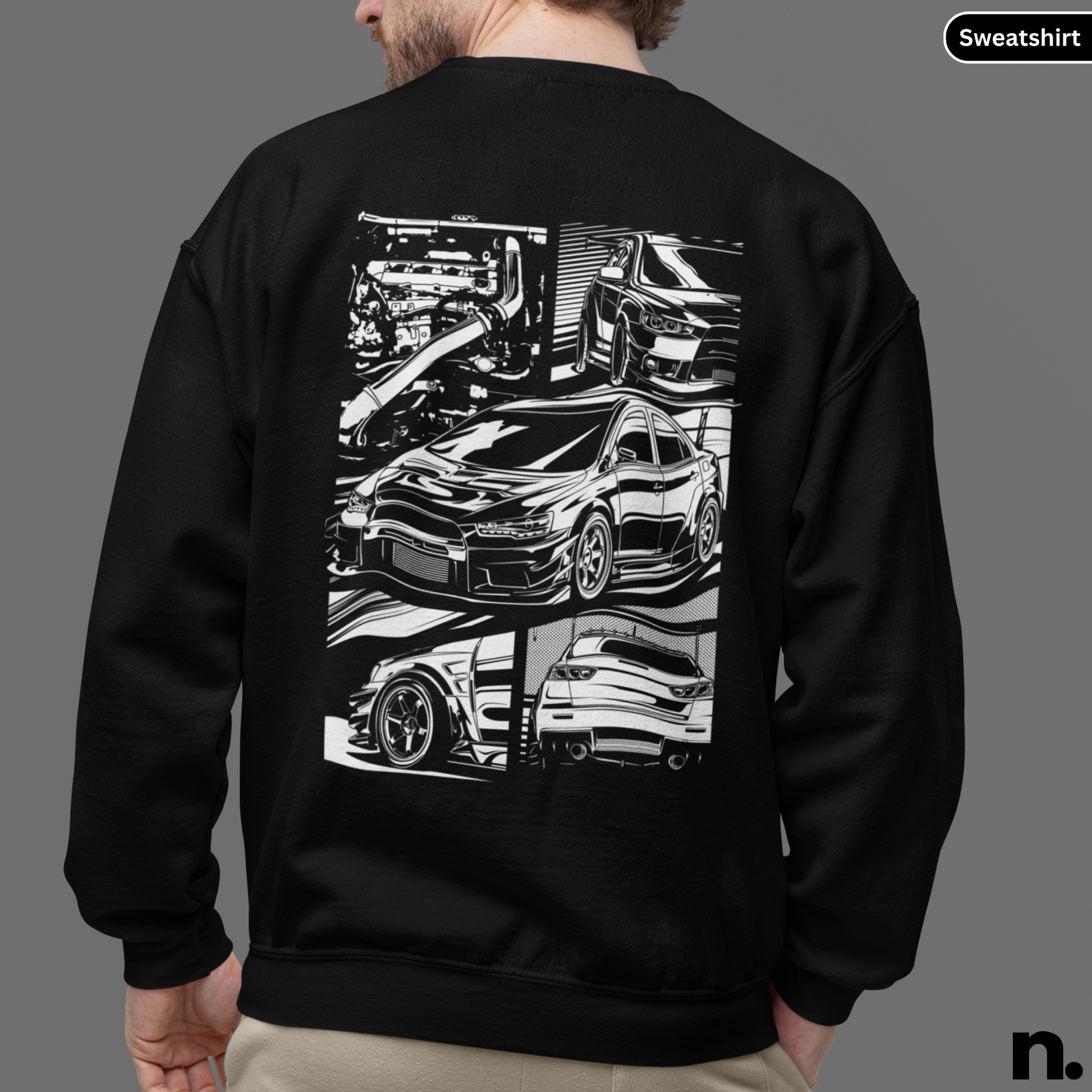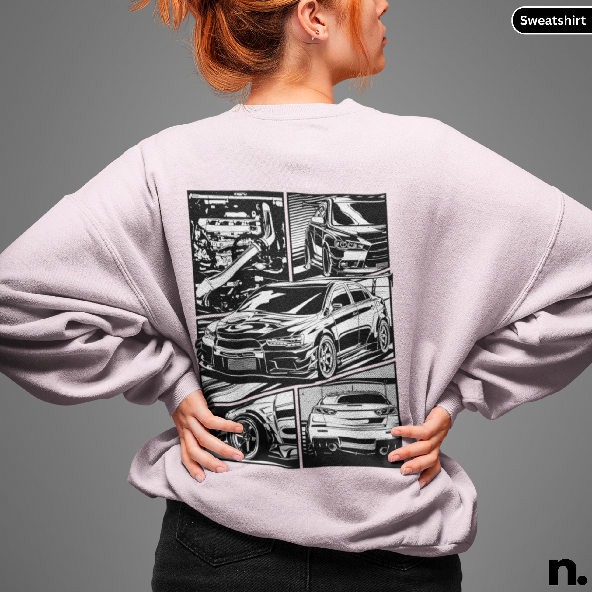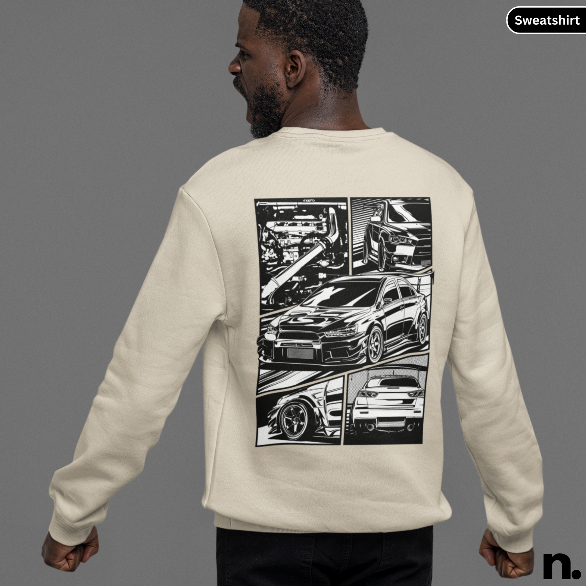This Evo X Illustration Poster Style Sweatshirt exudes a cool and edgy vibe, perfect for car enthusiasts and individuals who appreciate unique designs. It is ideal for those looking for a cozy and stylish sweatshirt to wear in the colder months, while showcasing their love for cars.