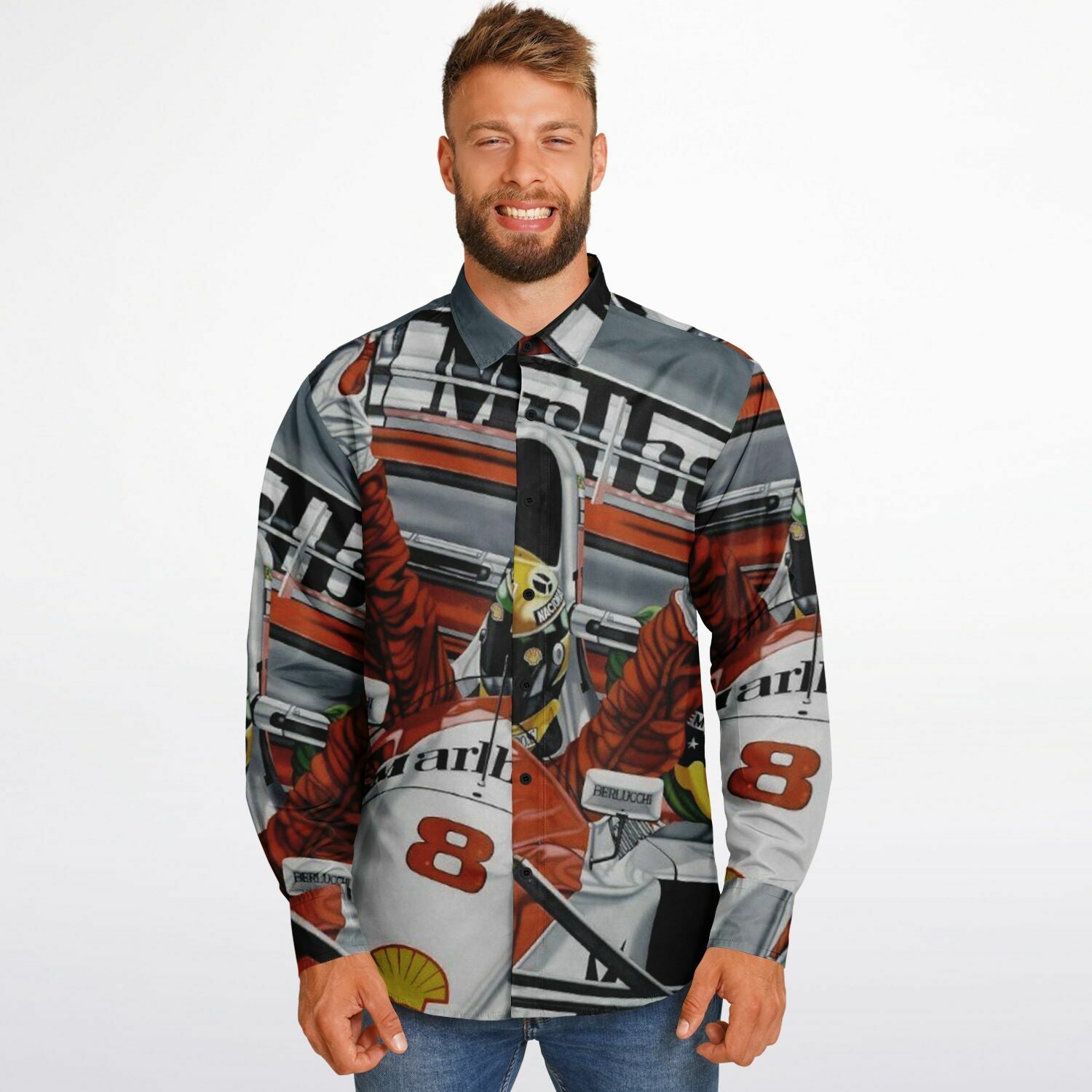 F1 Win Poster Long Sleeve Button Down Shirt - AOP