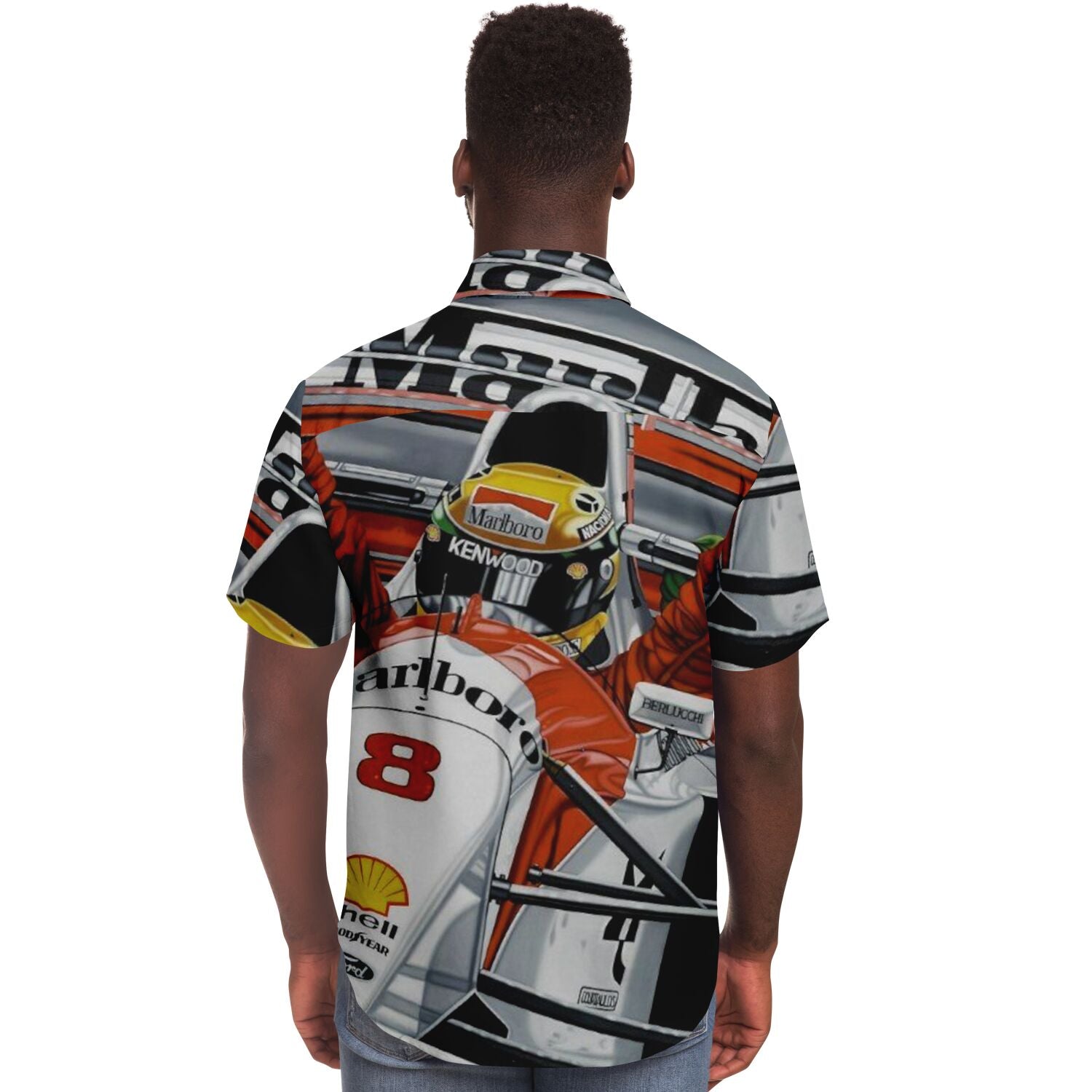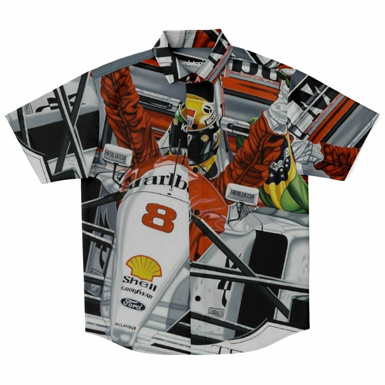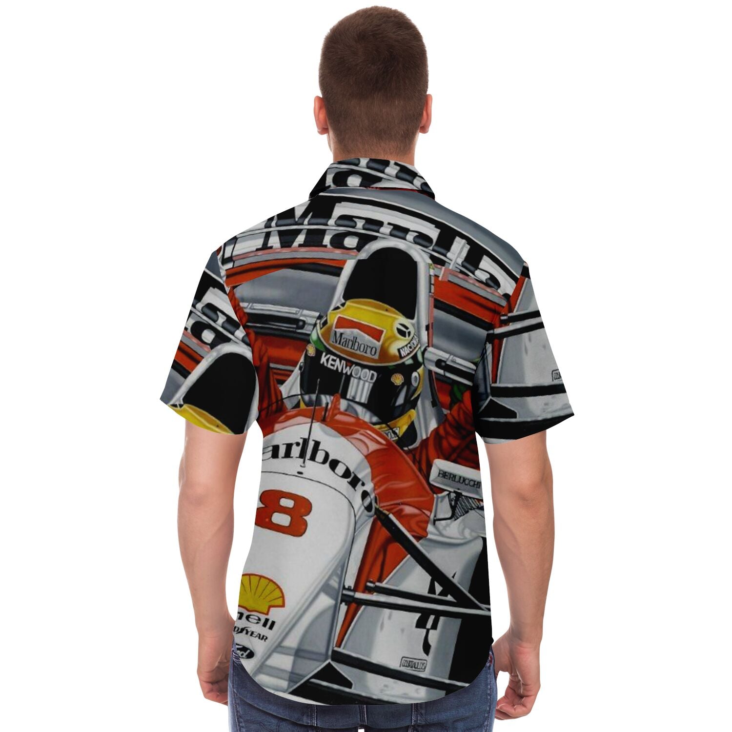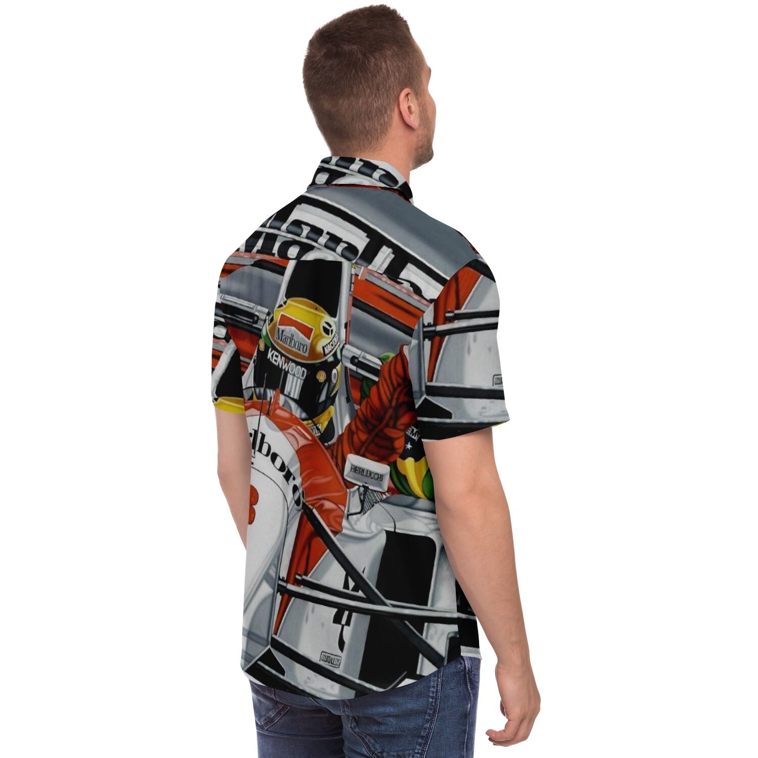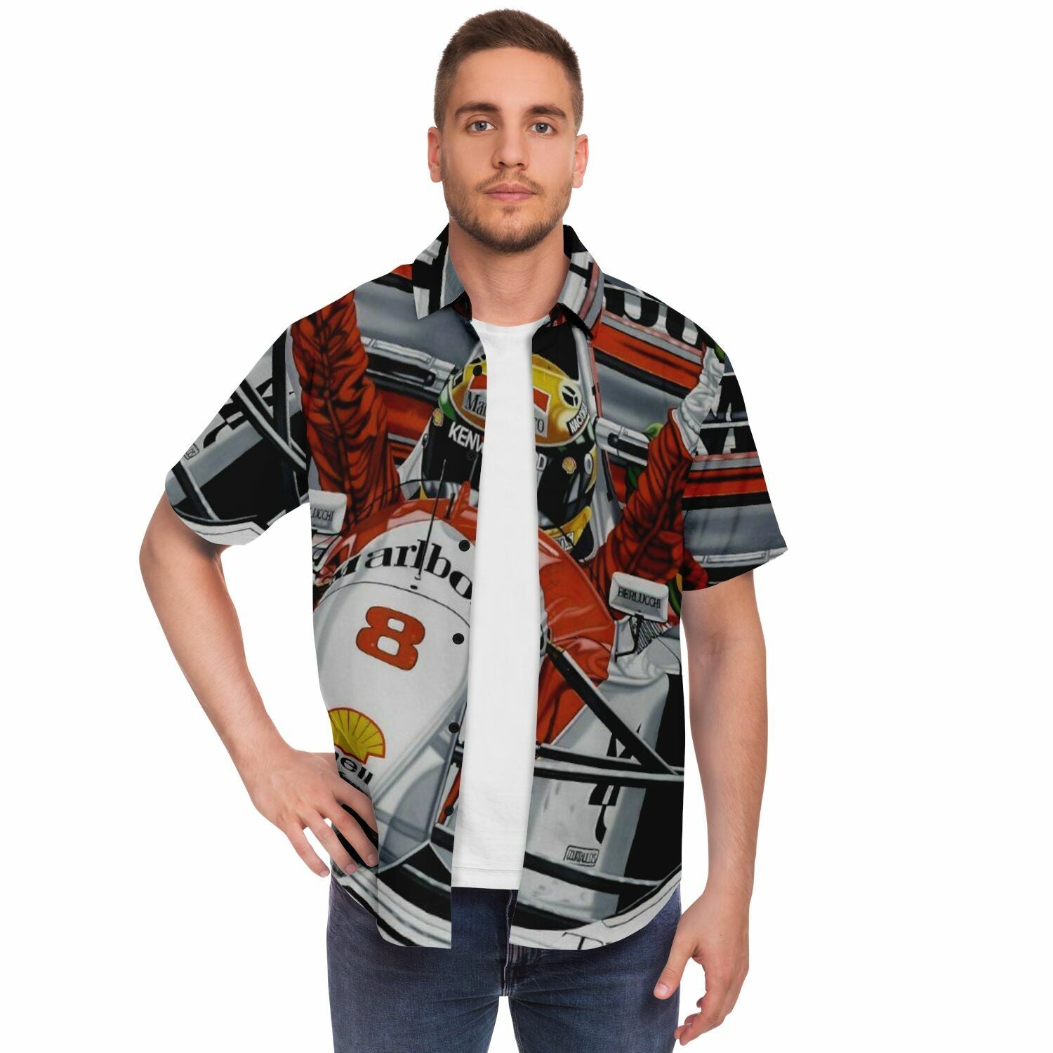 F1 Win Poster Short Sleeve Button Down Shirt - AOP