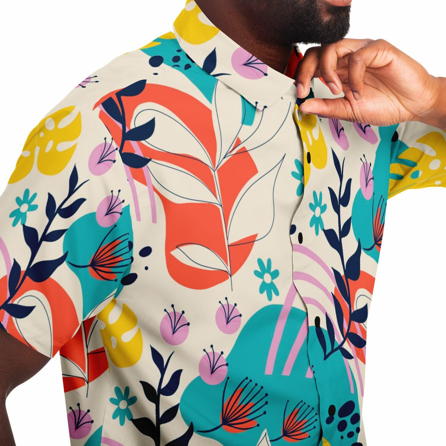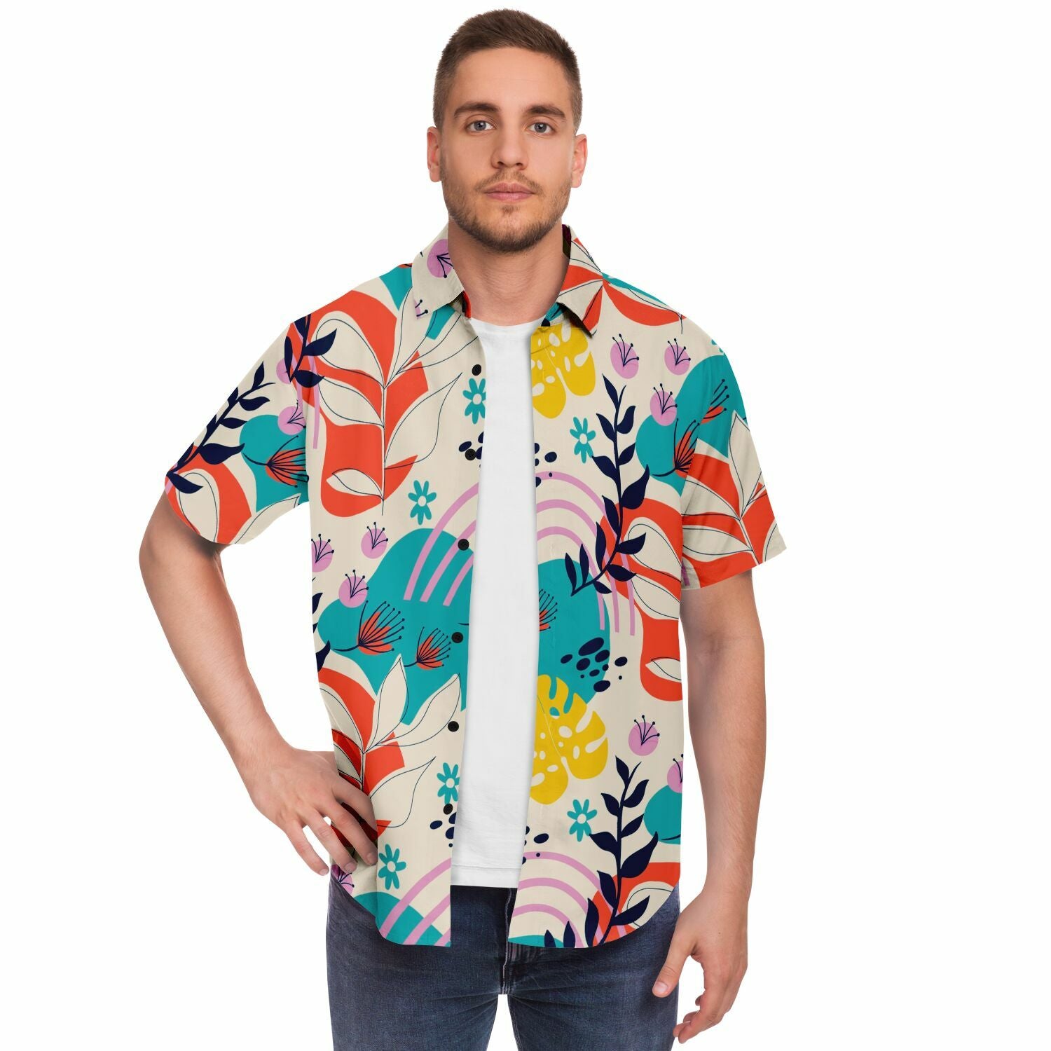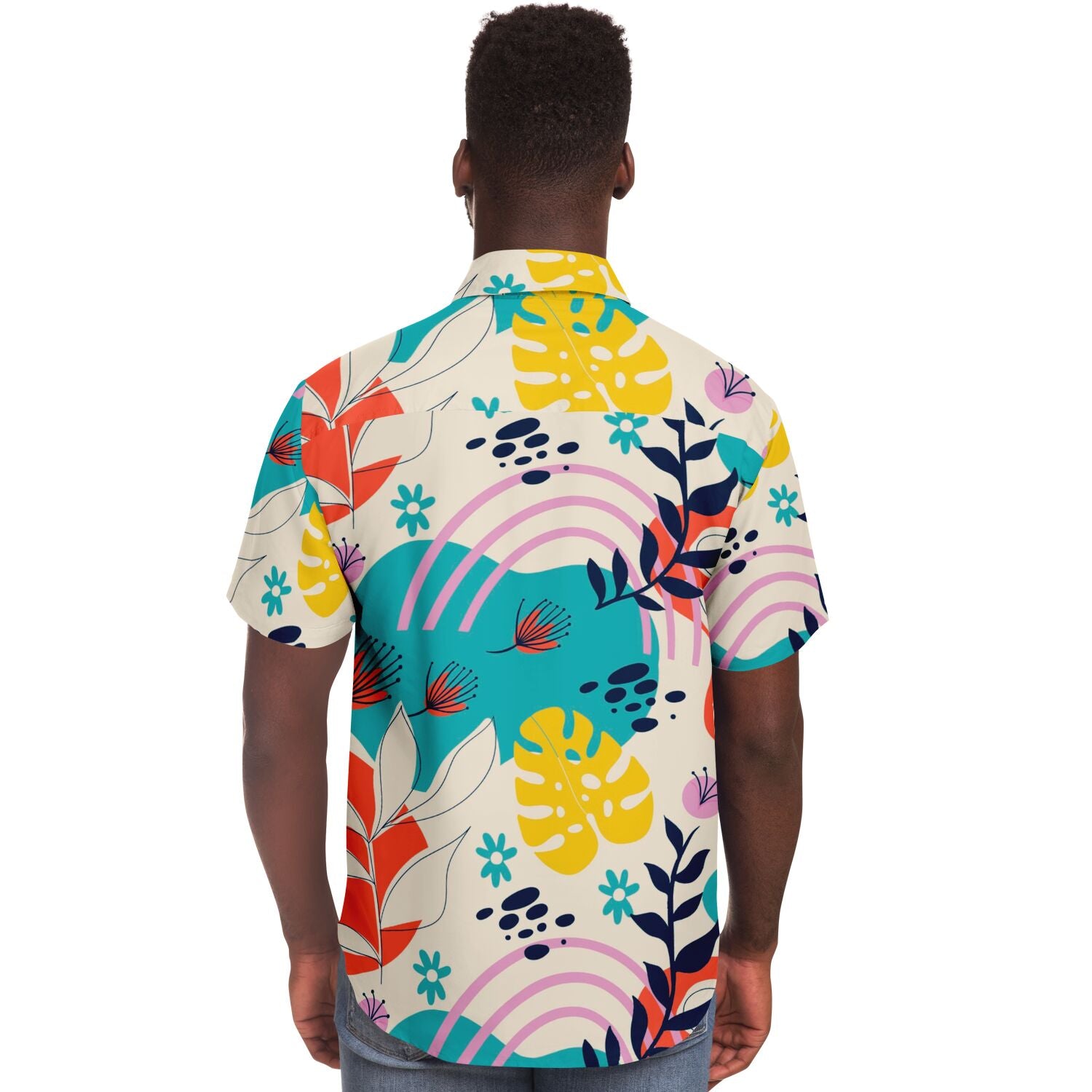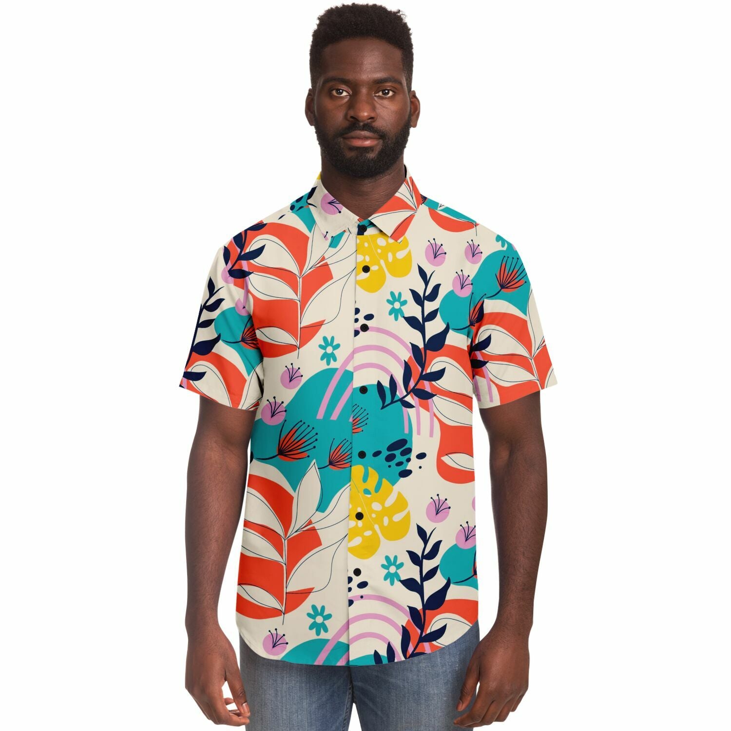 Floral Painting Short Sleeve Button Down Shirt - AOP