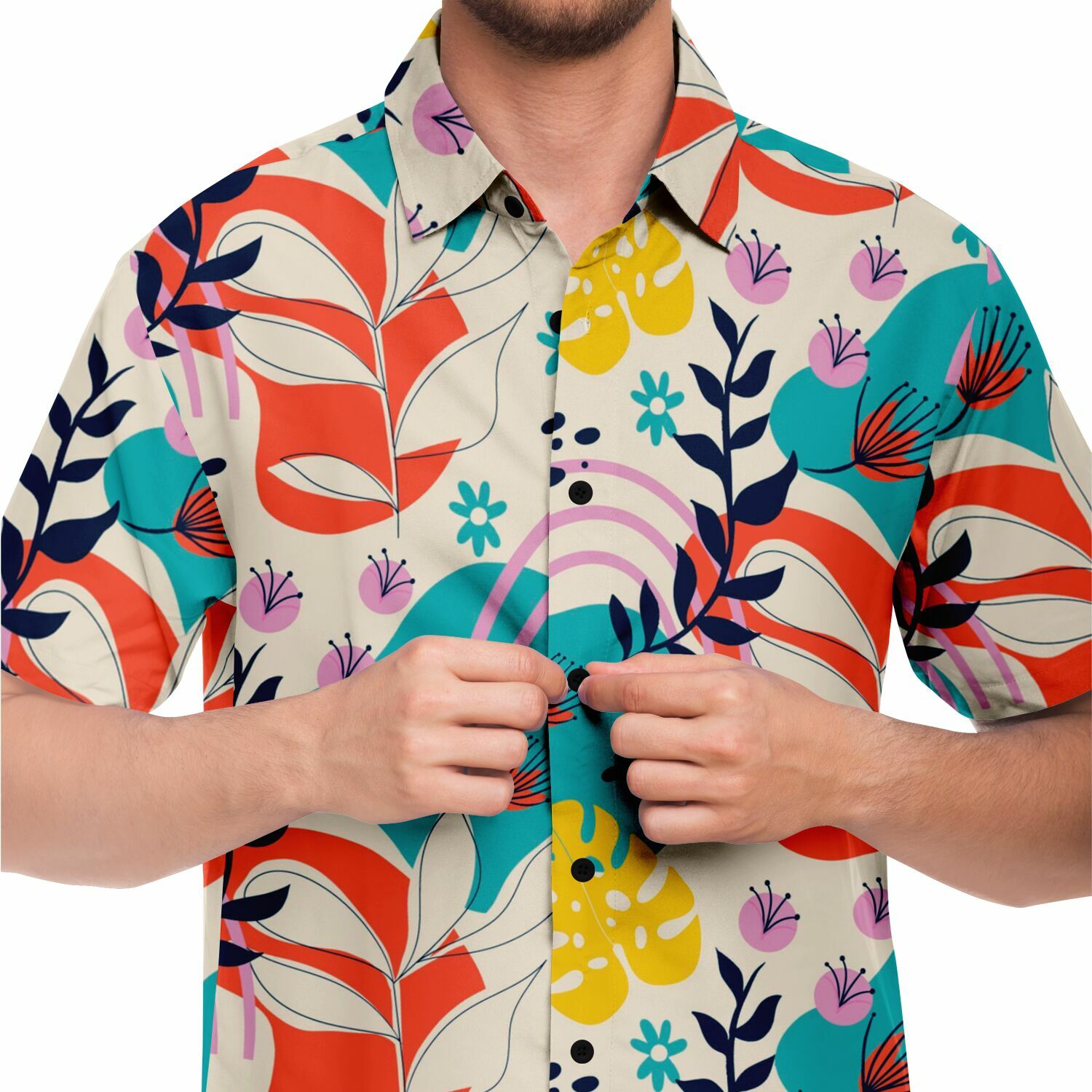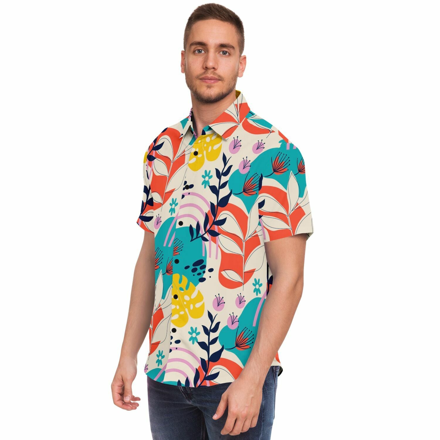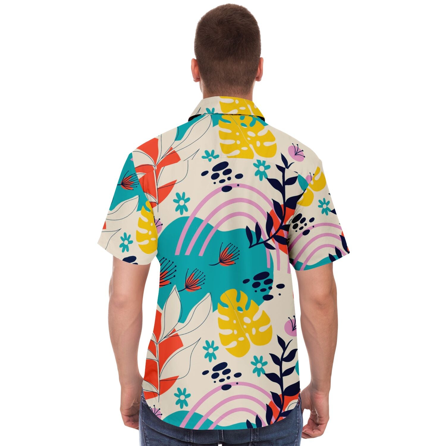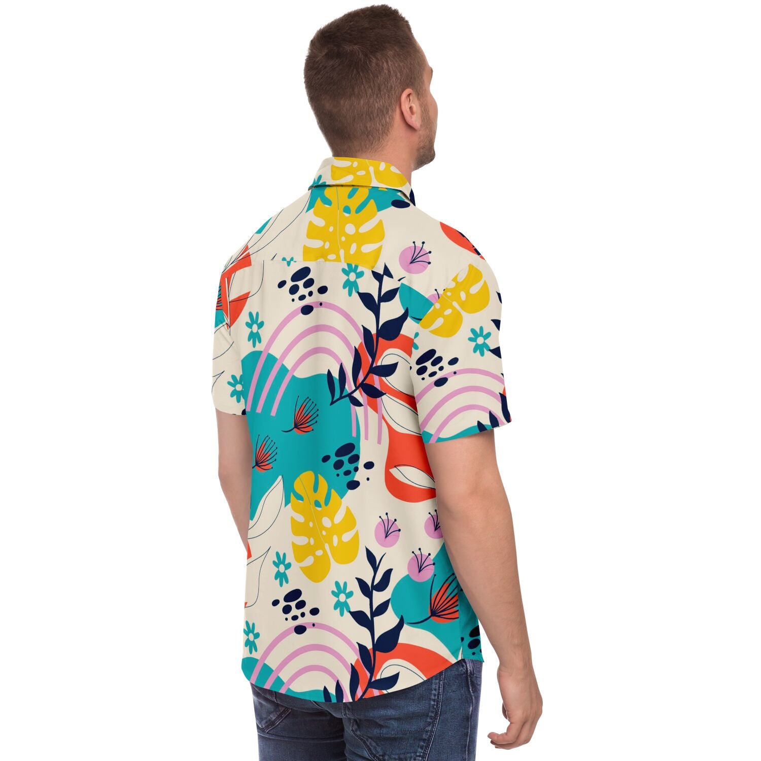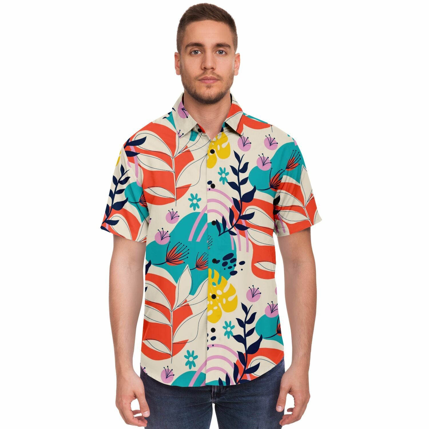 Floral Painting Short Sleeve Button Down Shirt - AOP