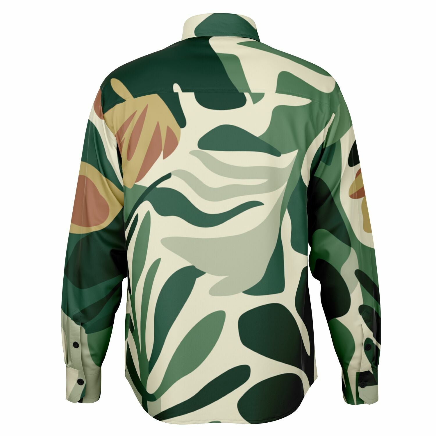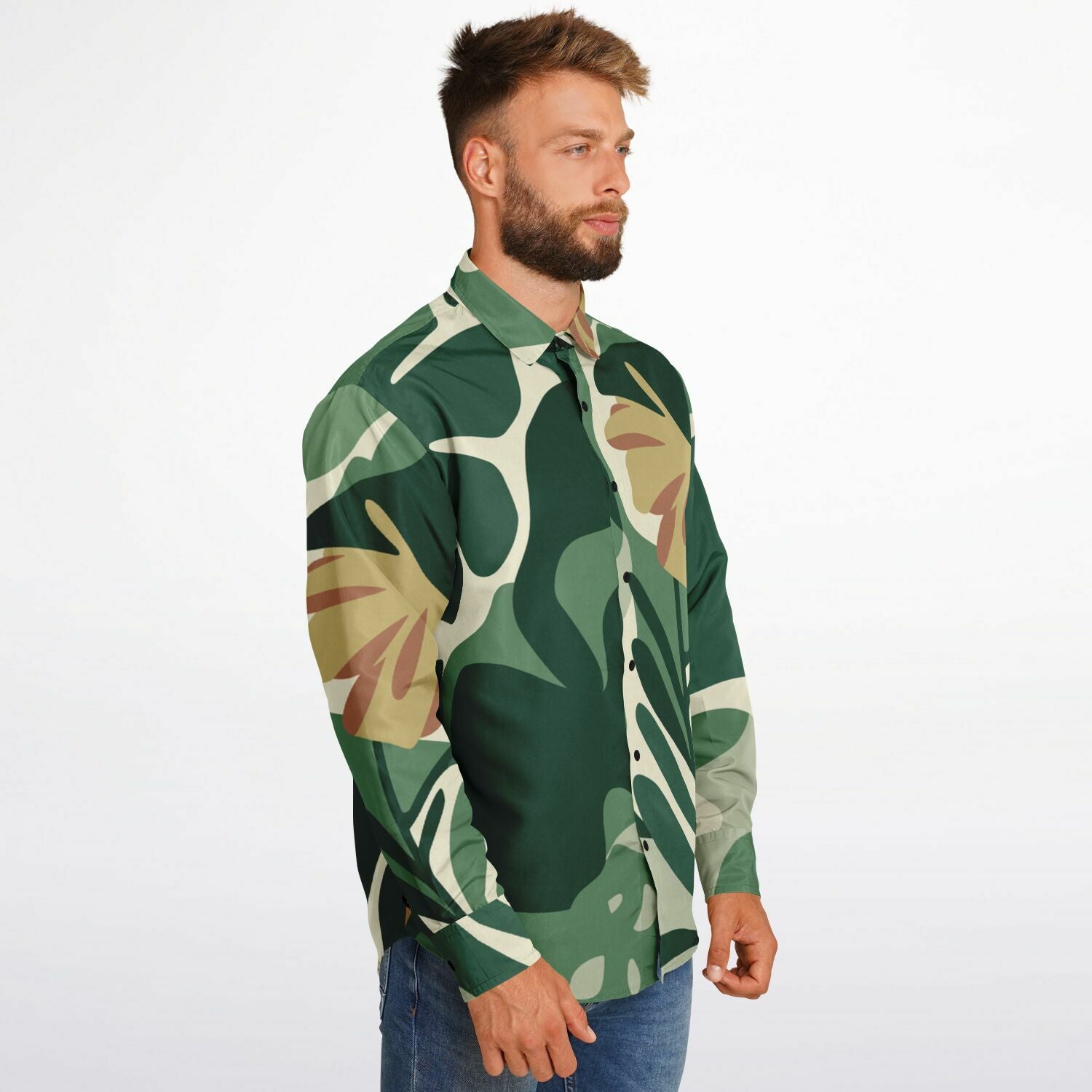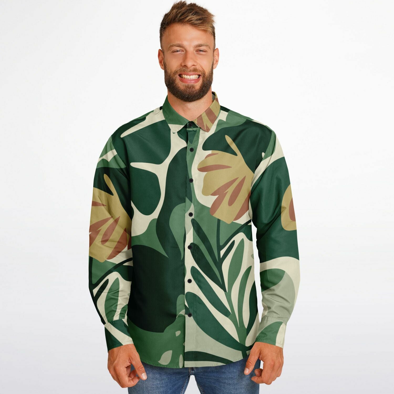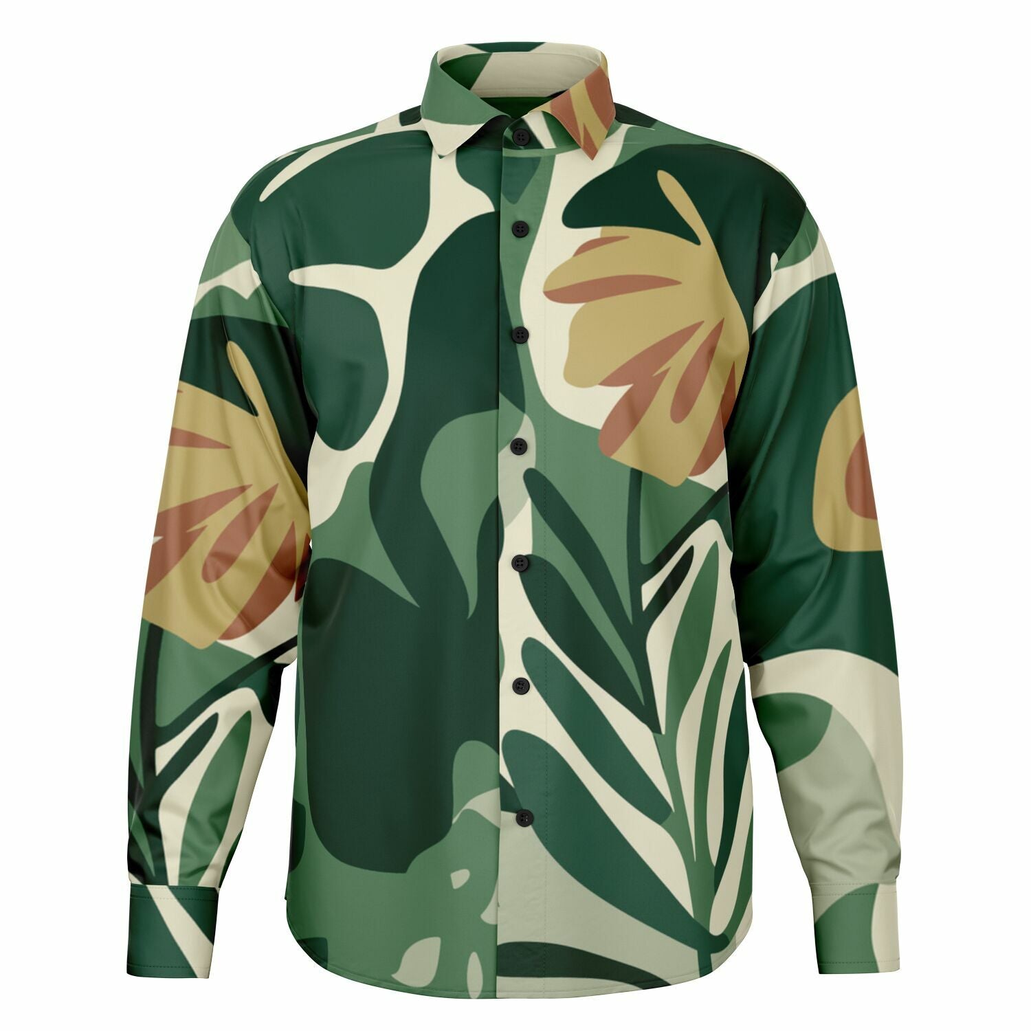 Floral Pattern Long Sleeve Button Down Shirt - AOP