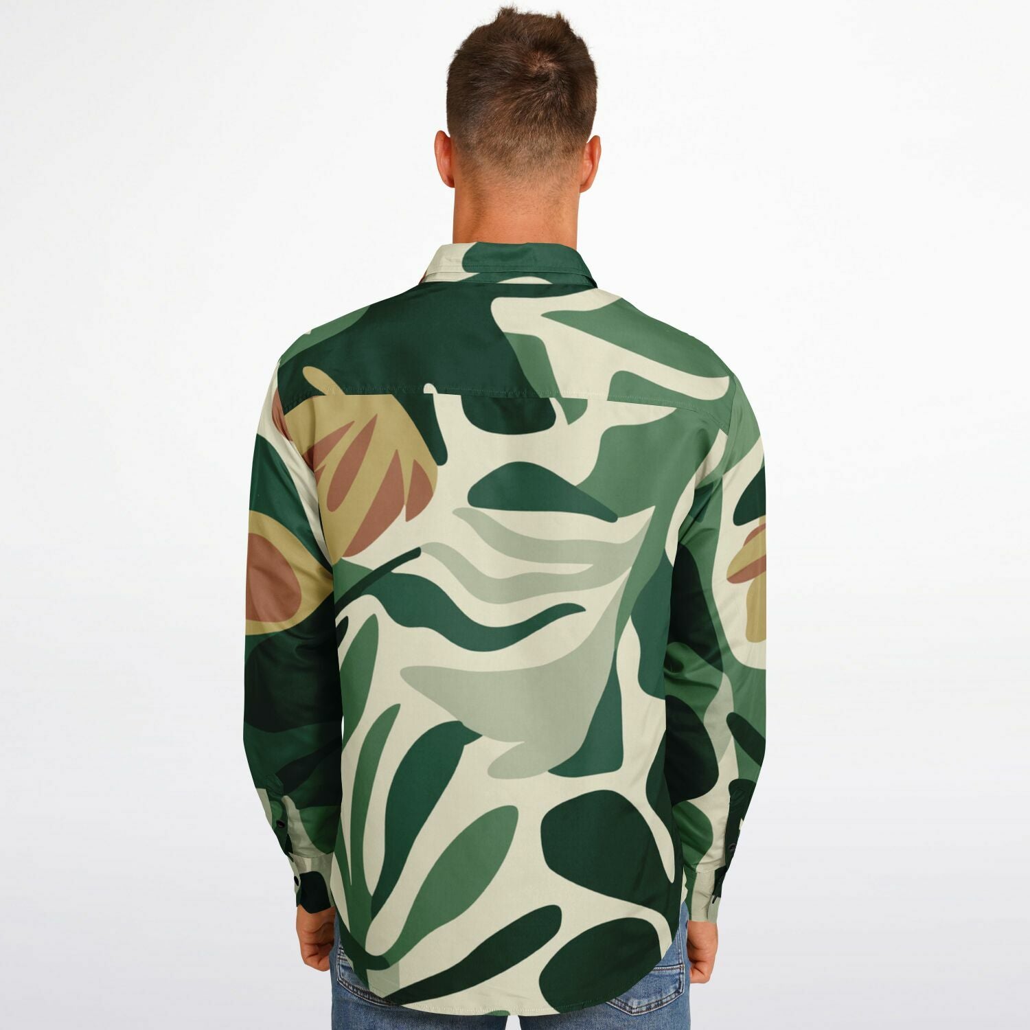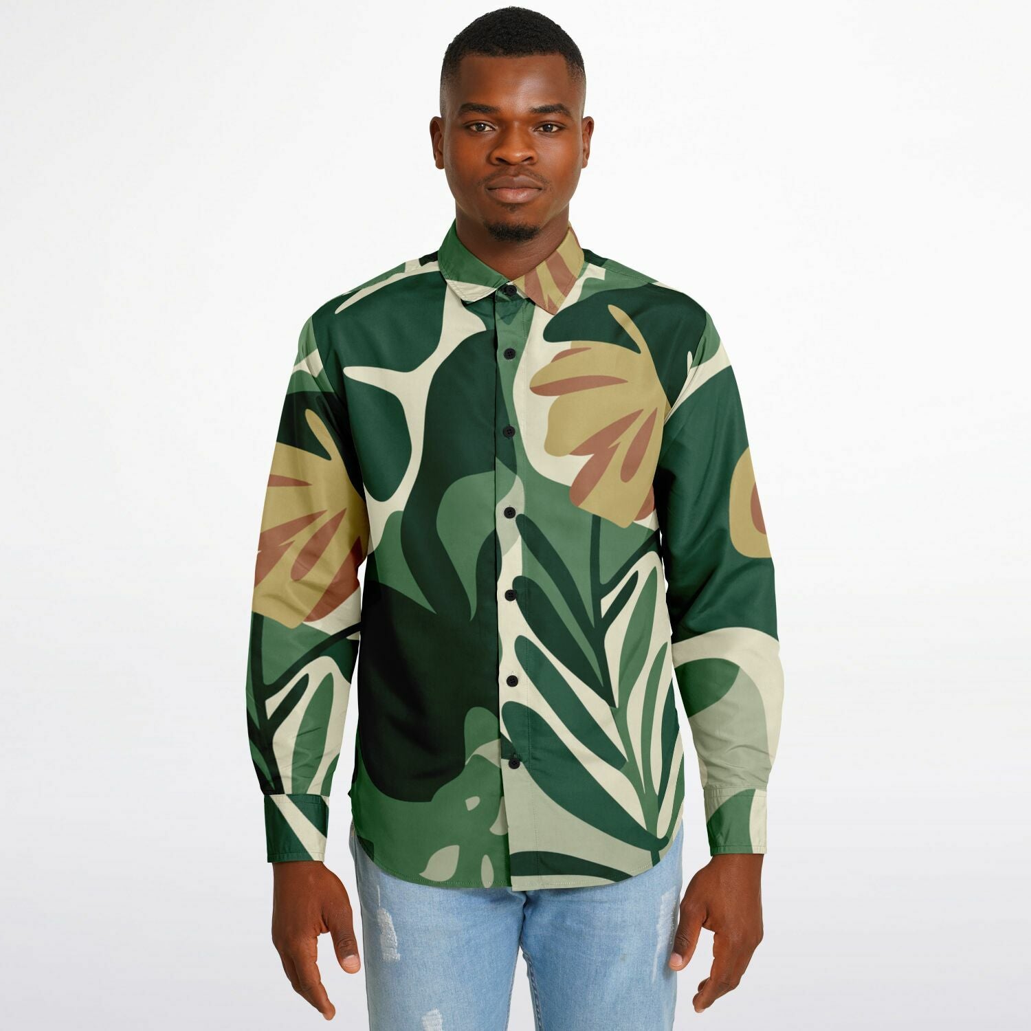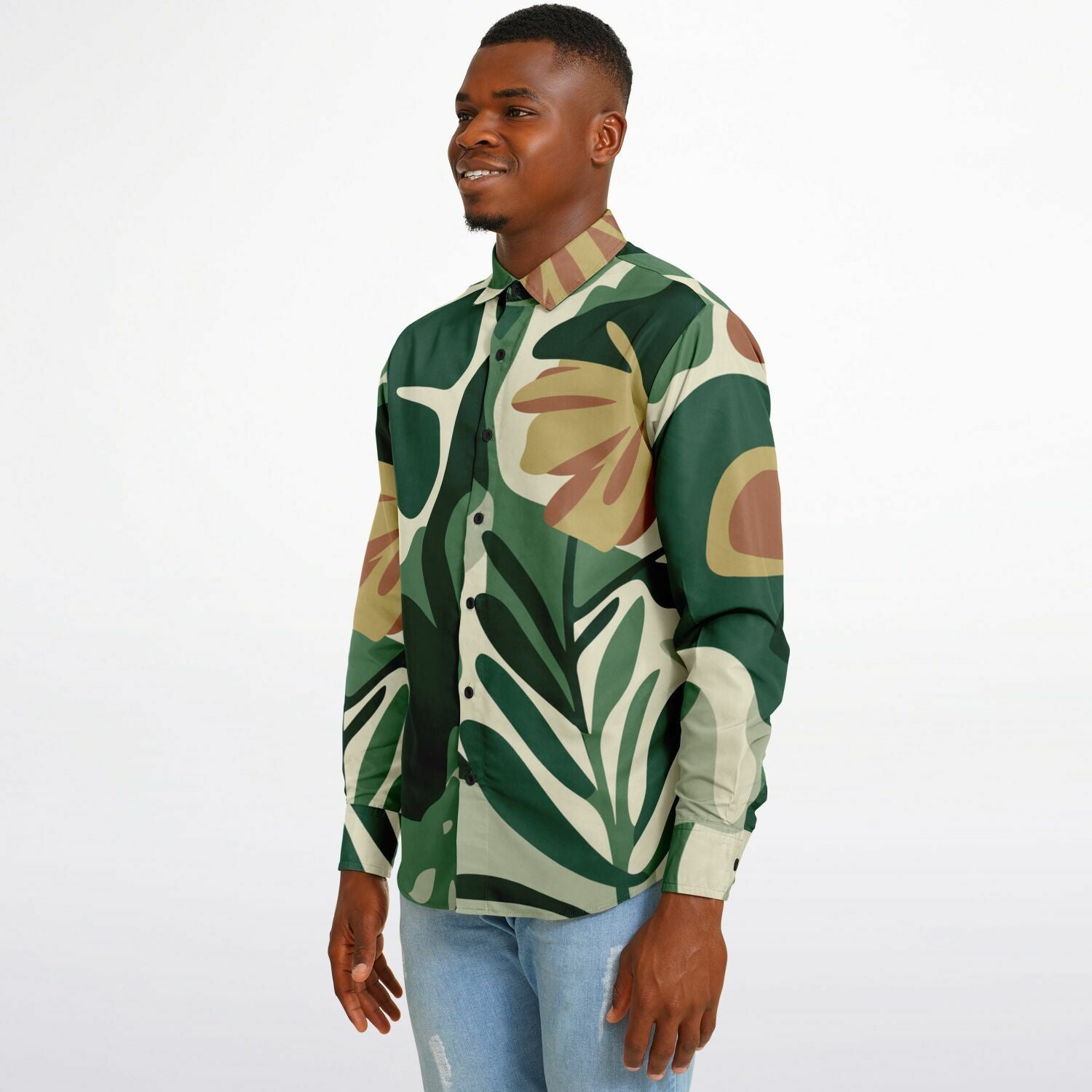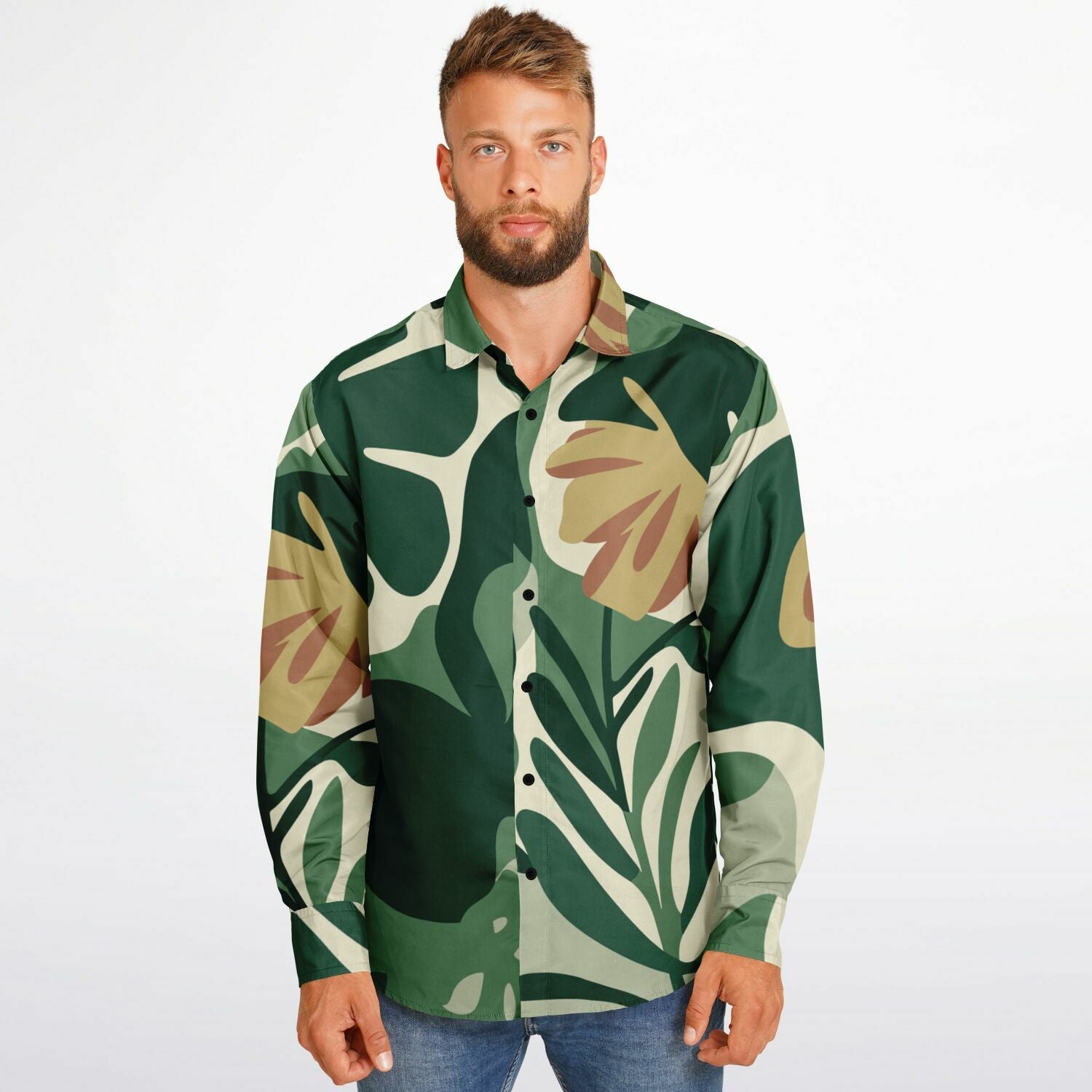 Floral Pattern Long Sleeve Button Down Shirt - AOP