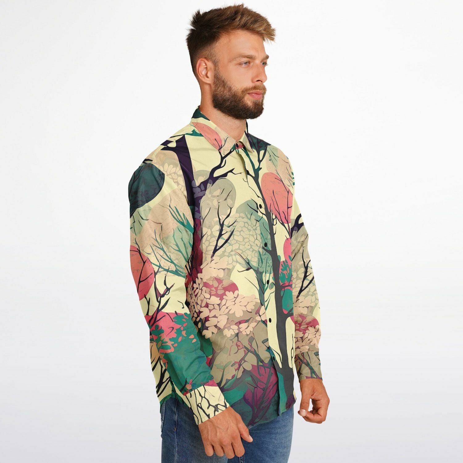 Forest Trees in Autumn Long Sleeve Button Down Shirt - AOP