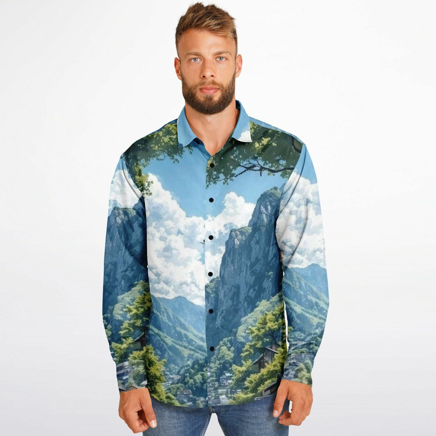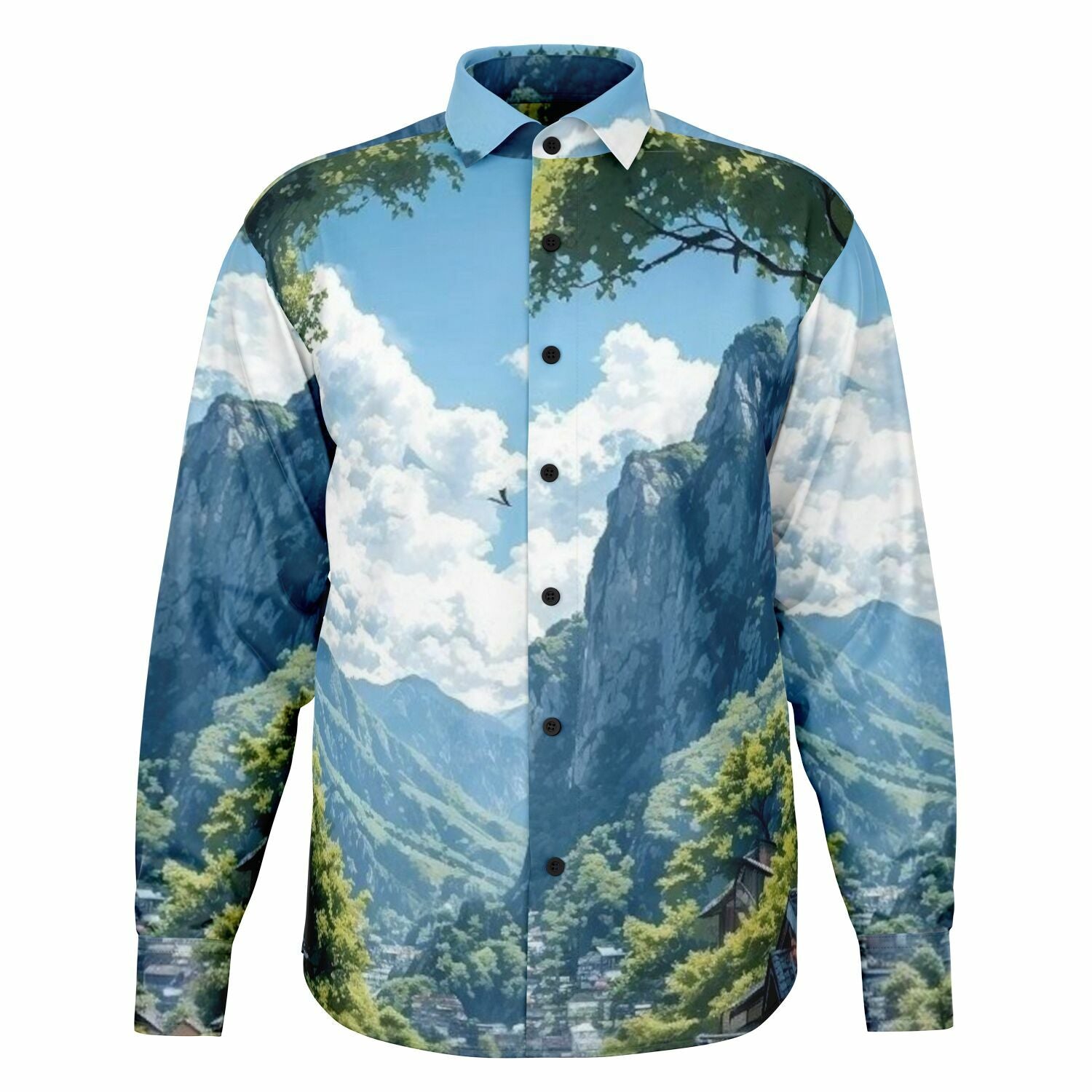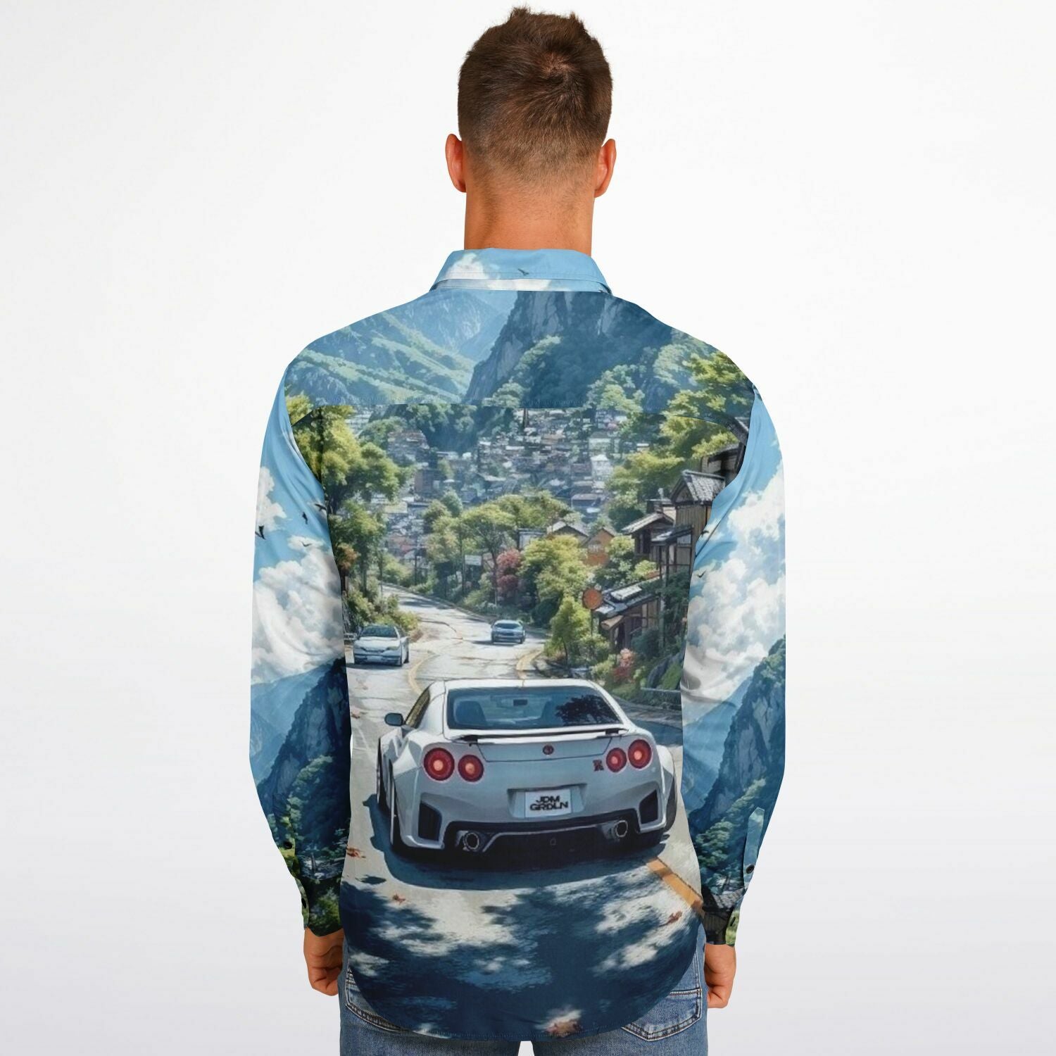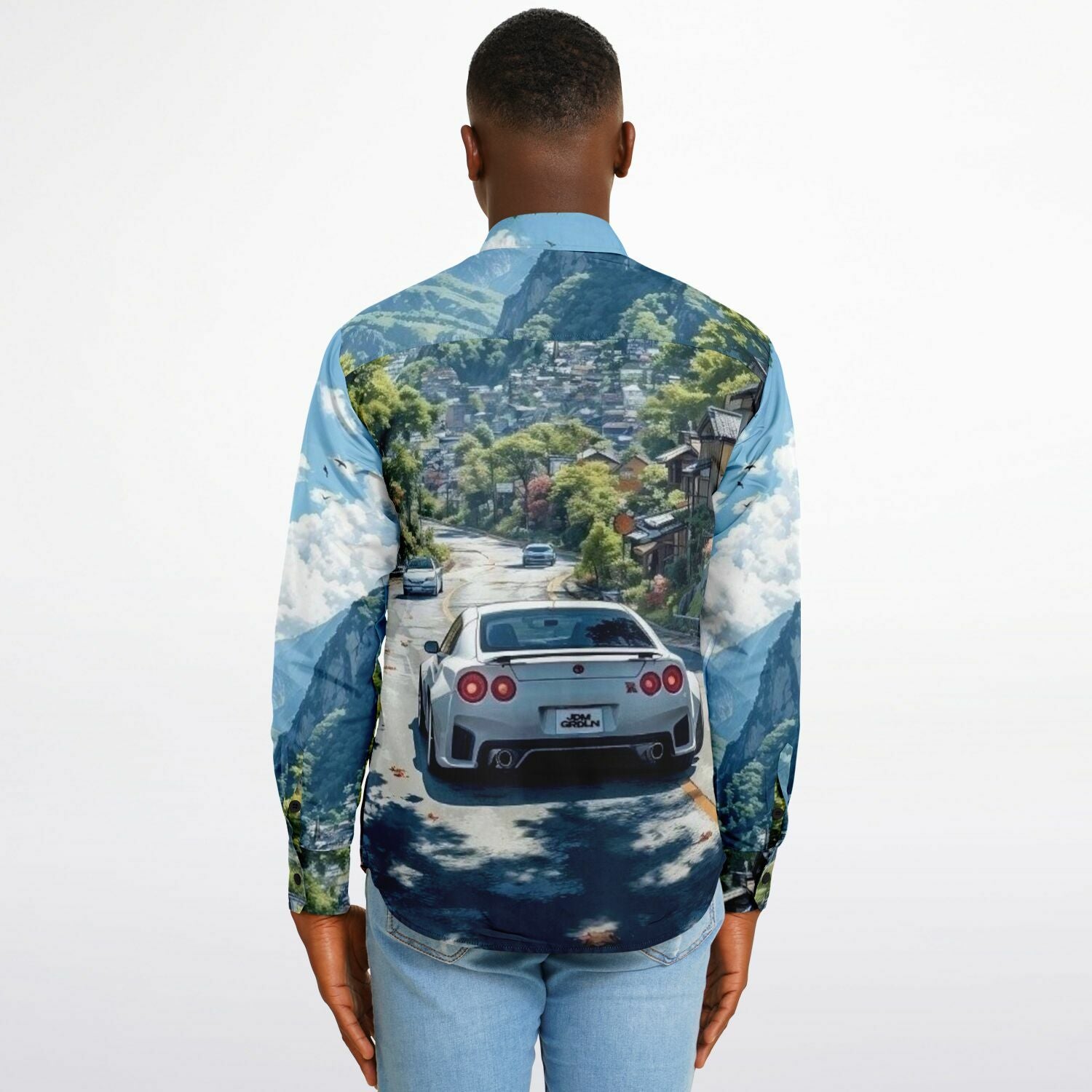 GTR in Japanese Mountain Long Sleeve Button Down Shirt - AOP