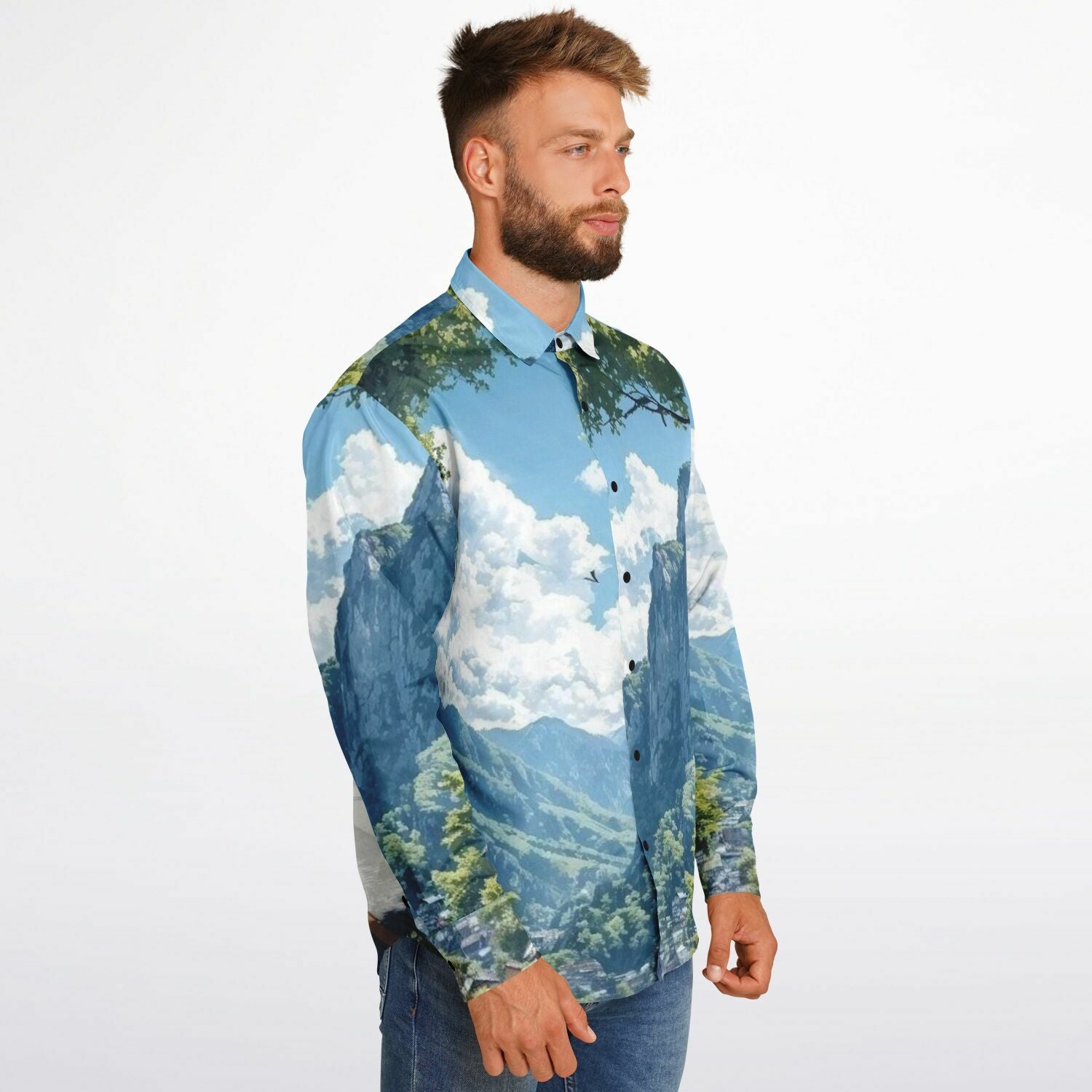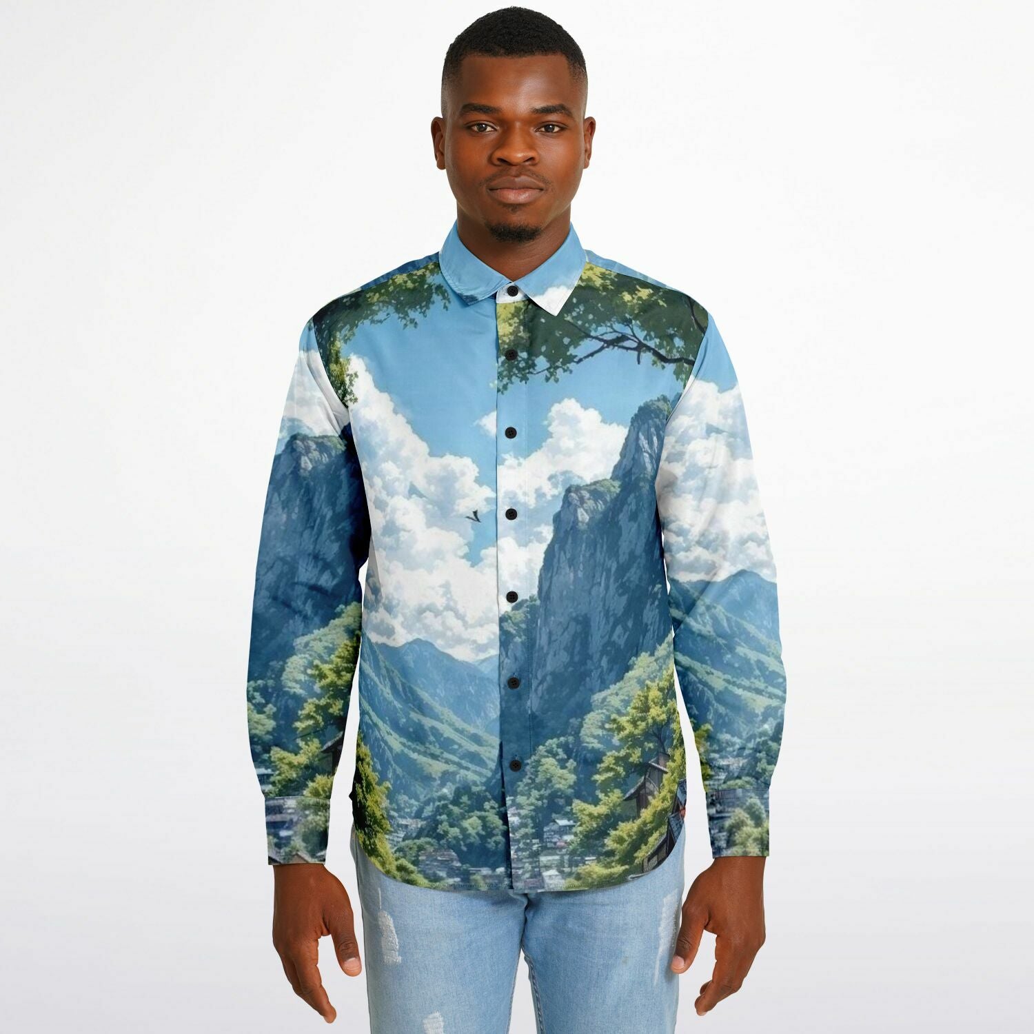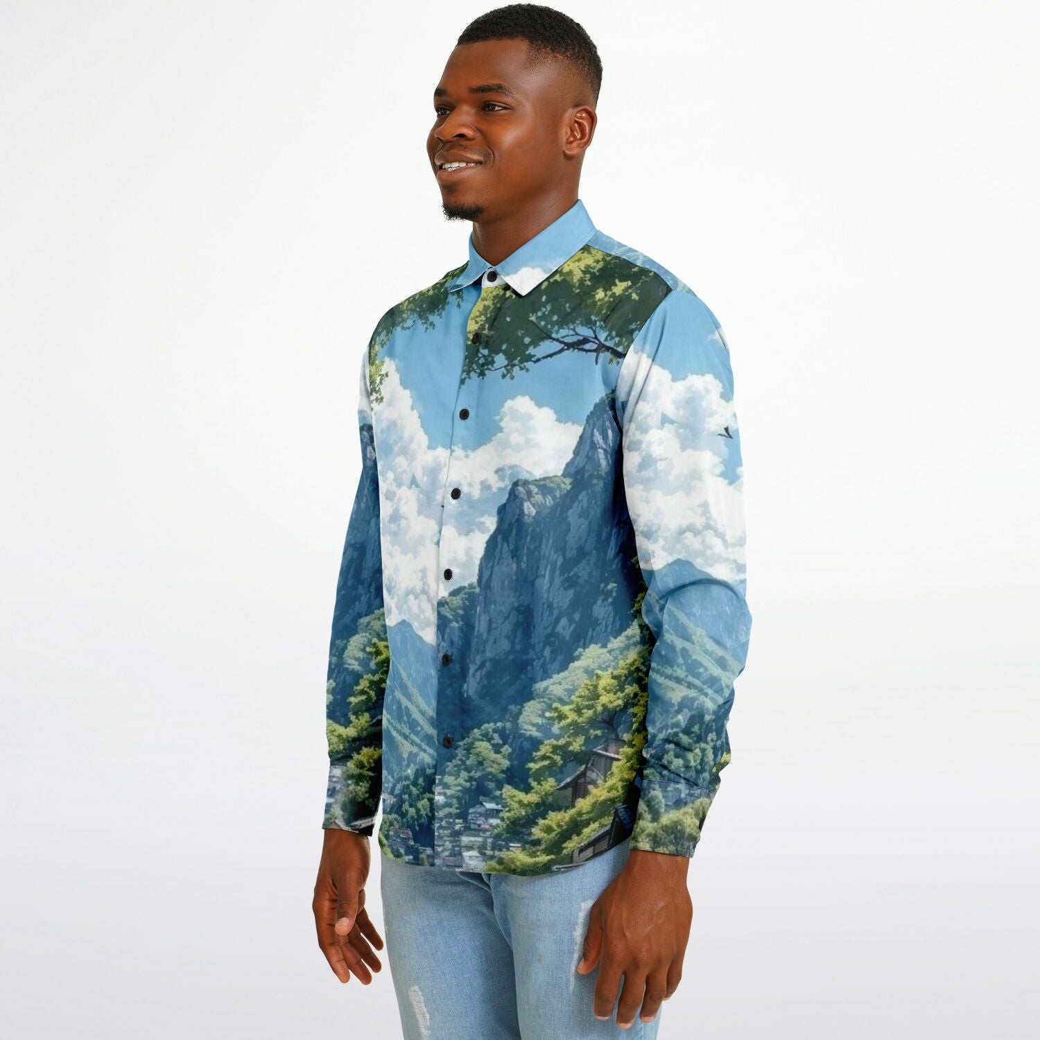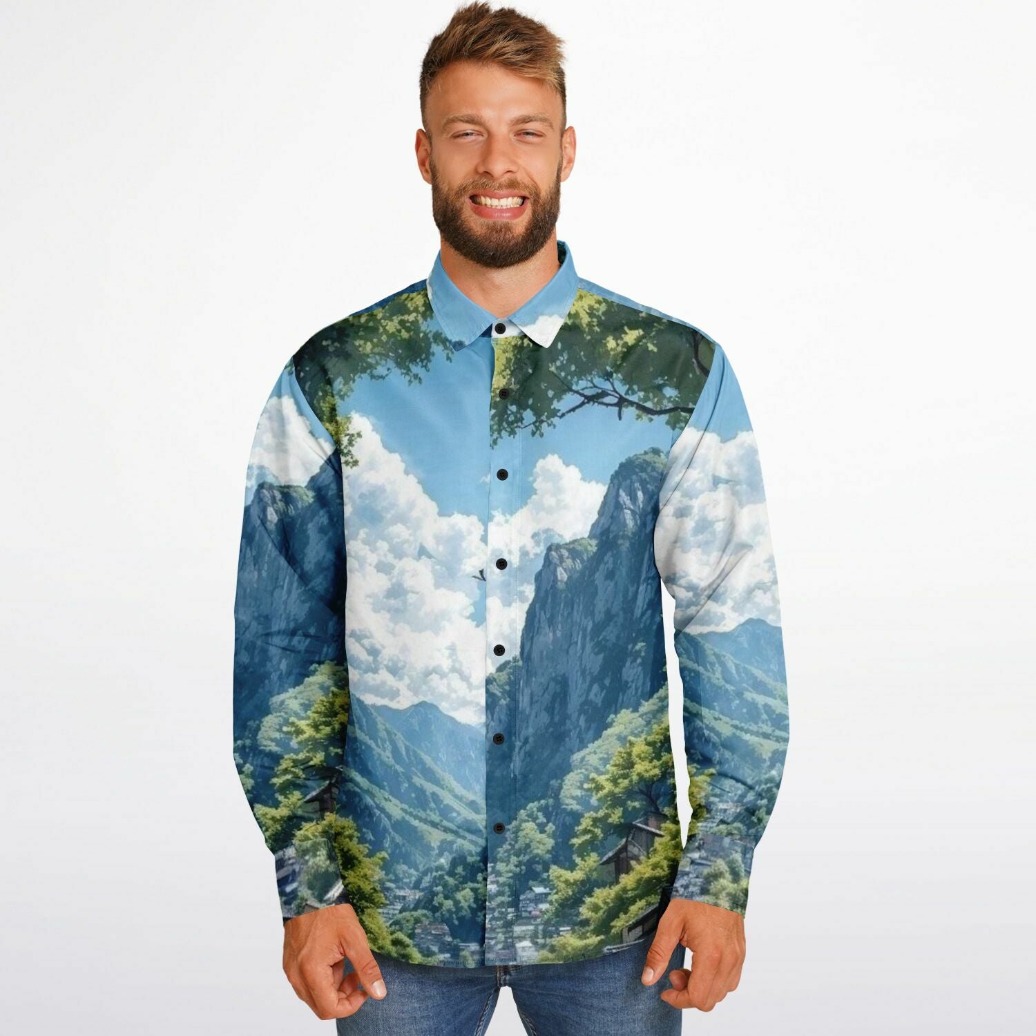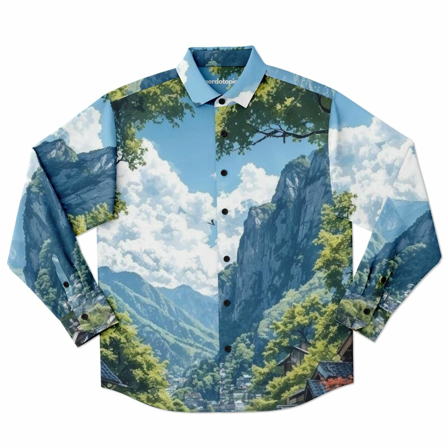 GTR in Japanese Mountain Long Sleeve Button Down Shirt - AOP