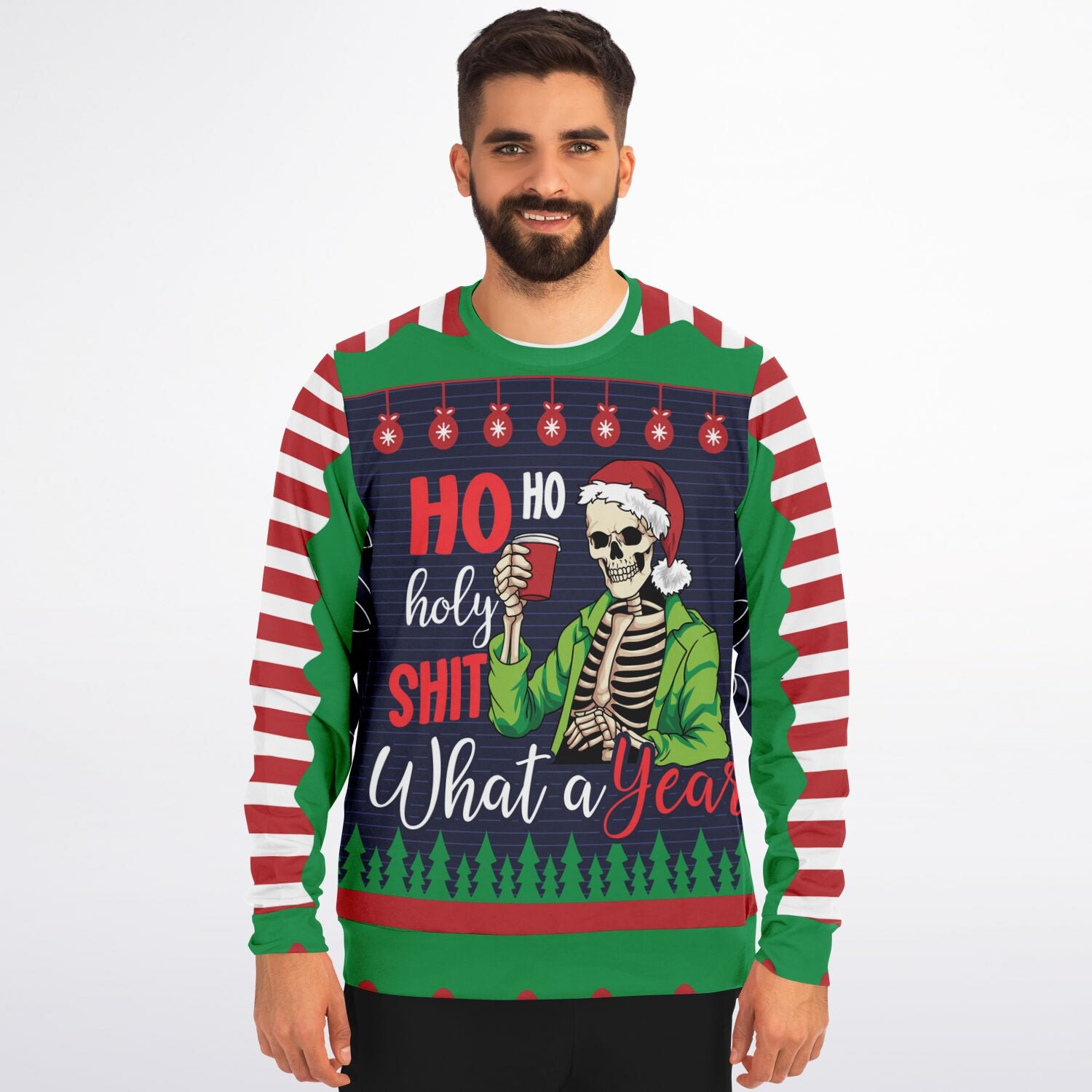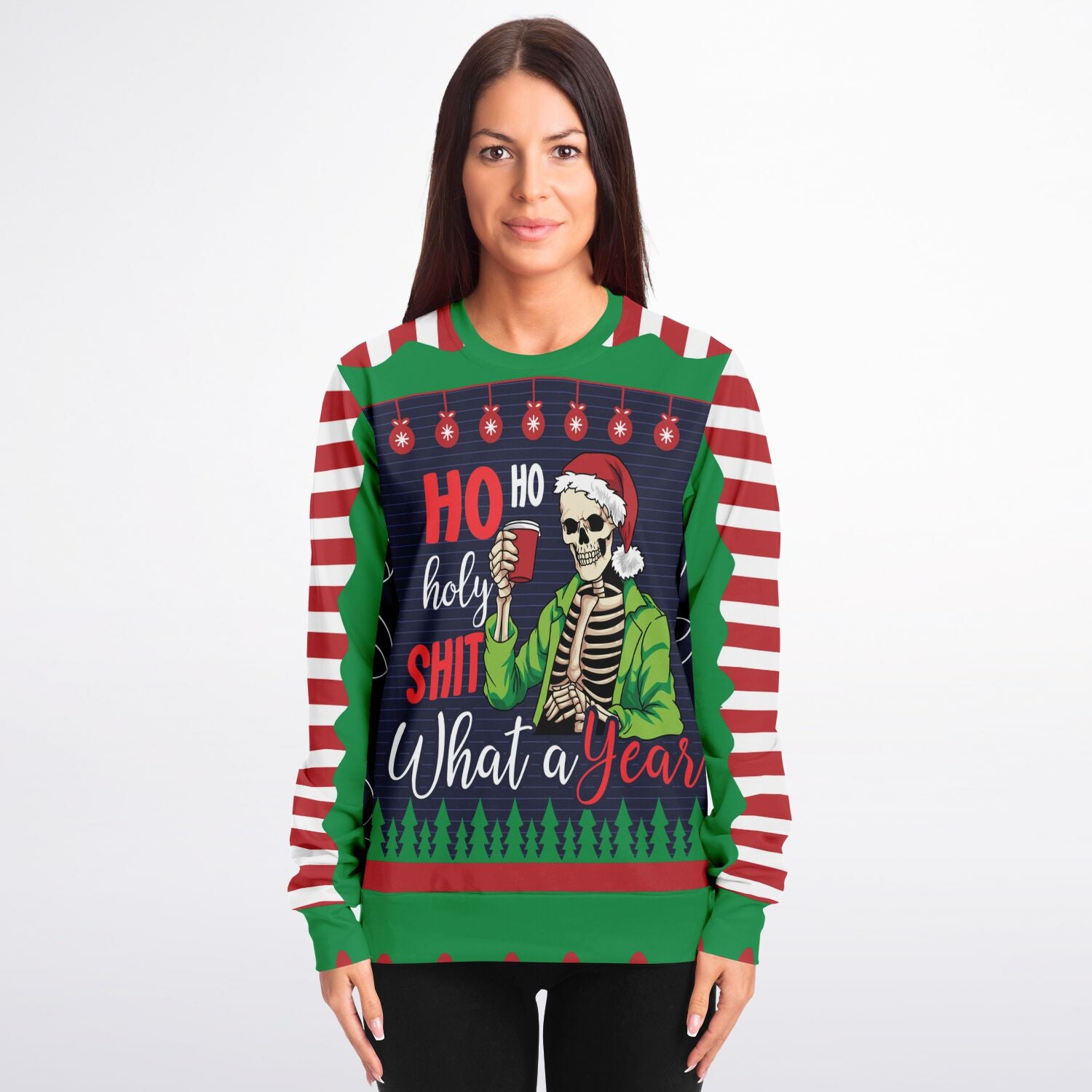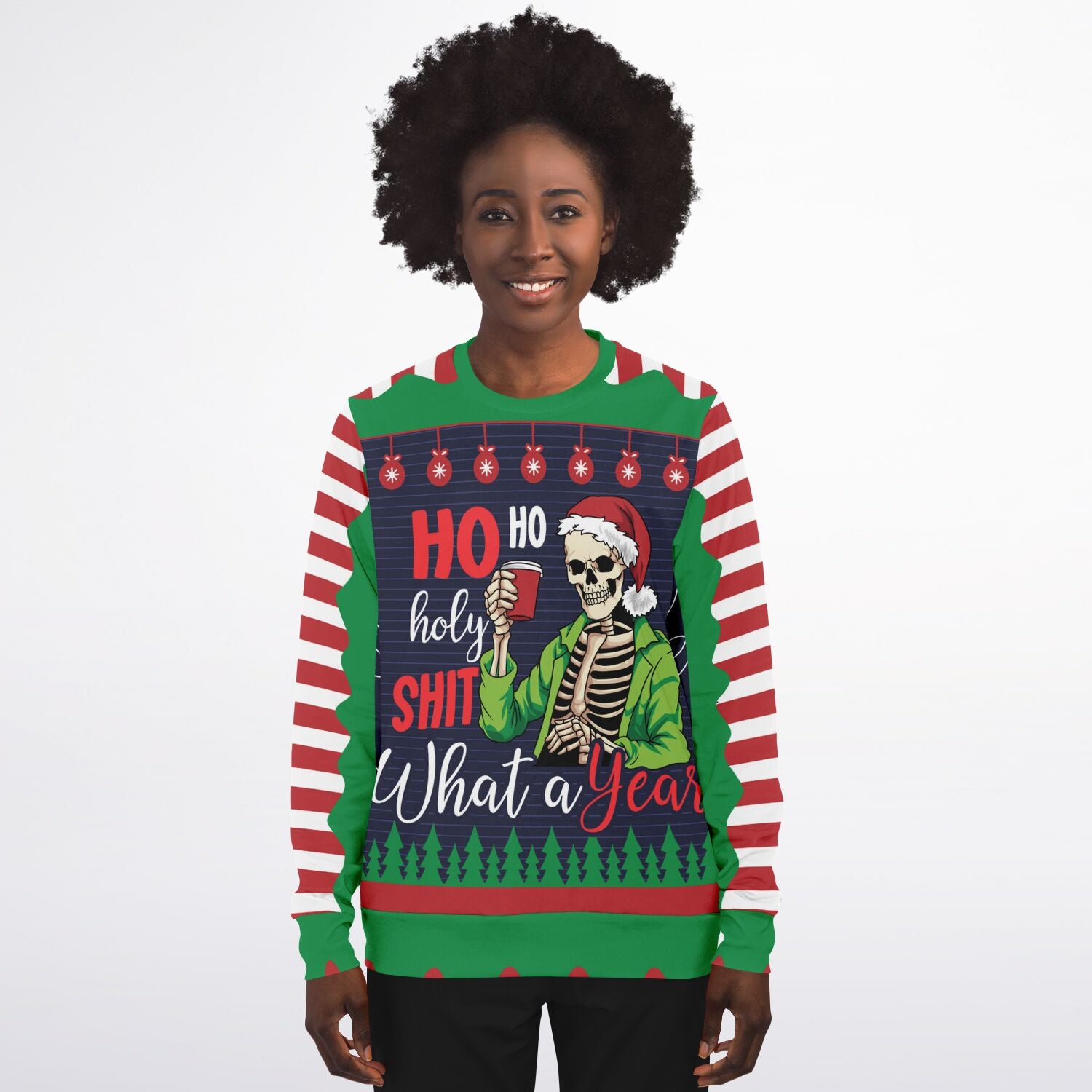 Reflect on the year with humor in the Ho Ho Holy Shit What A Year Sweatshirt. Perfect for those who want to combine festive cheer with a cheeky nod to the ups and downs of the year, this sweatshirt is ideal for holiday parties, casual outings, or gifting to friends and family with a sense of humor. Cozy, funny, and festive all at once.
