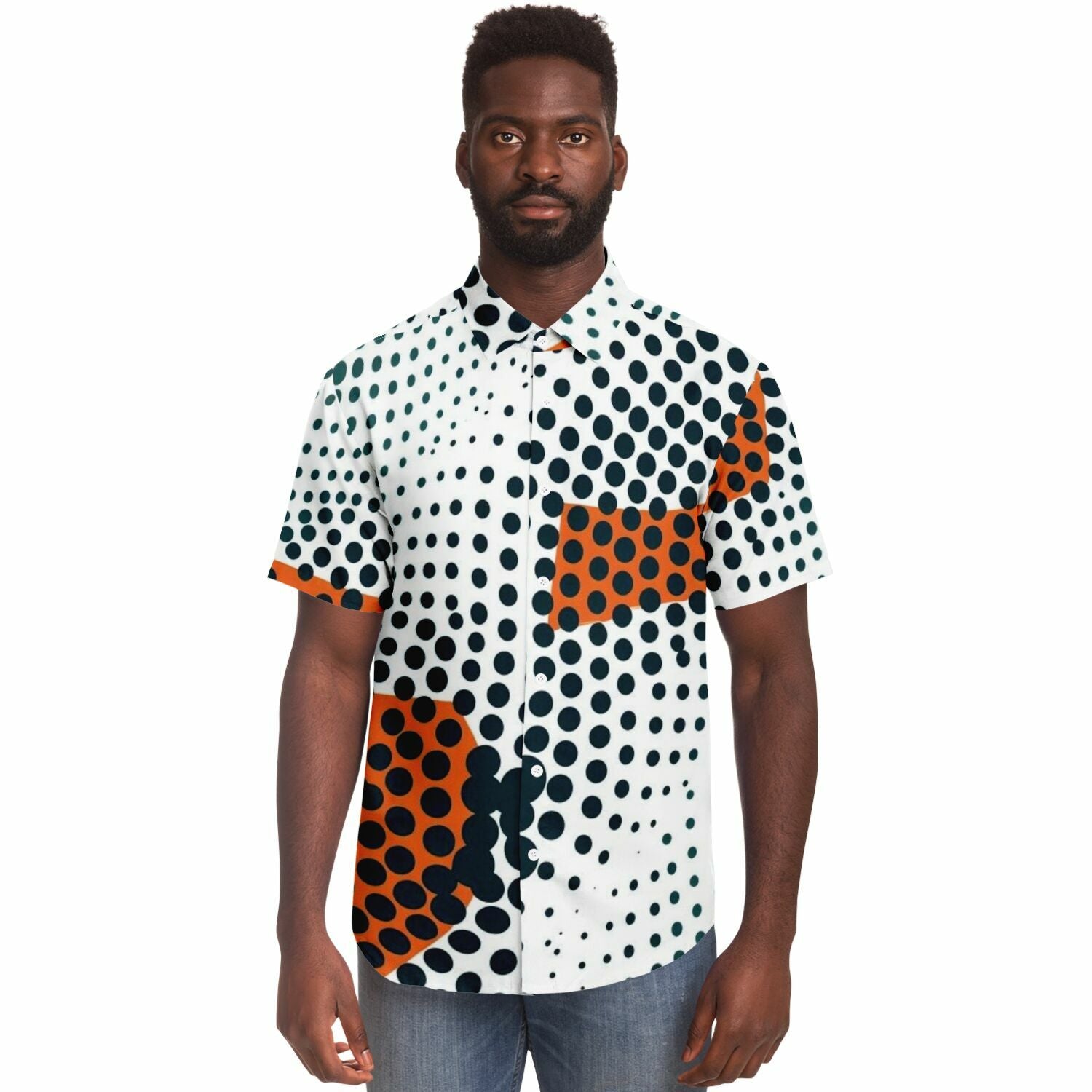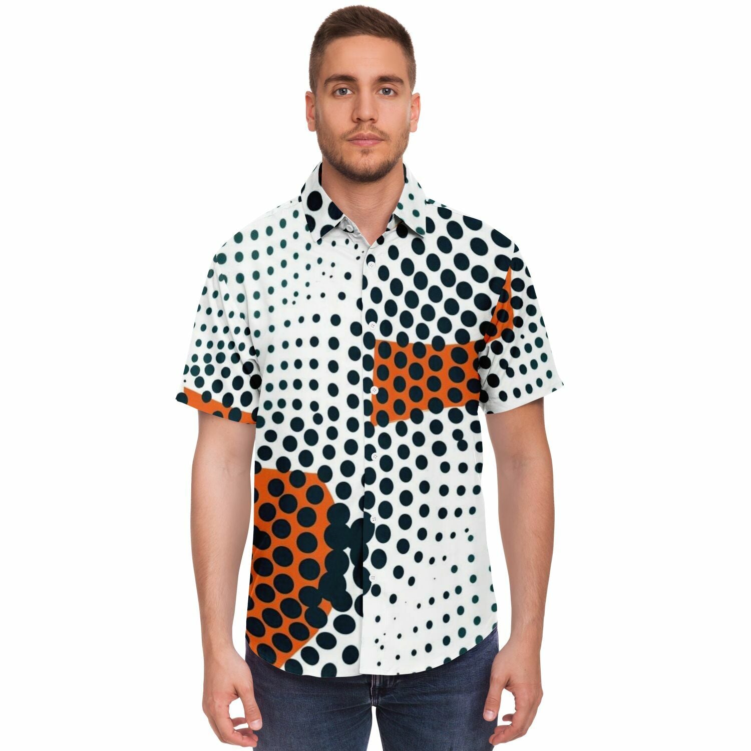Impression Photo Pattern Short Sleeve Button Down Shirt - AOP