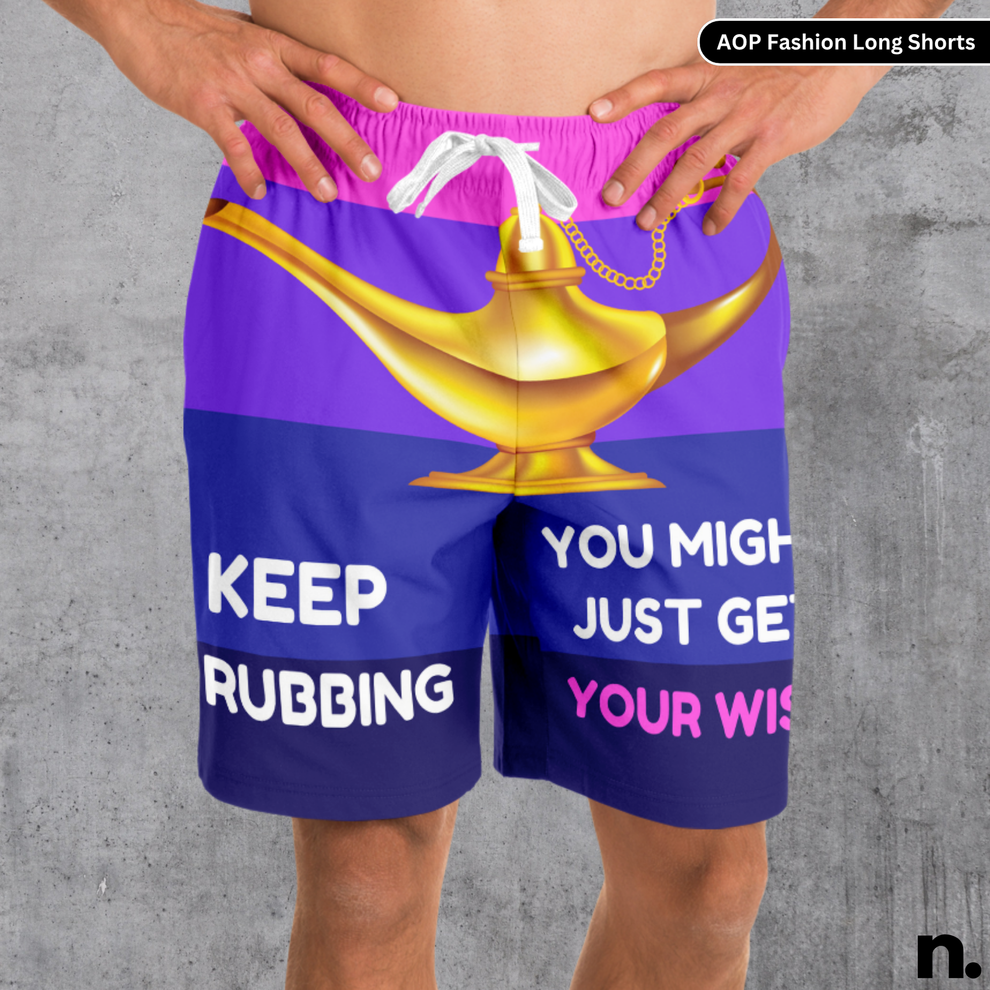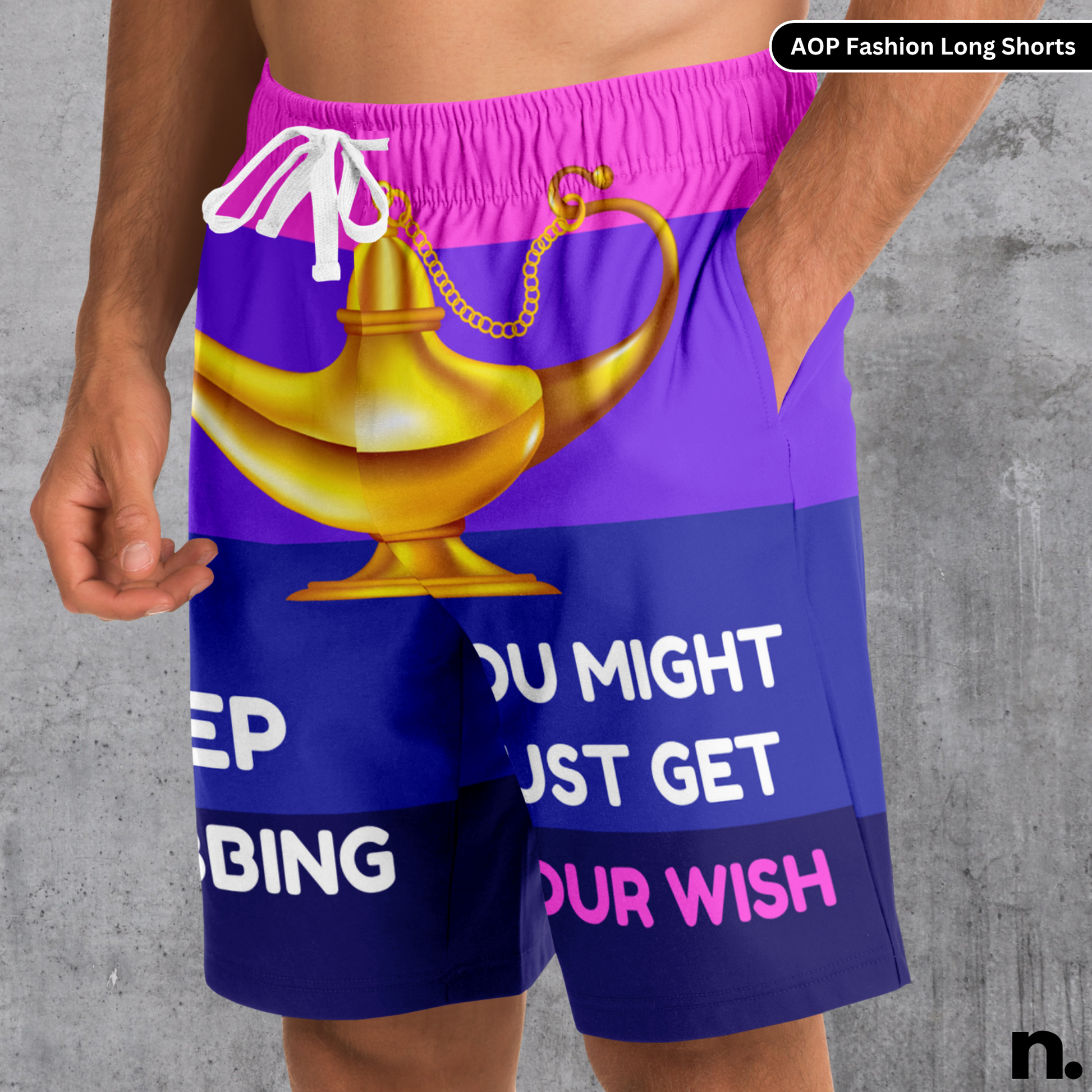 Keep Rubbing You Might Just Get Your Wish – Funny Lamp-Inspired Long Shorts (AOP)