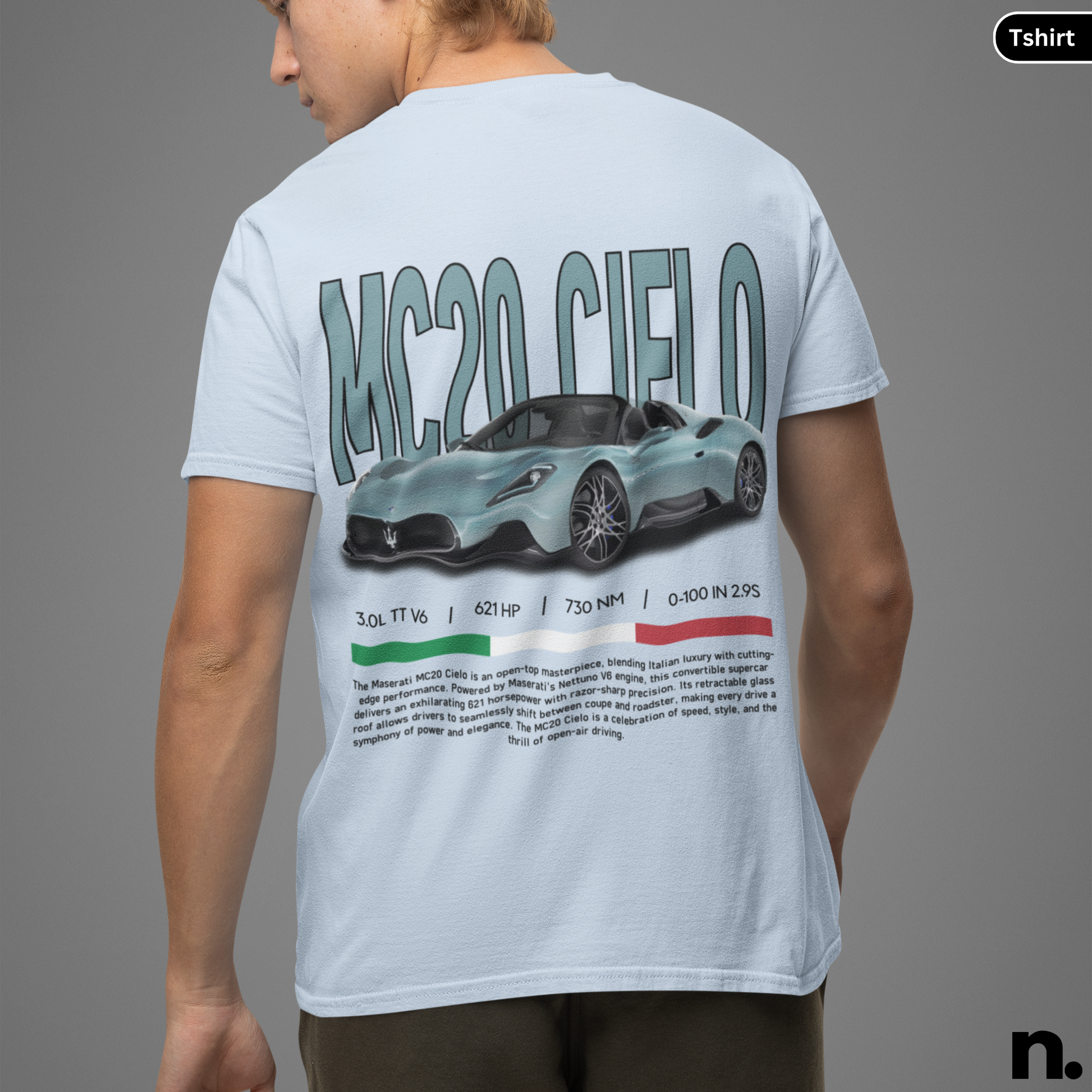This MC20 Cielo Hypercar Poster Style T-shirt offers a trendy and stylish look for car enthusiasts. Made with durable and smooth fabric, this unisex t-shirt is perfect for printing and feels comfortable to wear all year round. The classic fit and crew neckline make it a versatile piece that can be worn for any occasion, whether formal or casual. Perfect for adults who appreciate car designs and want a high-quality, ethically made t-shirt.