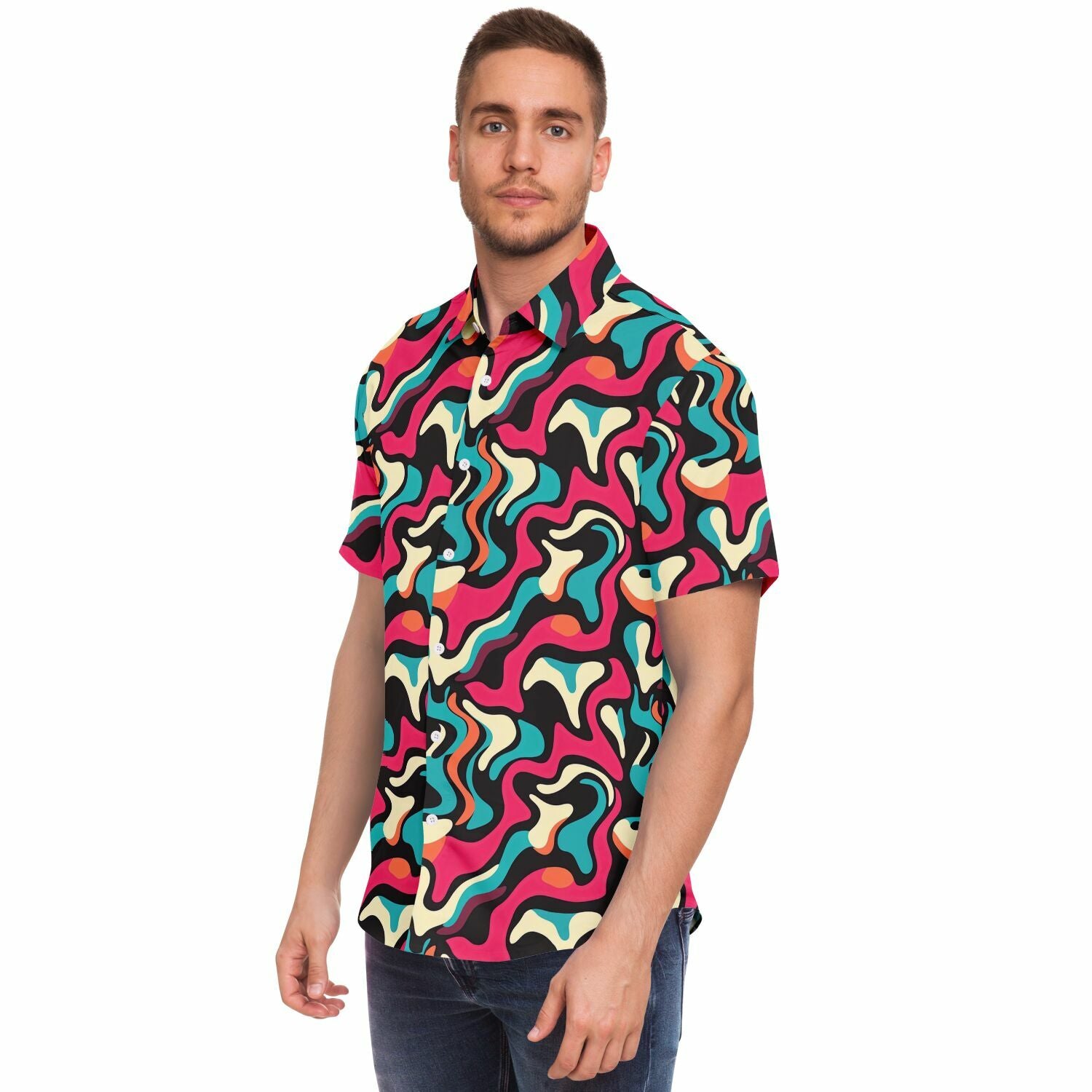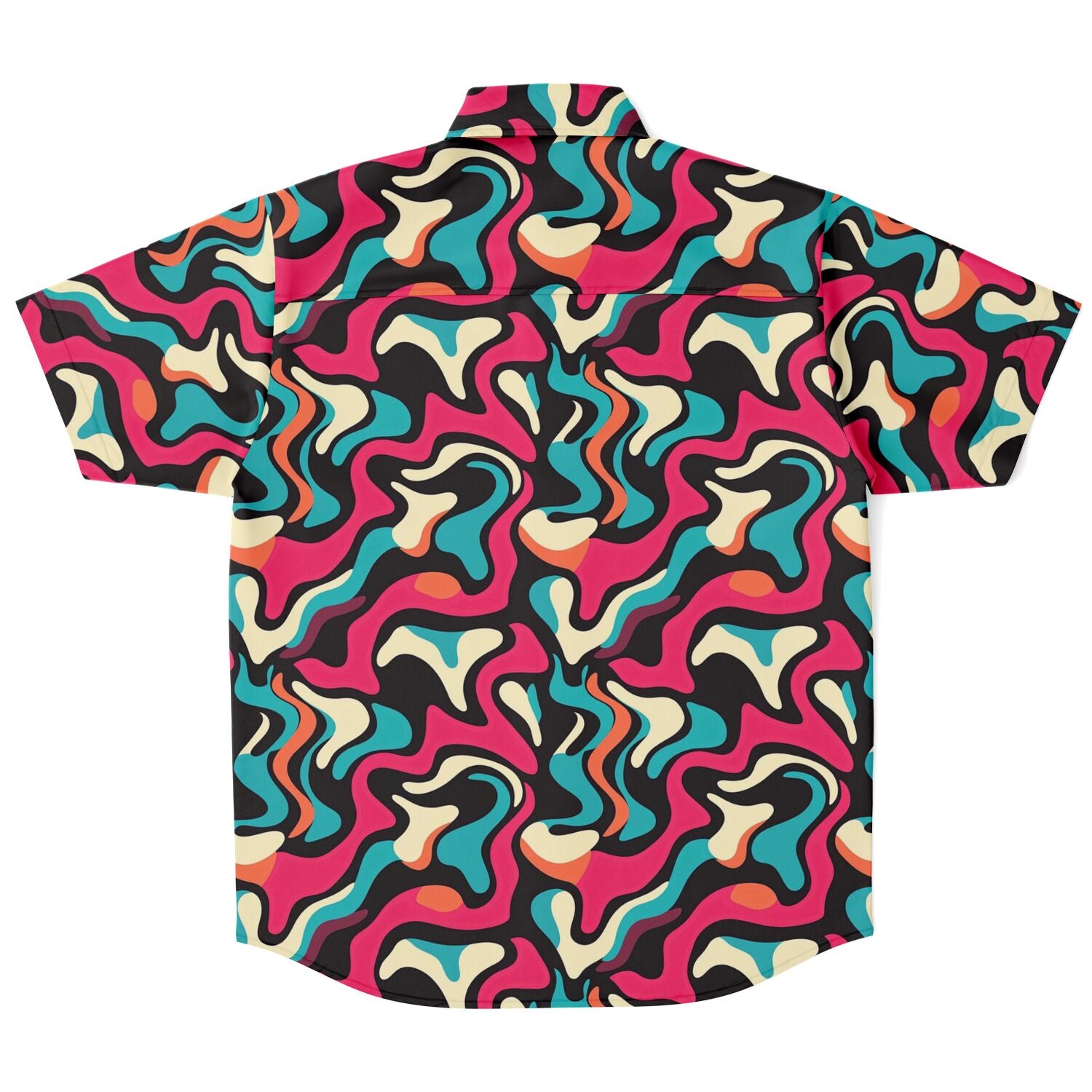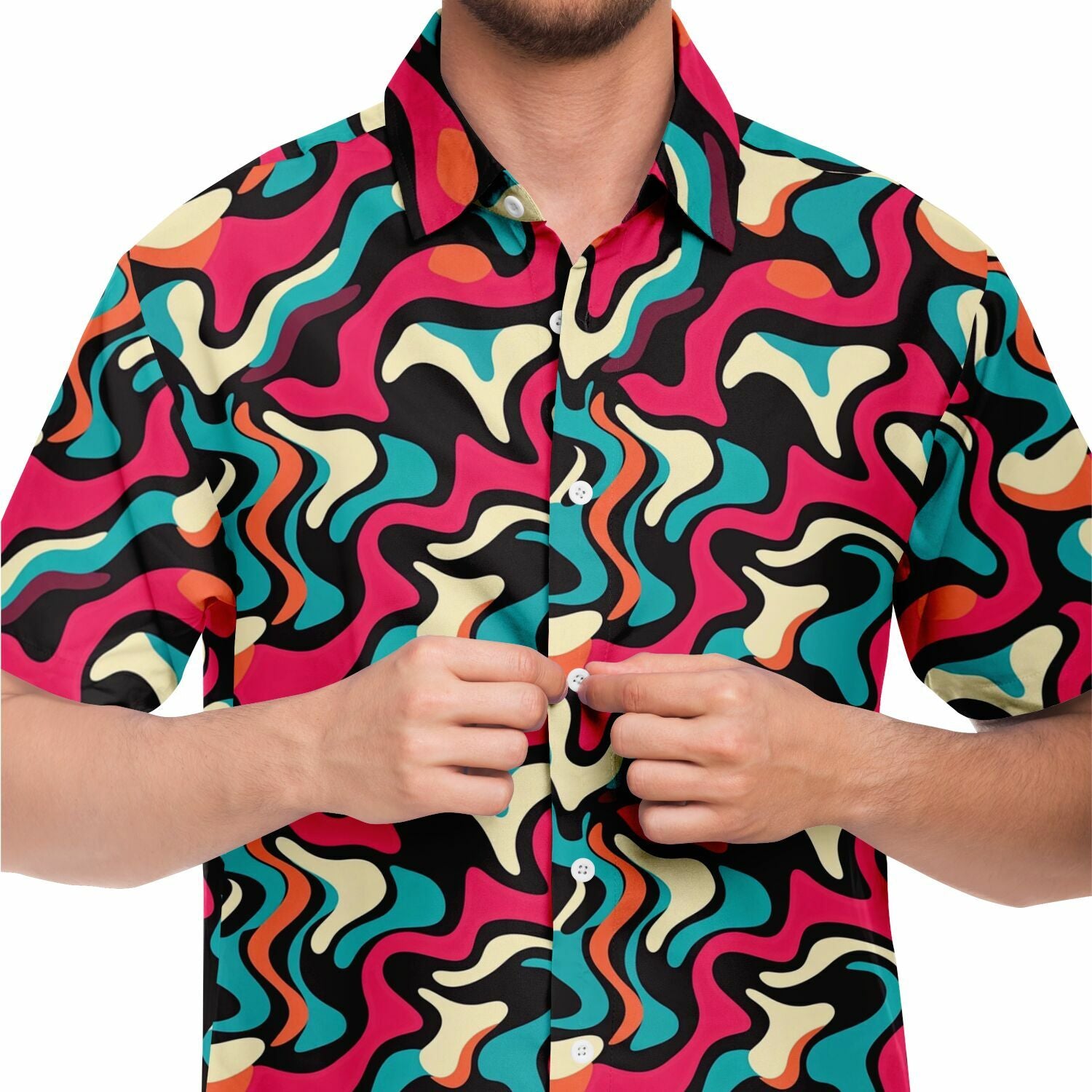Red Blue Pattern Short Sleeve Button Down Shirt - AOP