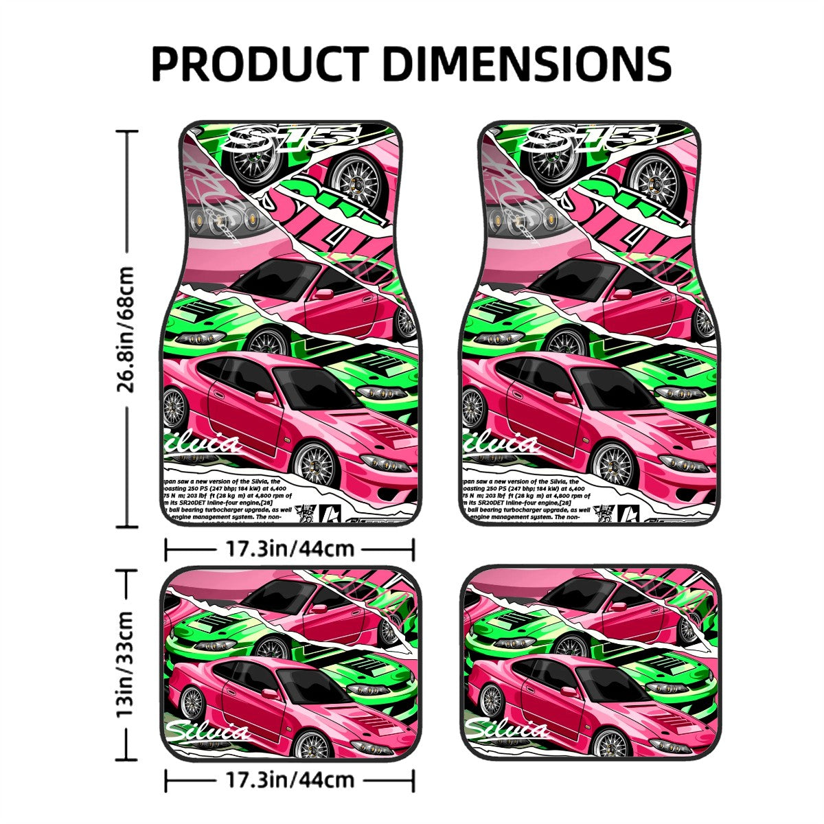 Product Size: Front Mats 26.8"x17.3"x2 pcs; Rear Floor Mats 13.0"x17.3"x2 pcs.