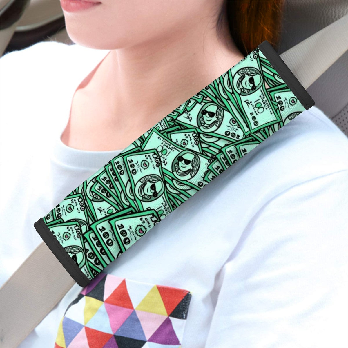 Dollar Bills Collage Seat Belt Cover Pad 2 Pcs