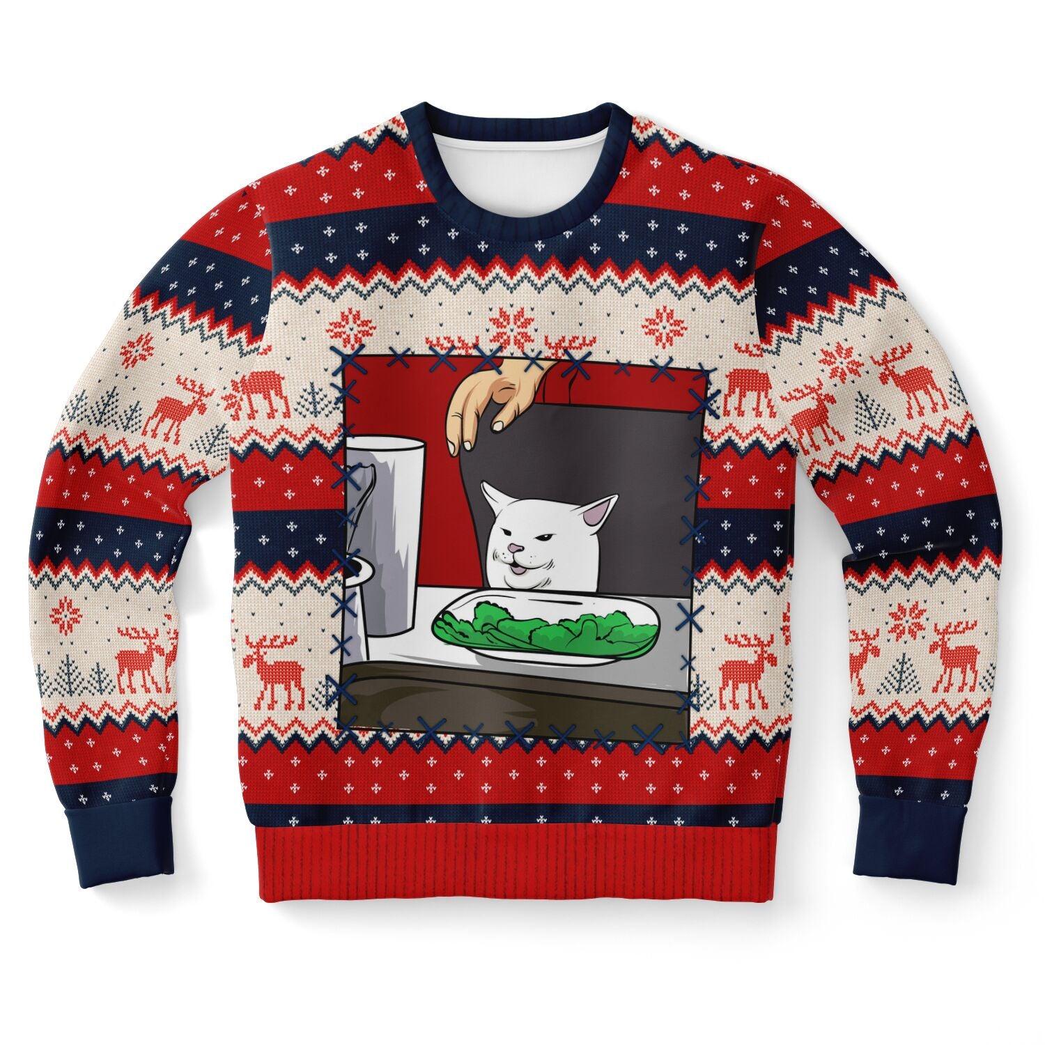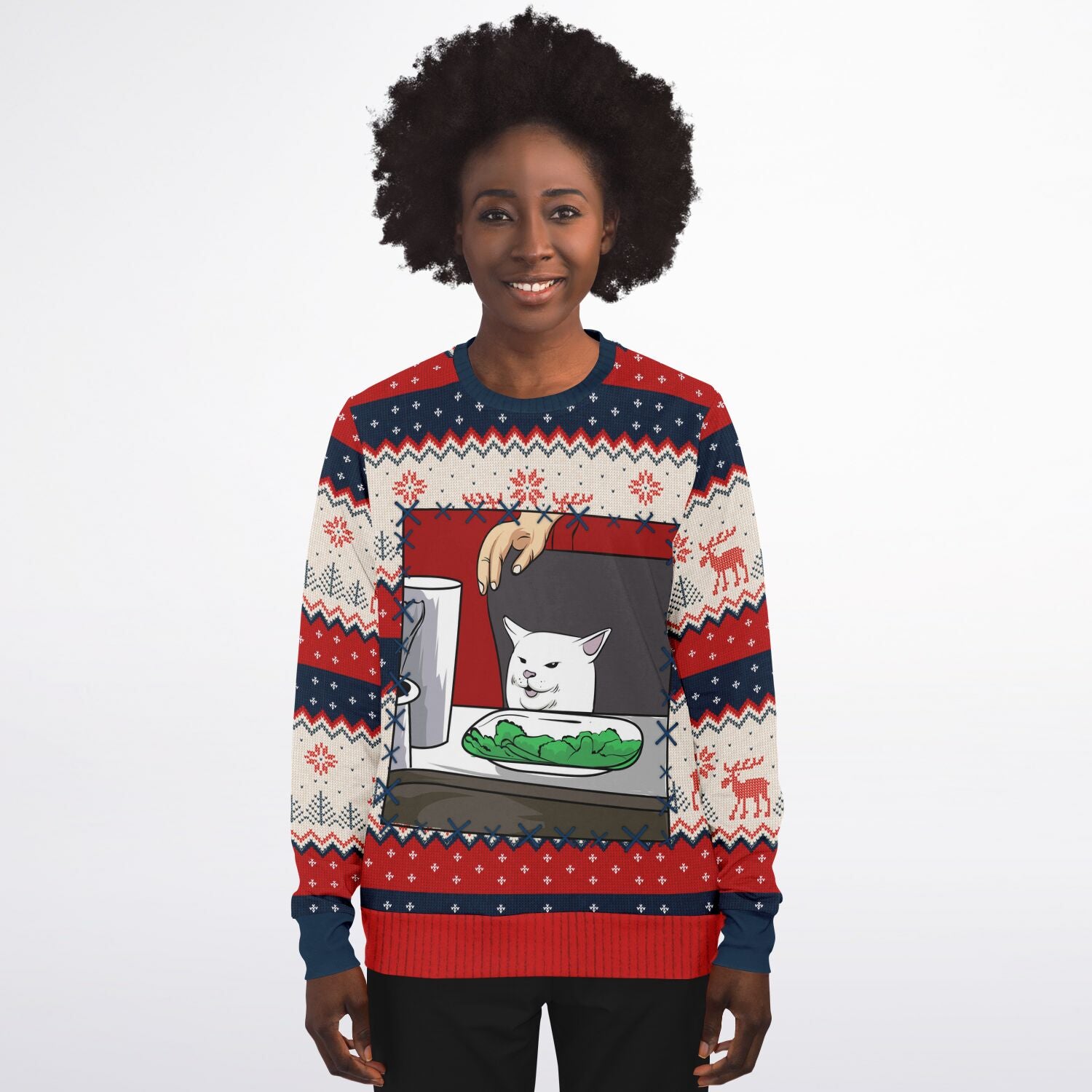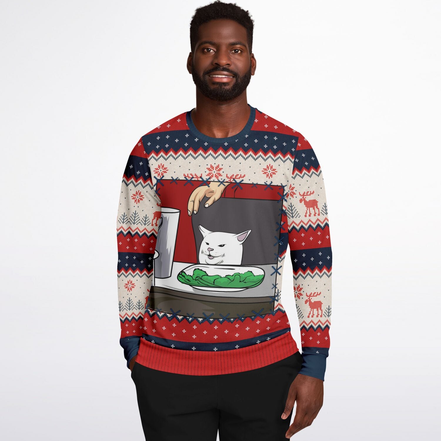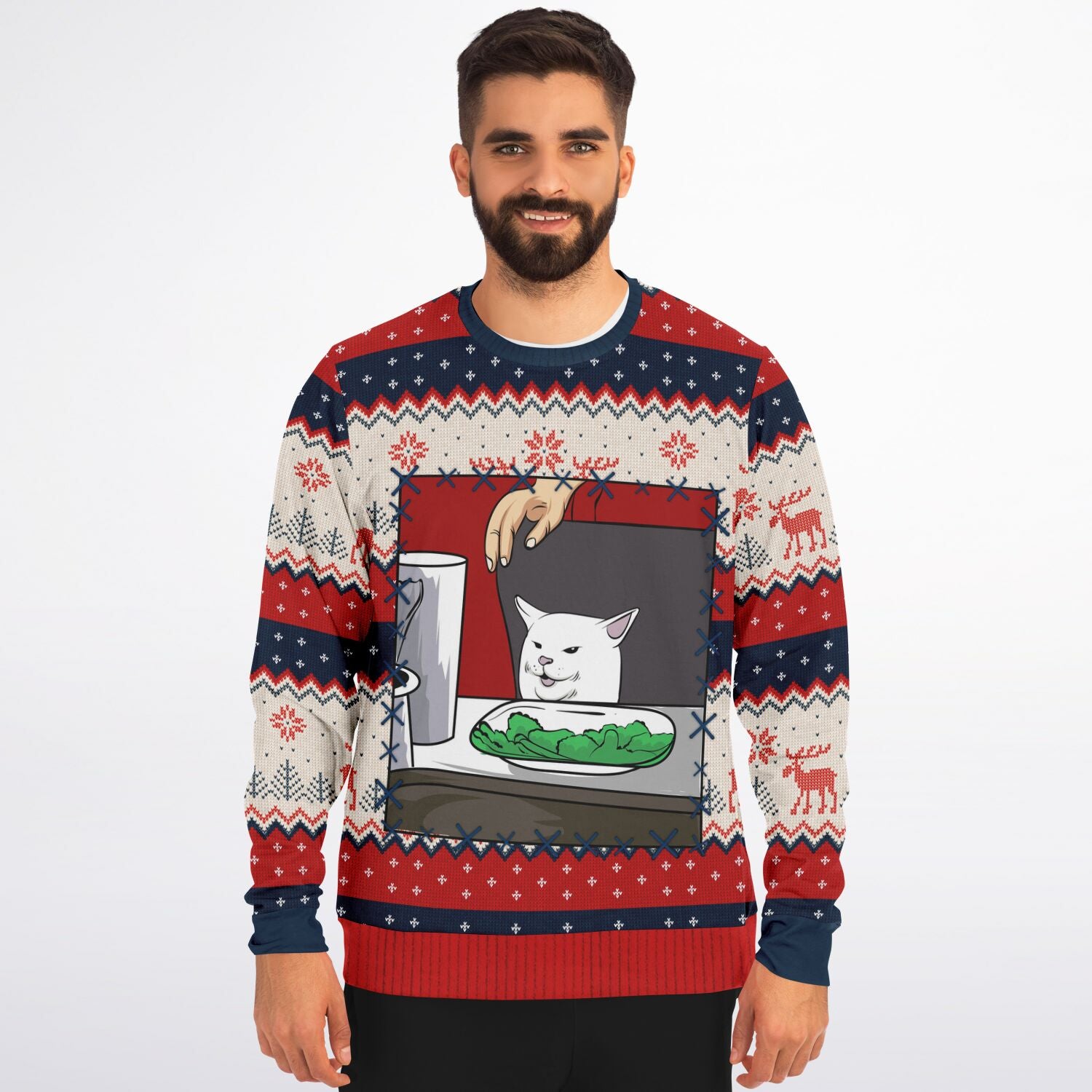 Keep the meme madness going with the “Meme Woman Yells At Cat - Part 2 Sweatshirt”. Perfect for fans of viral internet moments, this sweatshirt captures the humor and chaos of the iconic meme in a fun, wearable design. Ideal for lounging, casual outings, or gifting to friends who live for memes and internet culture.
